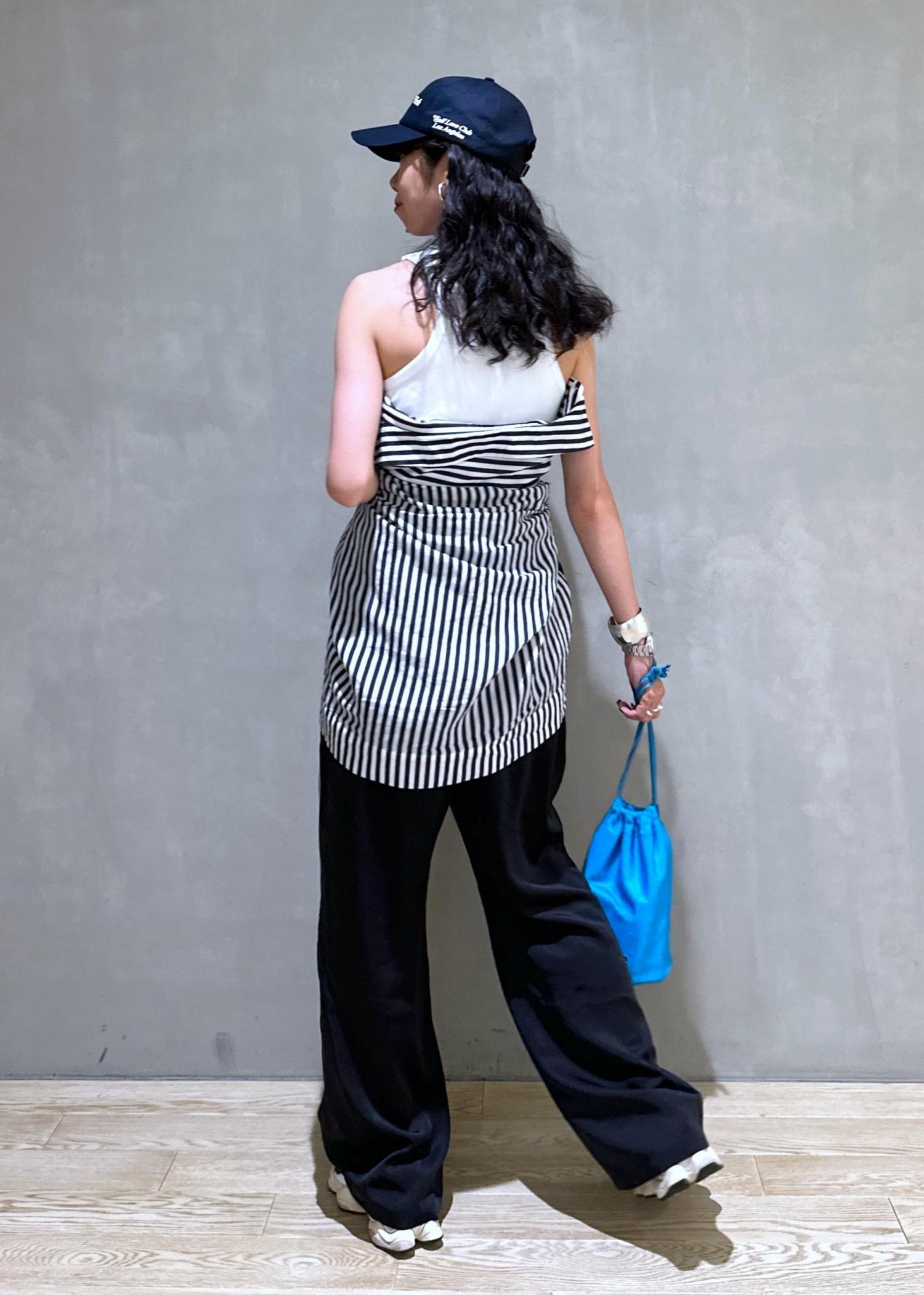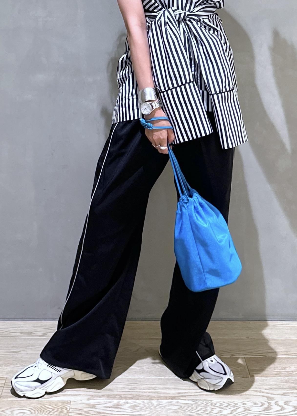 パンツはトロトロ〜で快適。ウエストもゴムです!なのに、サテンのような生地感なので、ラフすぎない見え方。今気分なスポーティーなムードをモードに取り入れられるのでとってもオススメです◎