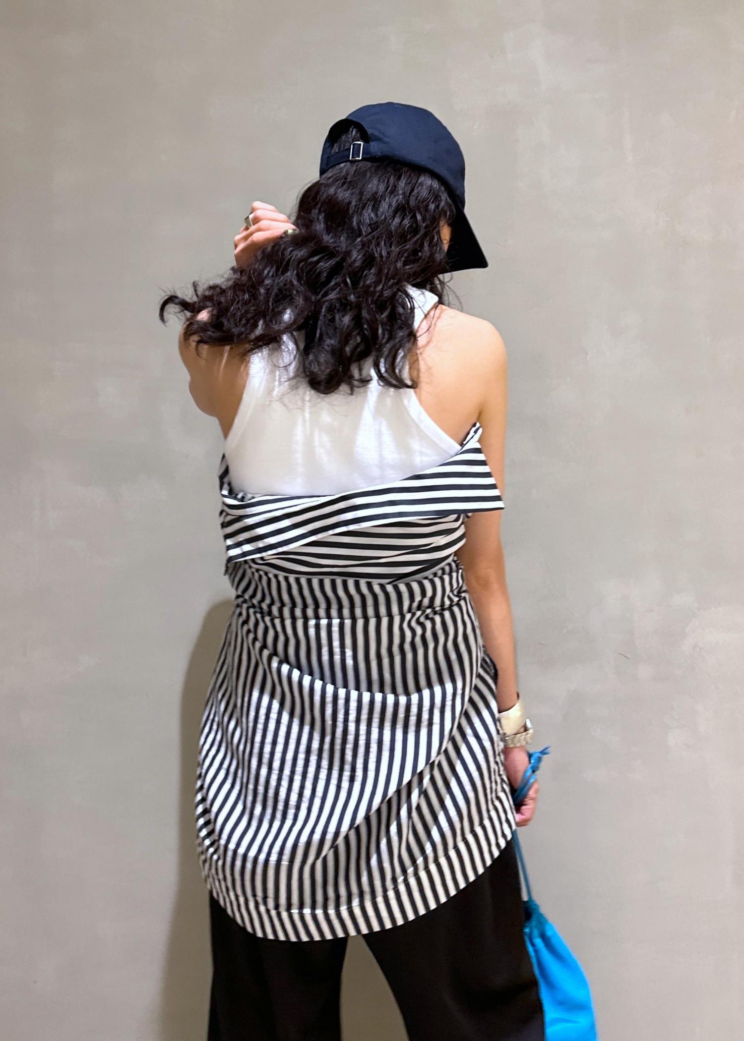 外は暑くて中は冷房で寒いので…暑い時はこんな感じでアレンジすると涼しくて◎2〜3個フロントボタンを開けて結べば完成!♡