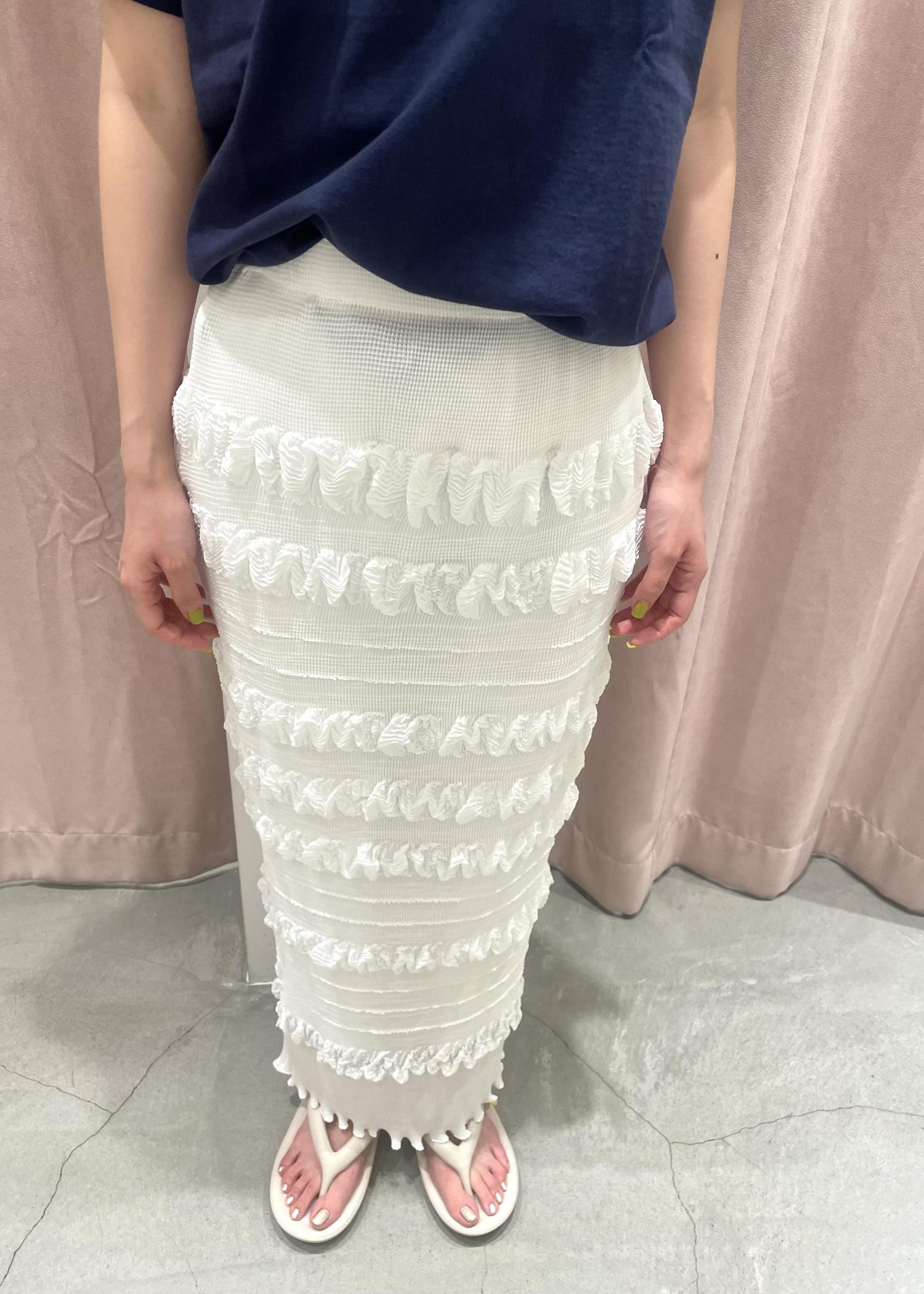 前回ご紹介させていただいたマドレーヌプリーツトップスとセットアップ対応のプリーツスカートです☺︎