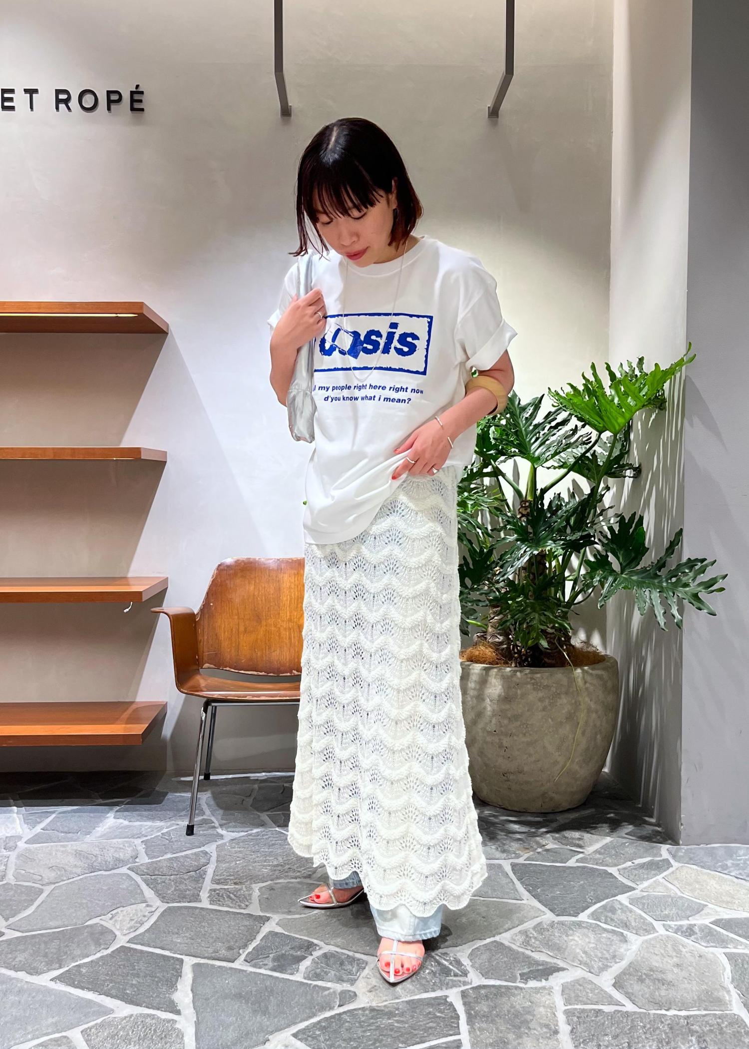 Lサイズでレースワンピースとレイヤードし、ゆったりと着用しました。