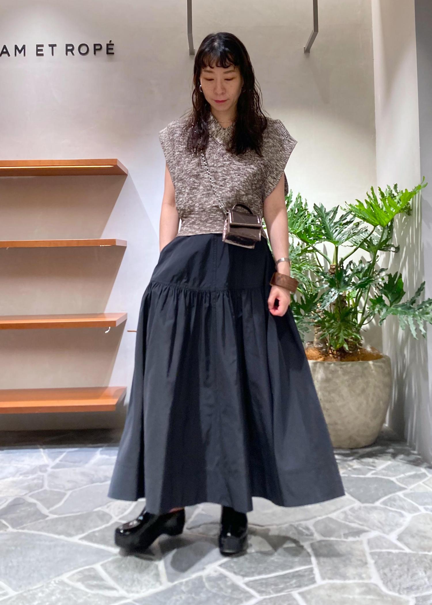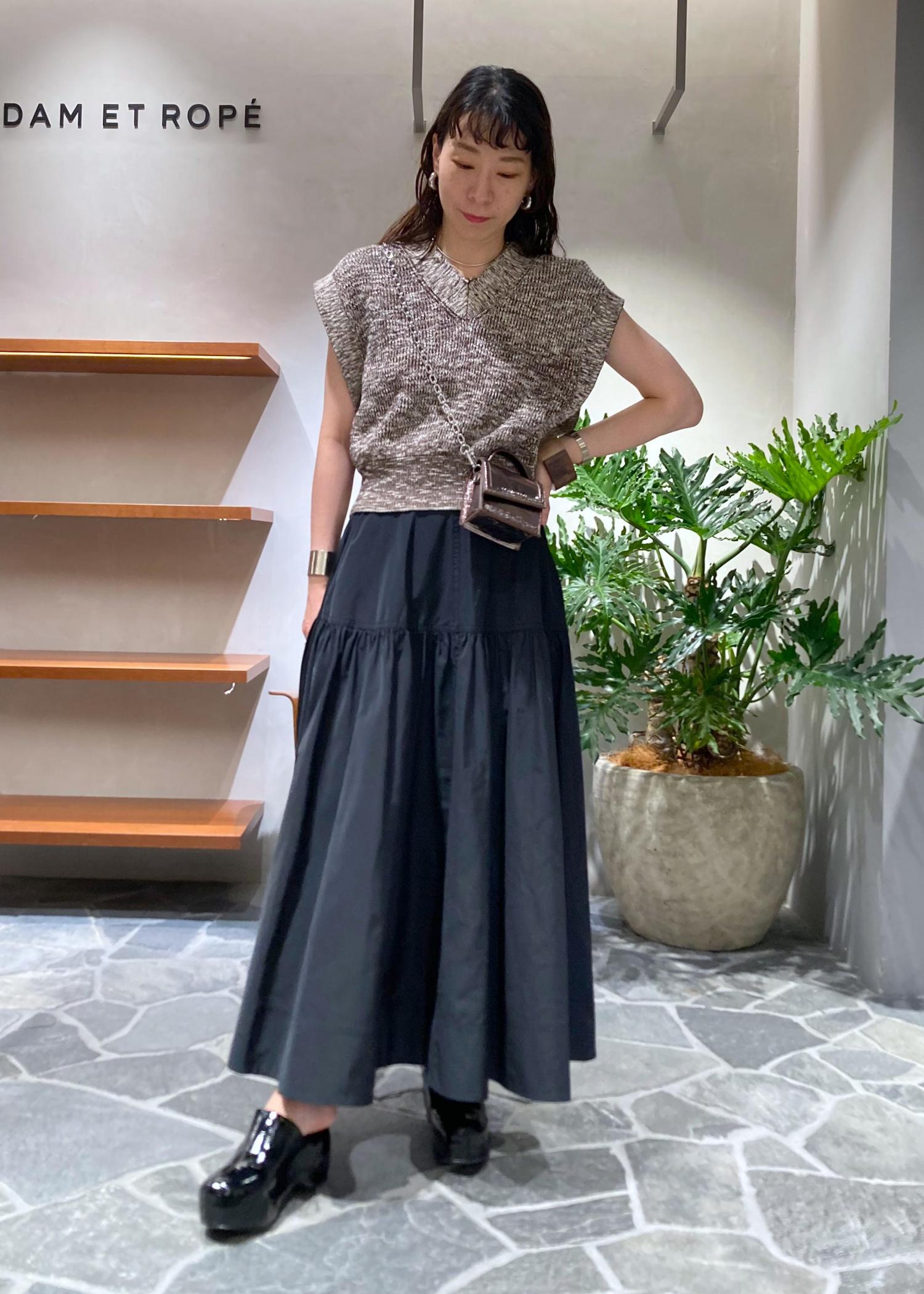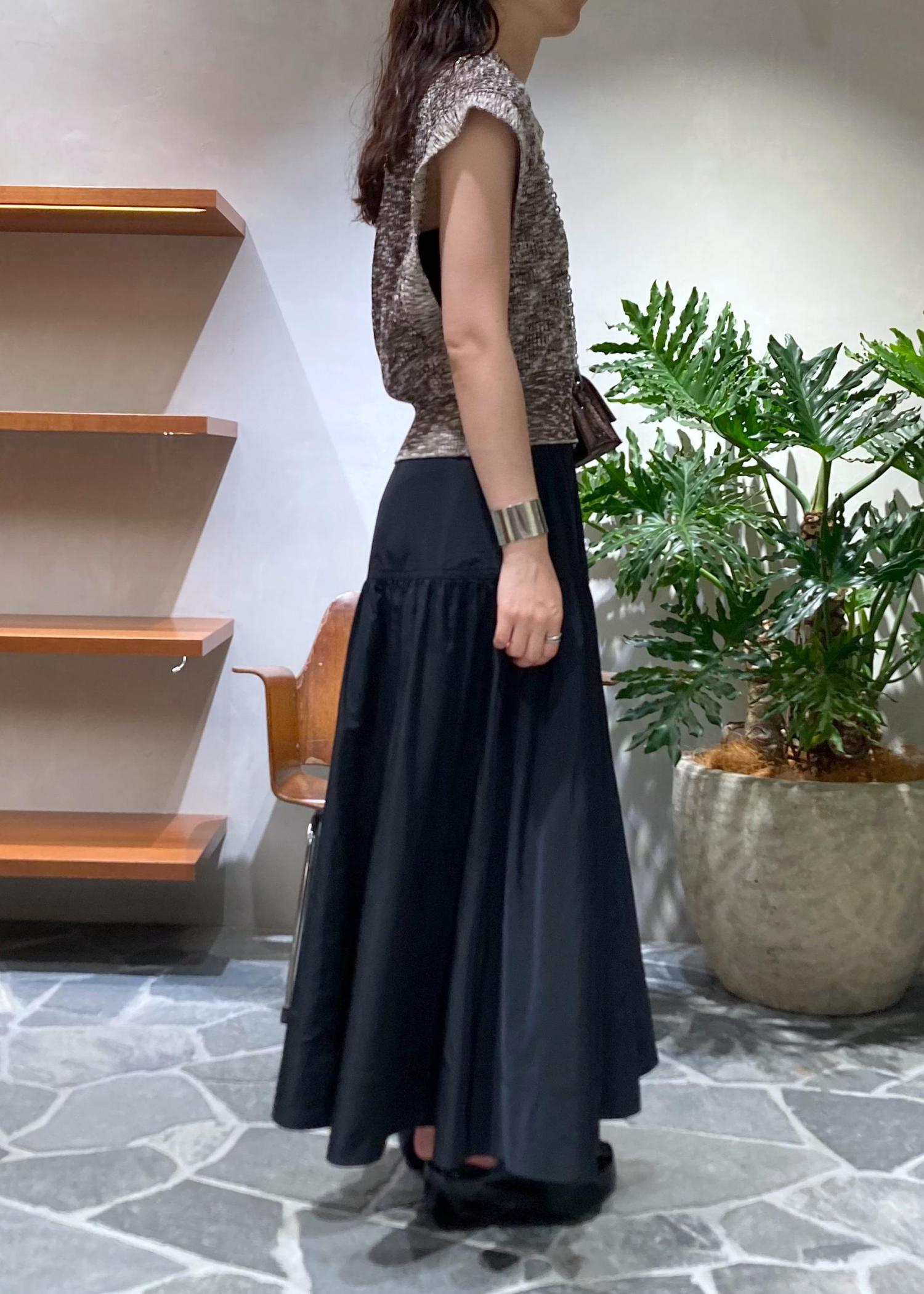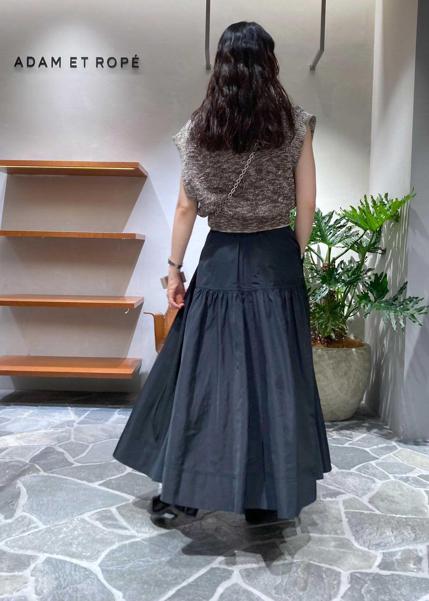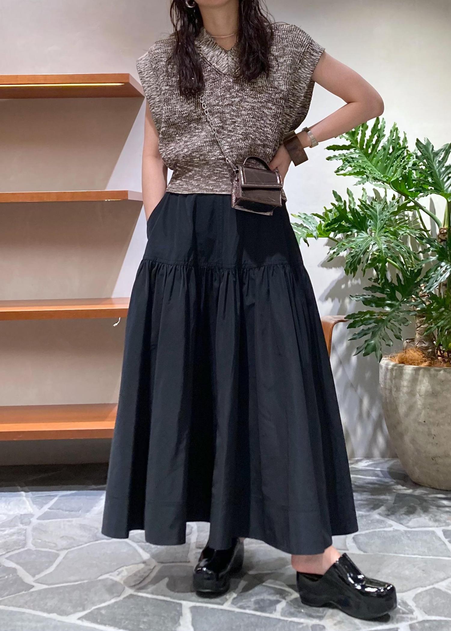 張り感のあるタフタスカートでフェミニンに合わせました。