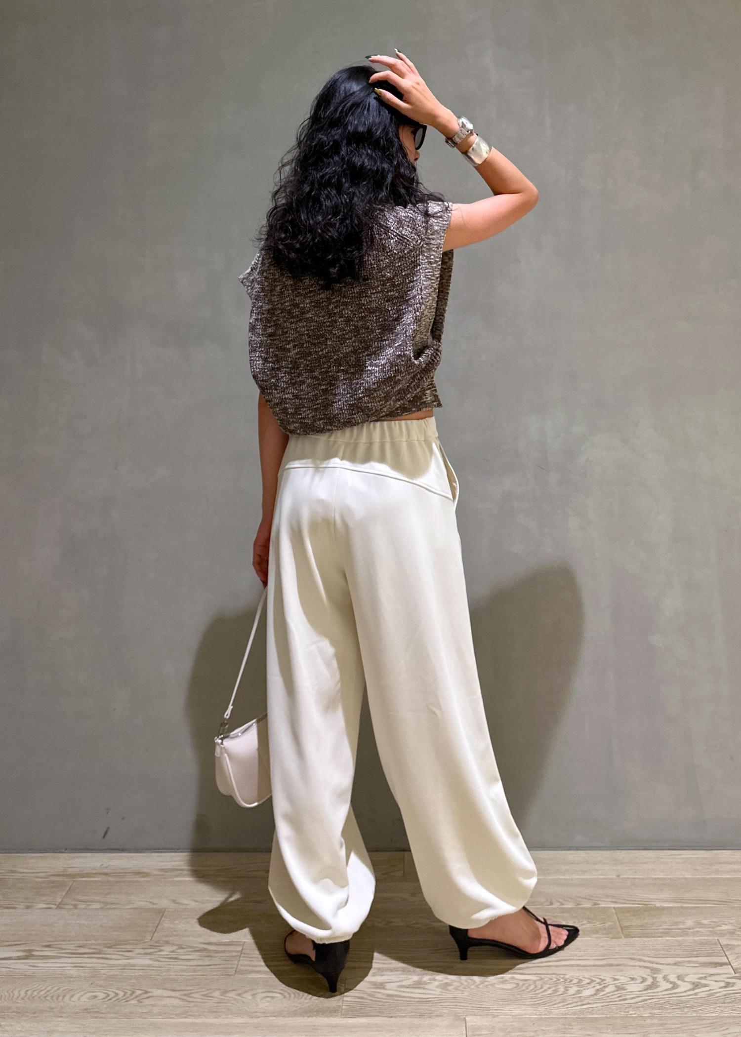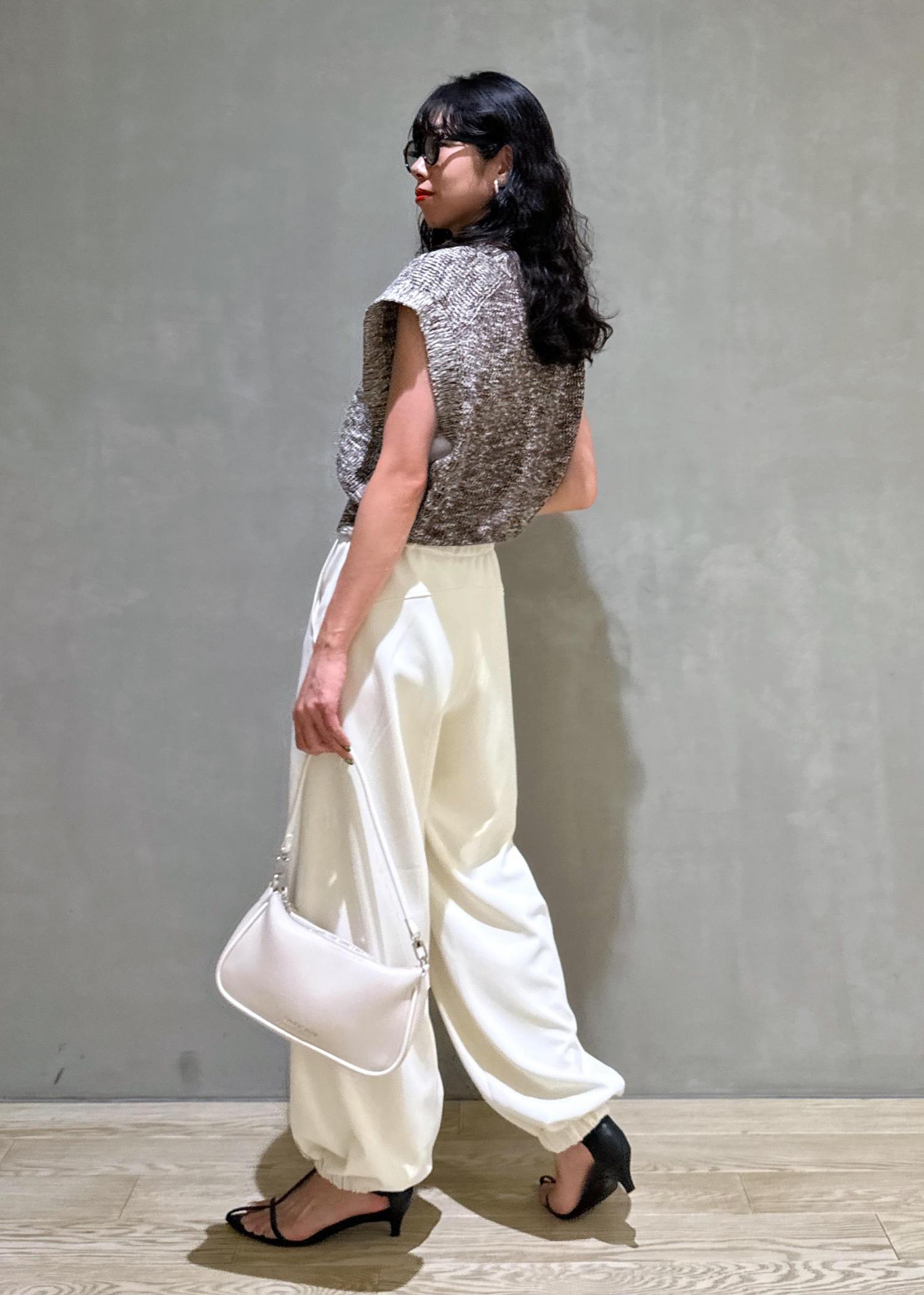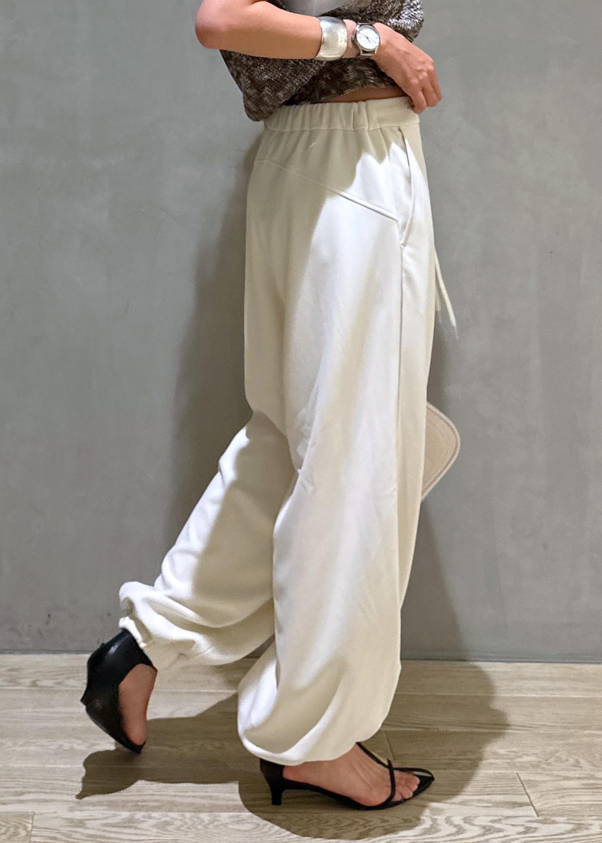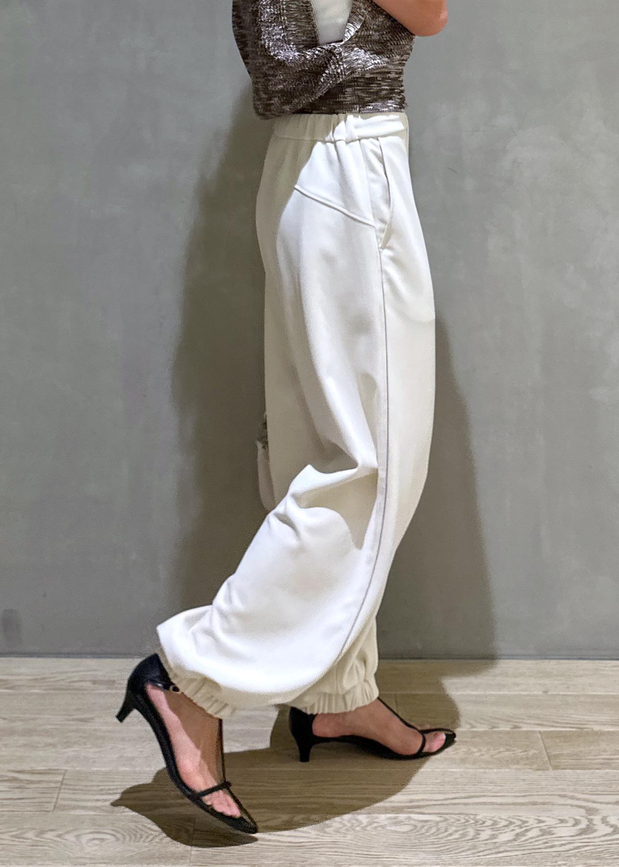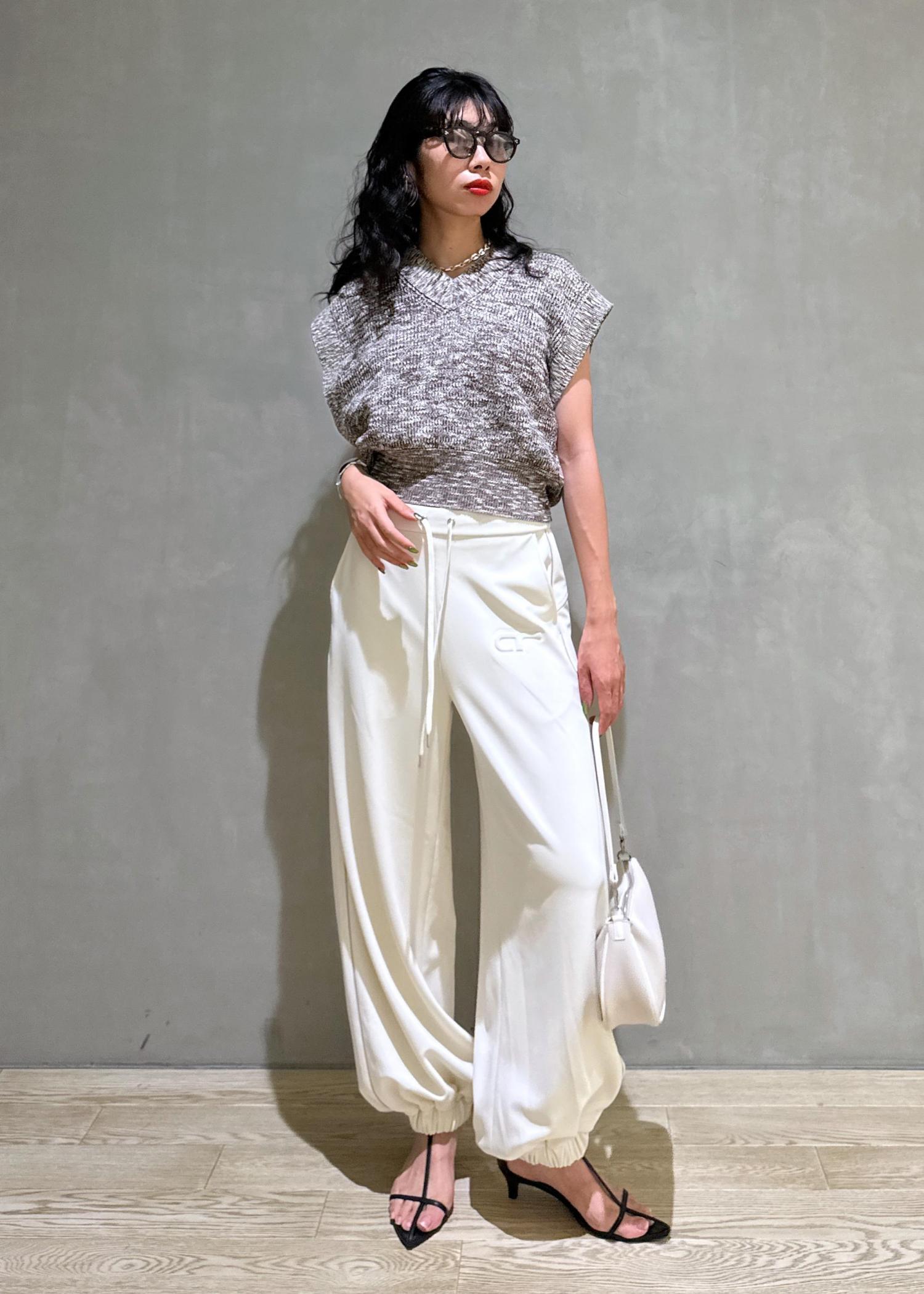 パンツは、ツルッとしたジャージー素材。普通のジャージやスエットパンツよりも綺麗め且つモードな見え方。とーっても履きやすくてリアルバイ検討中です!♡