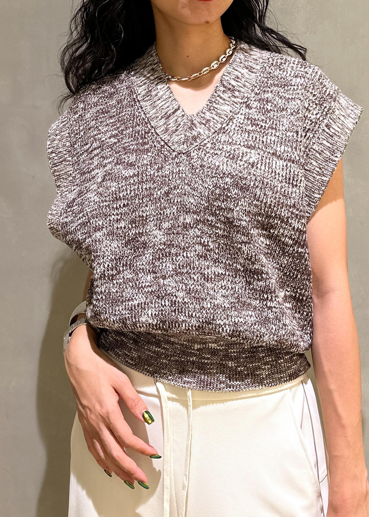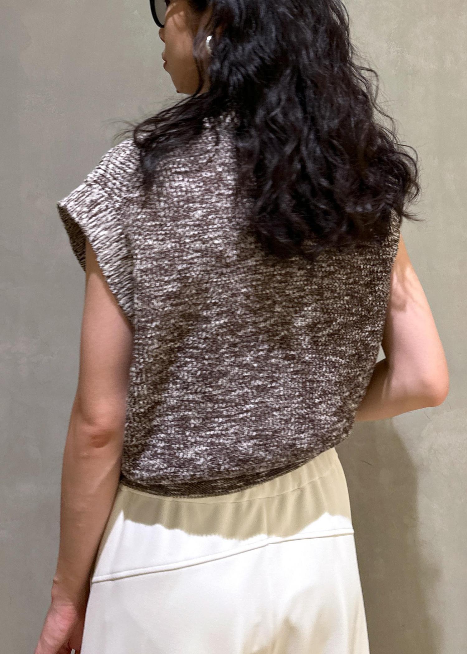 ドライタッチなブラウンのベストは、ニットなのにとても涼しい着心地。簡単に秋見えが叶うアイテム。涼しくなったら長袖をレイヤードすると長くお使い頂けます!♡
