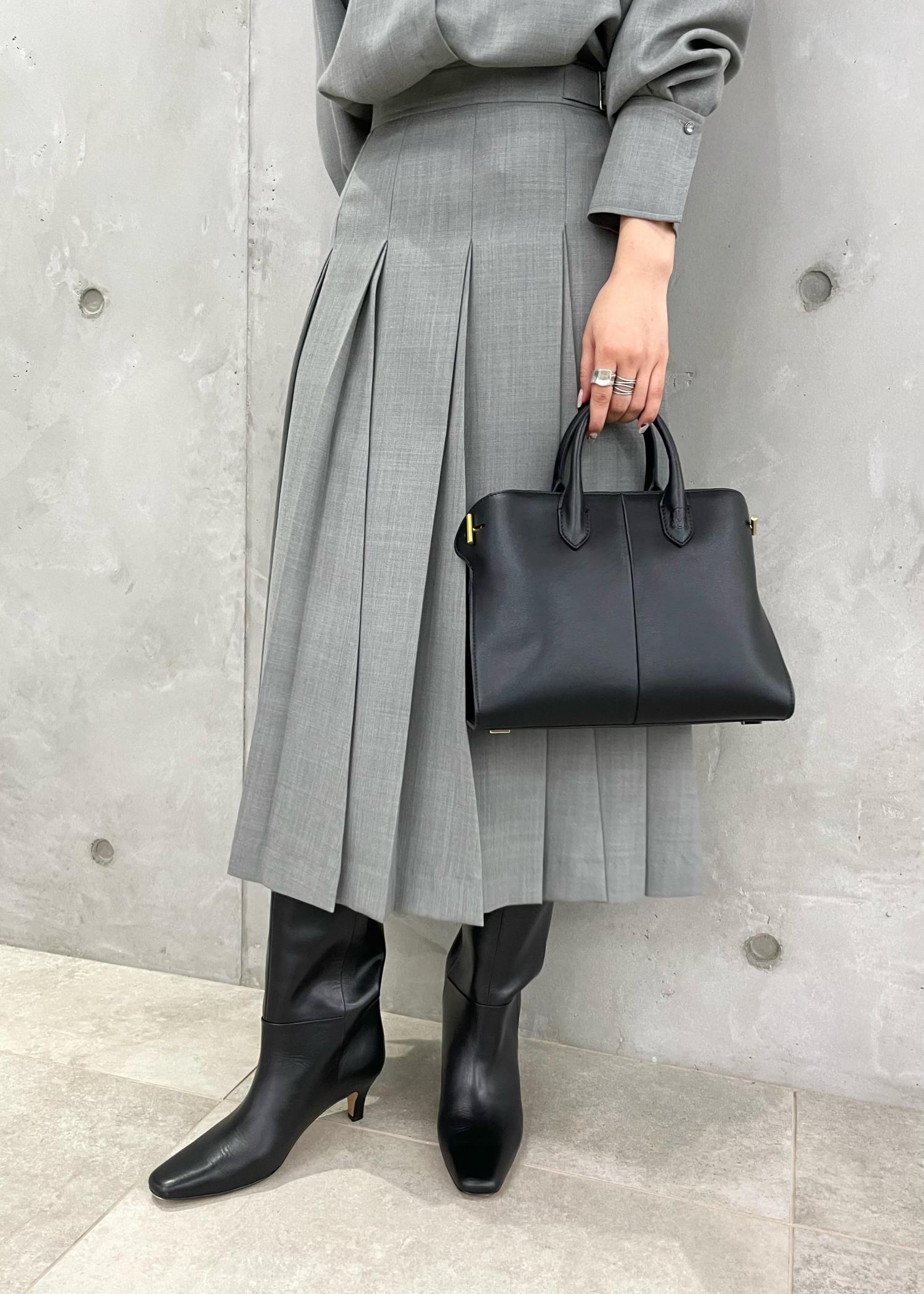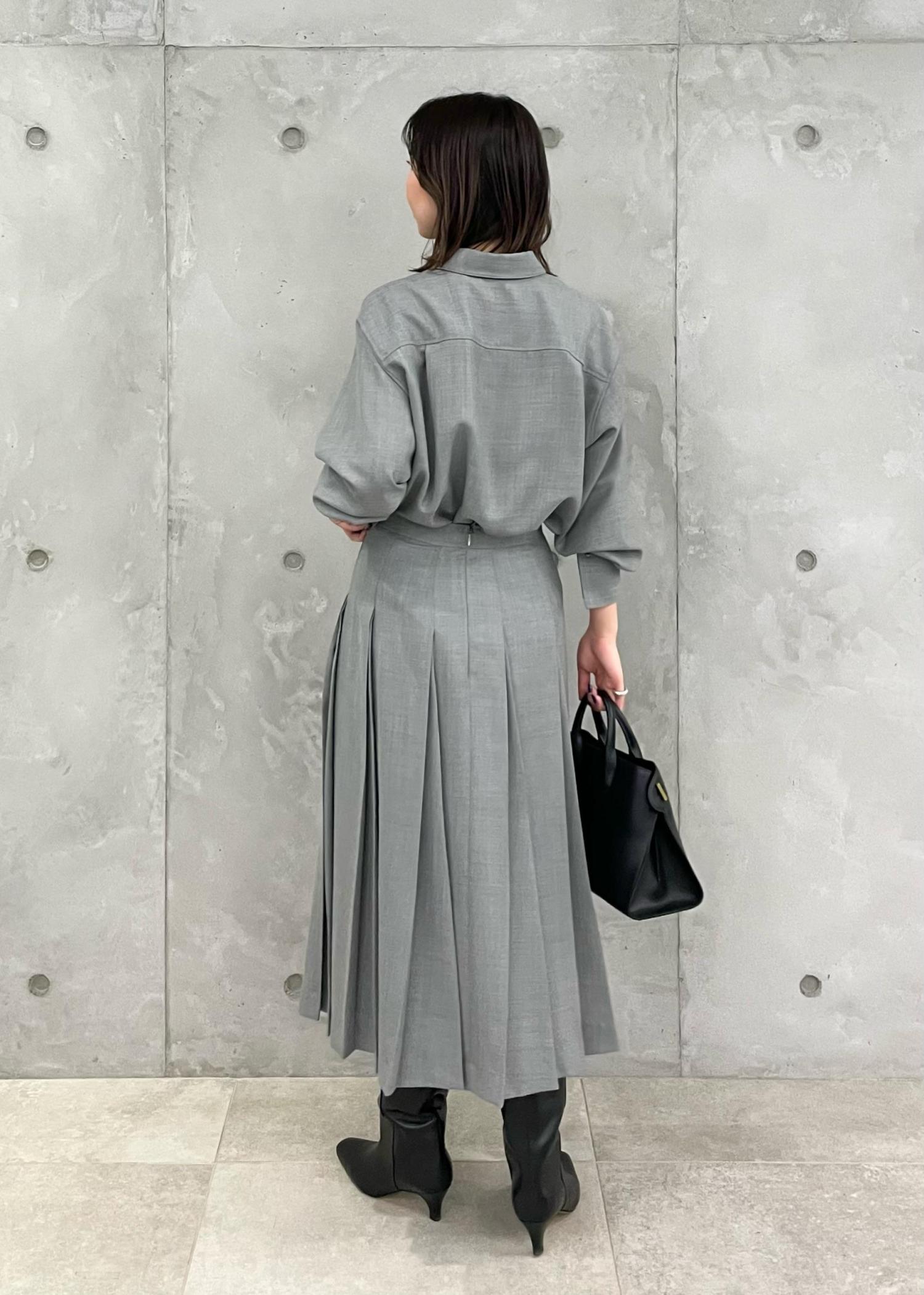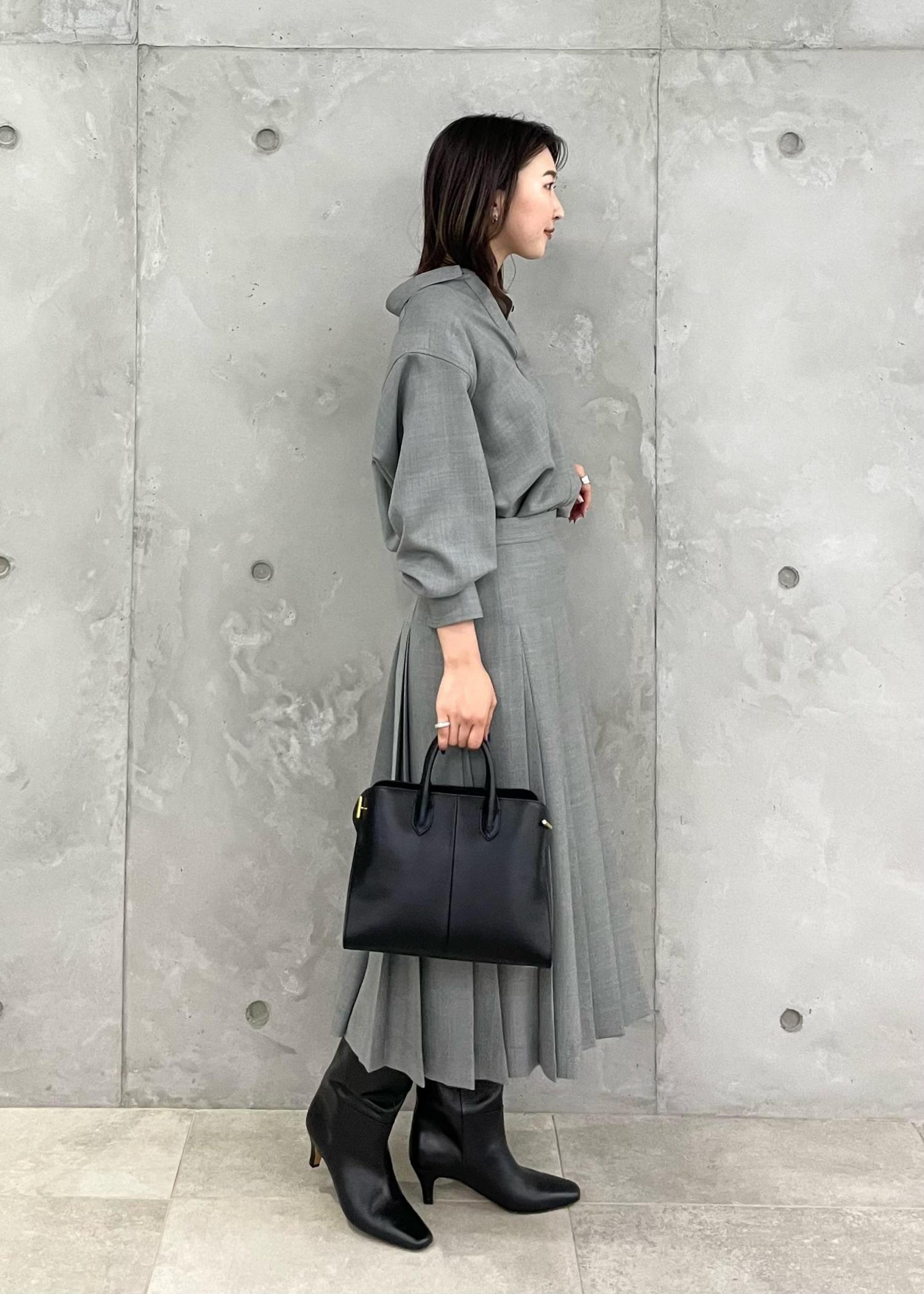 グレー×ブラックでシックだけど女性らしいコーディネートに。