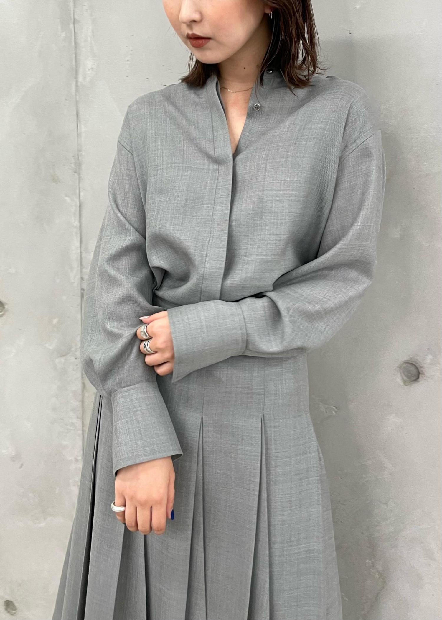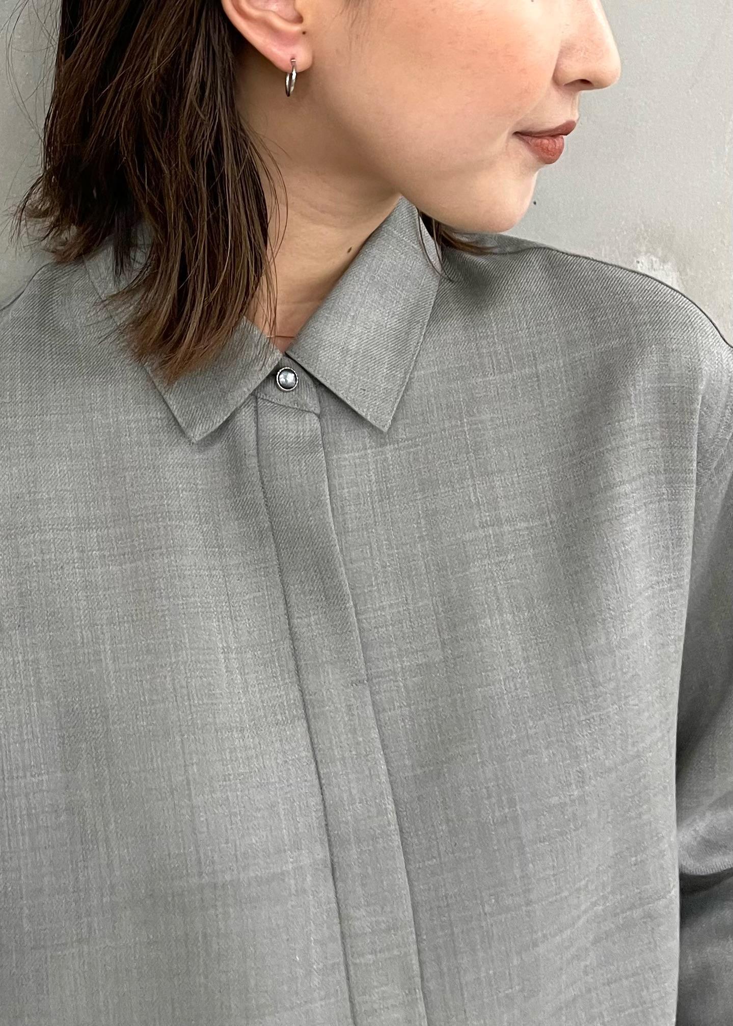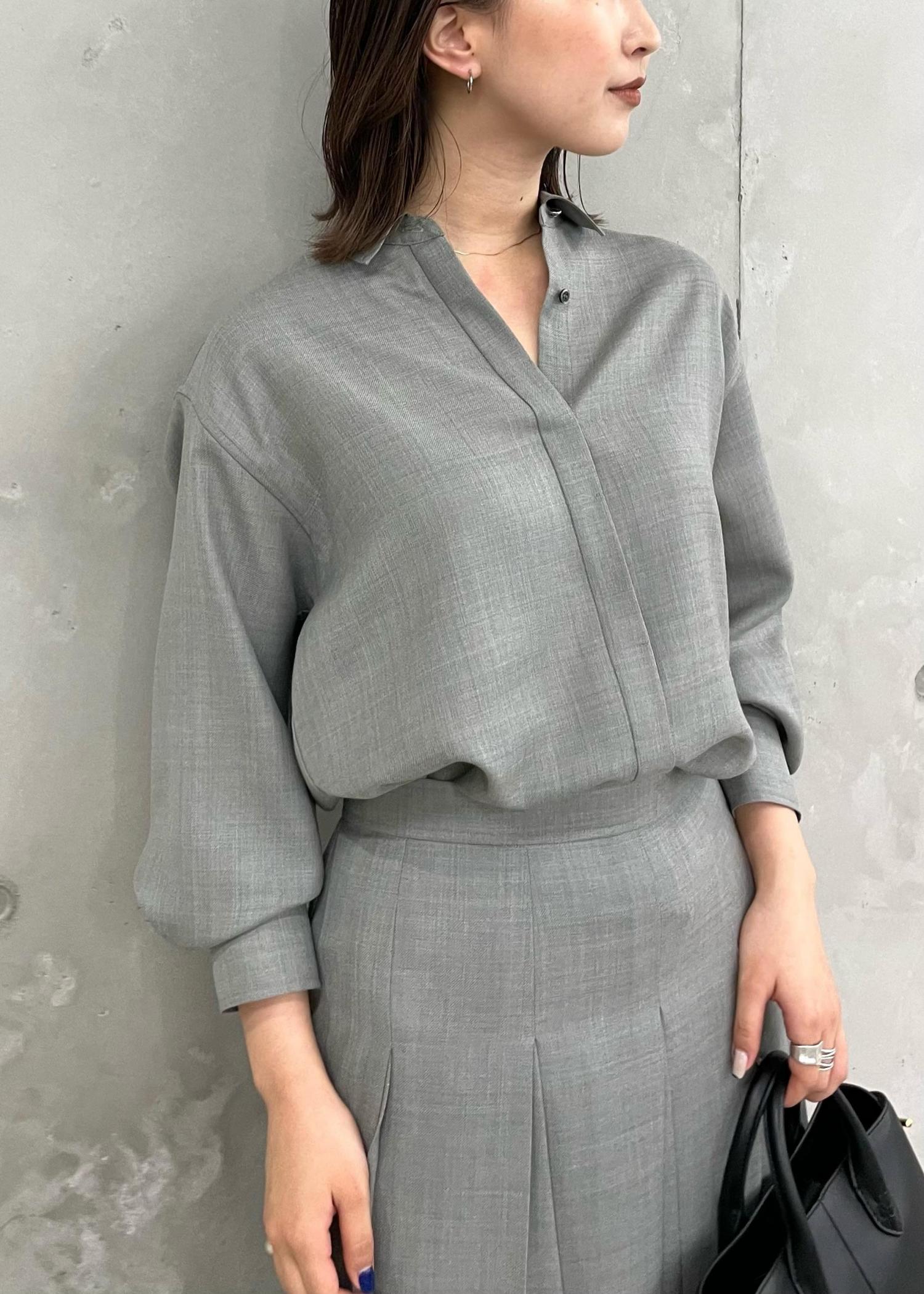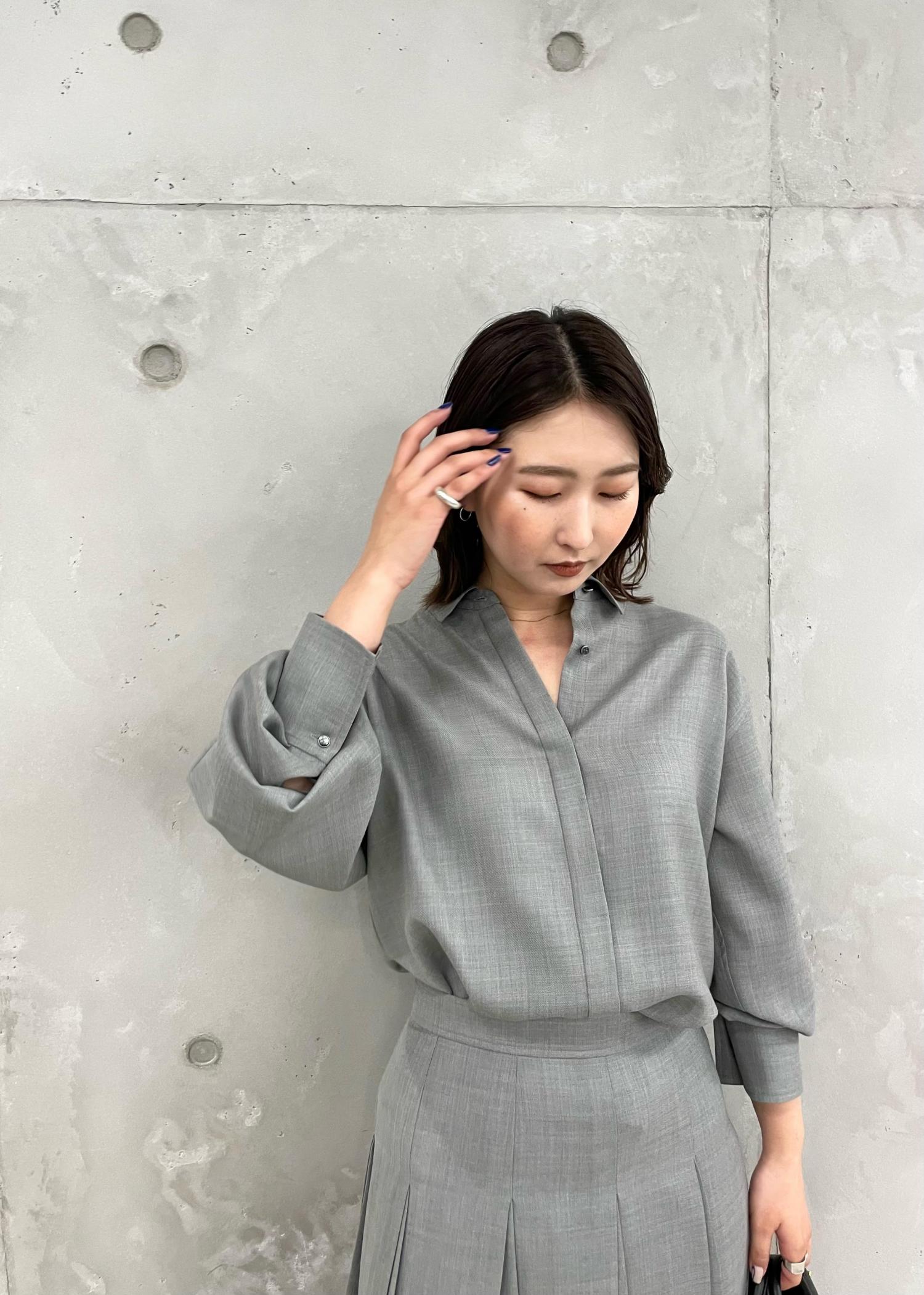 セットアップで着る際は、シャツの1番上のボタンを外して抜け感を出すのがおすすめ◎