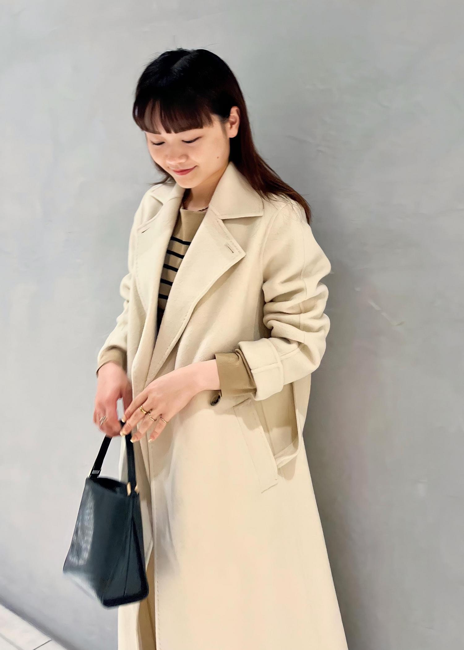 アウトレットROPÉ【高評価】【SUPER100's/140's】シャルムリバー2WAYロングコートキナリ / 38¥51,920レビュー真っ白ではないエクリュのカラーが高級感があります。ガウンコートらしい少しオーバーなサイズです。
