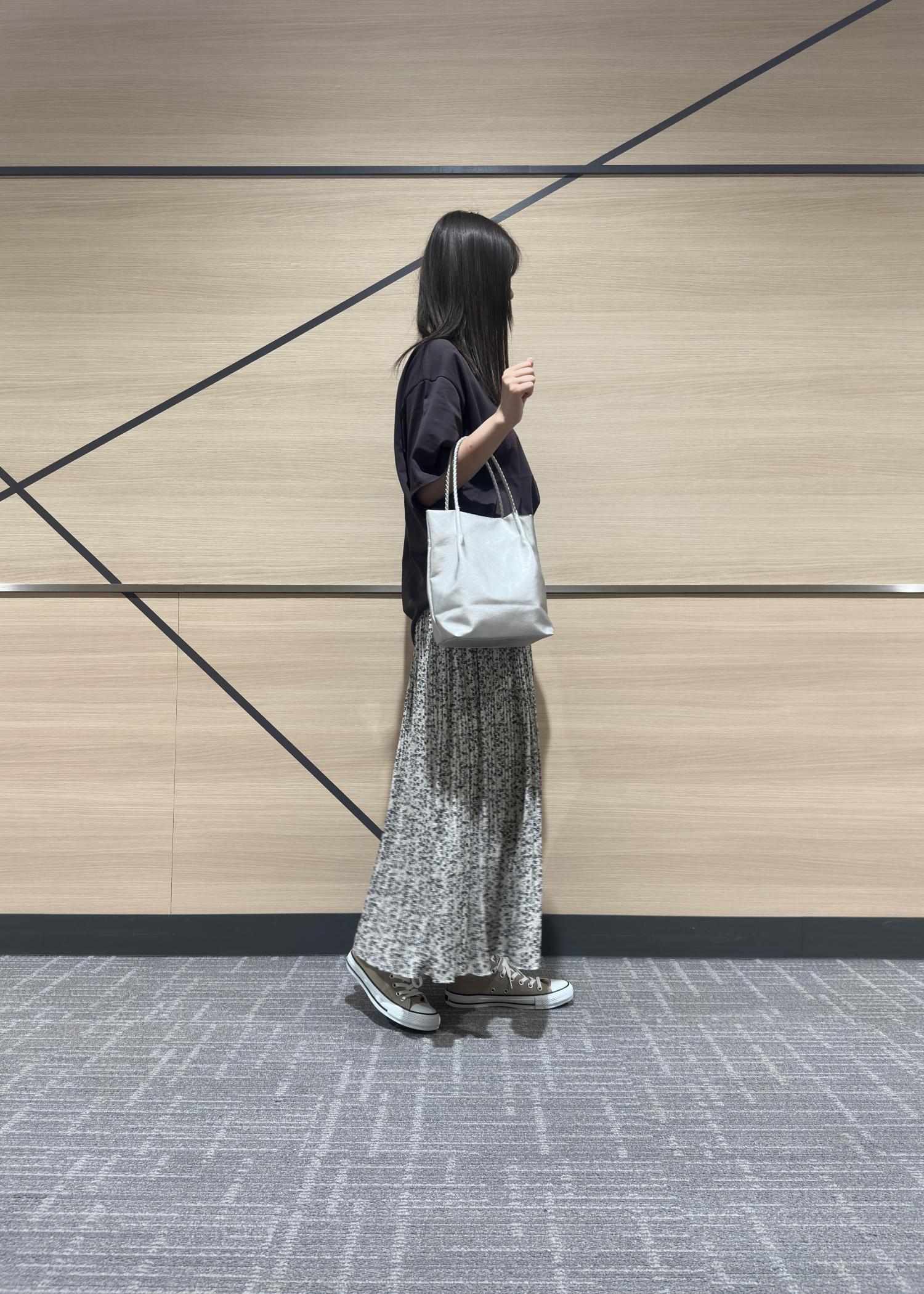 今回はカジュアルスタイルで合わせましたが、キレイめスタイルにも相性が良い万能スカートです♪