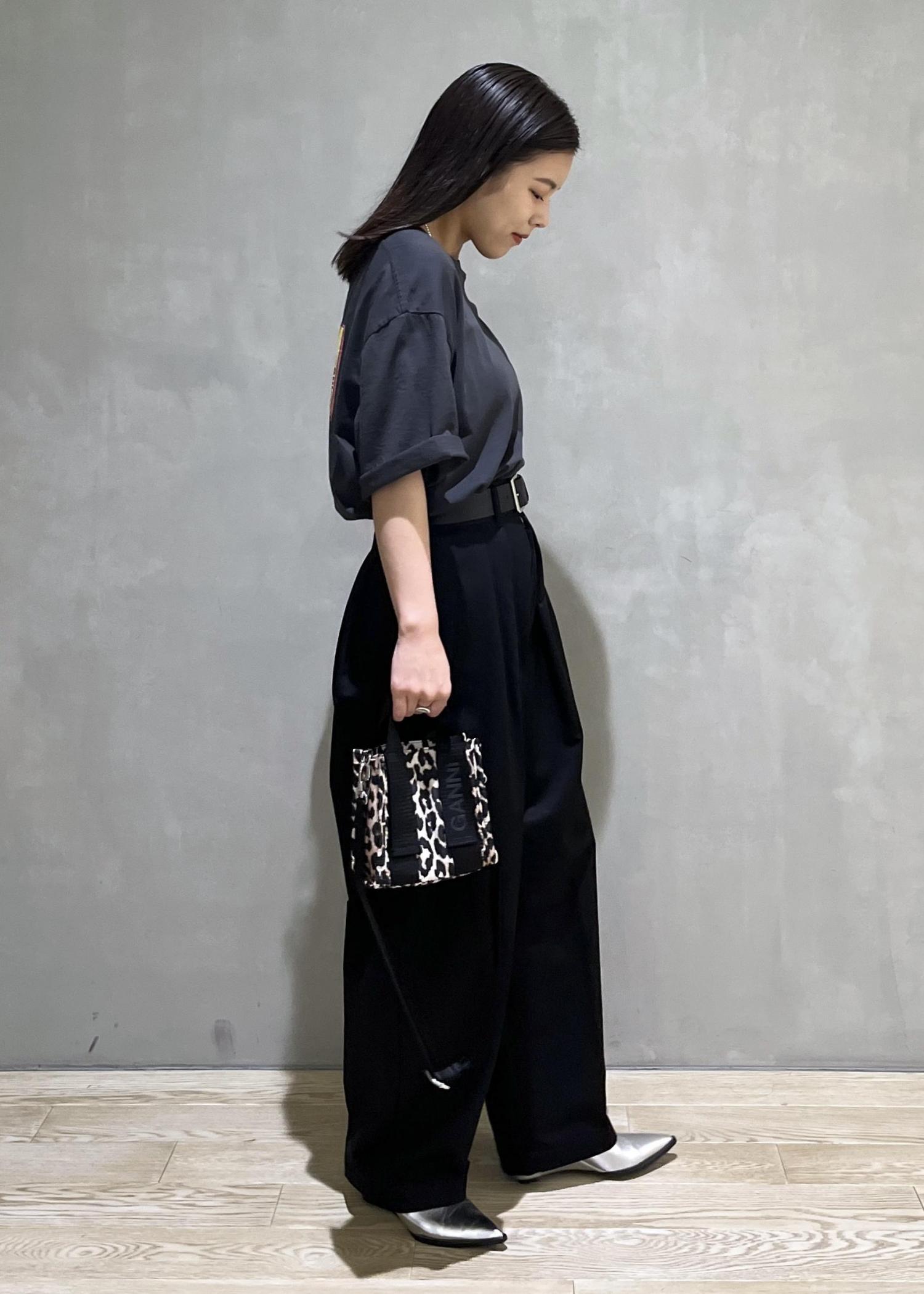 丸みのあるシルエットがとても可愛いので、Tシャツはインするとバランス良く見えます♪
