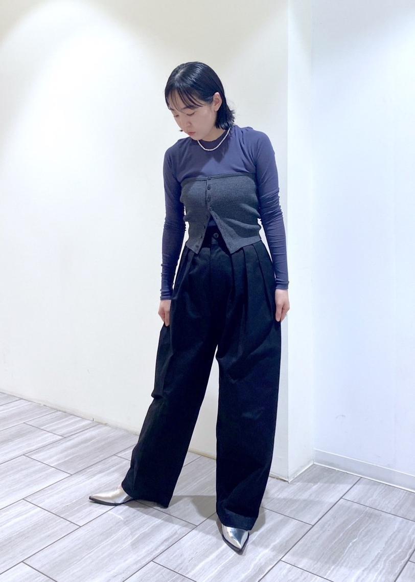 ビスチェは、優しくフィットしてくれるので、もう少し緩めなトップスにも巻いて頂けます。