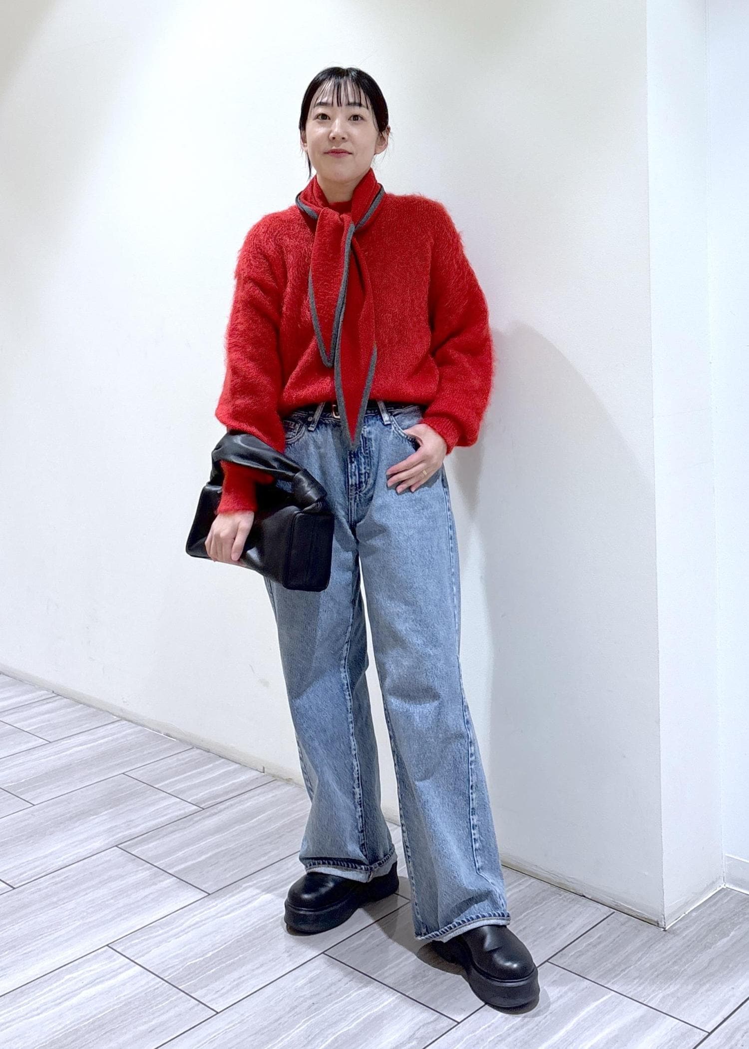 ステッチワークが効いており、甘すぎずモードな要素はそのままに…。