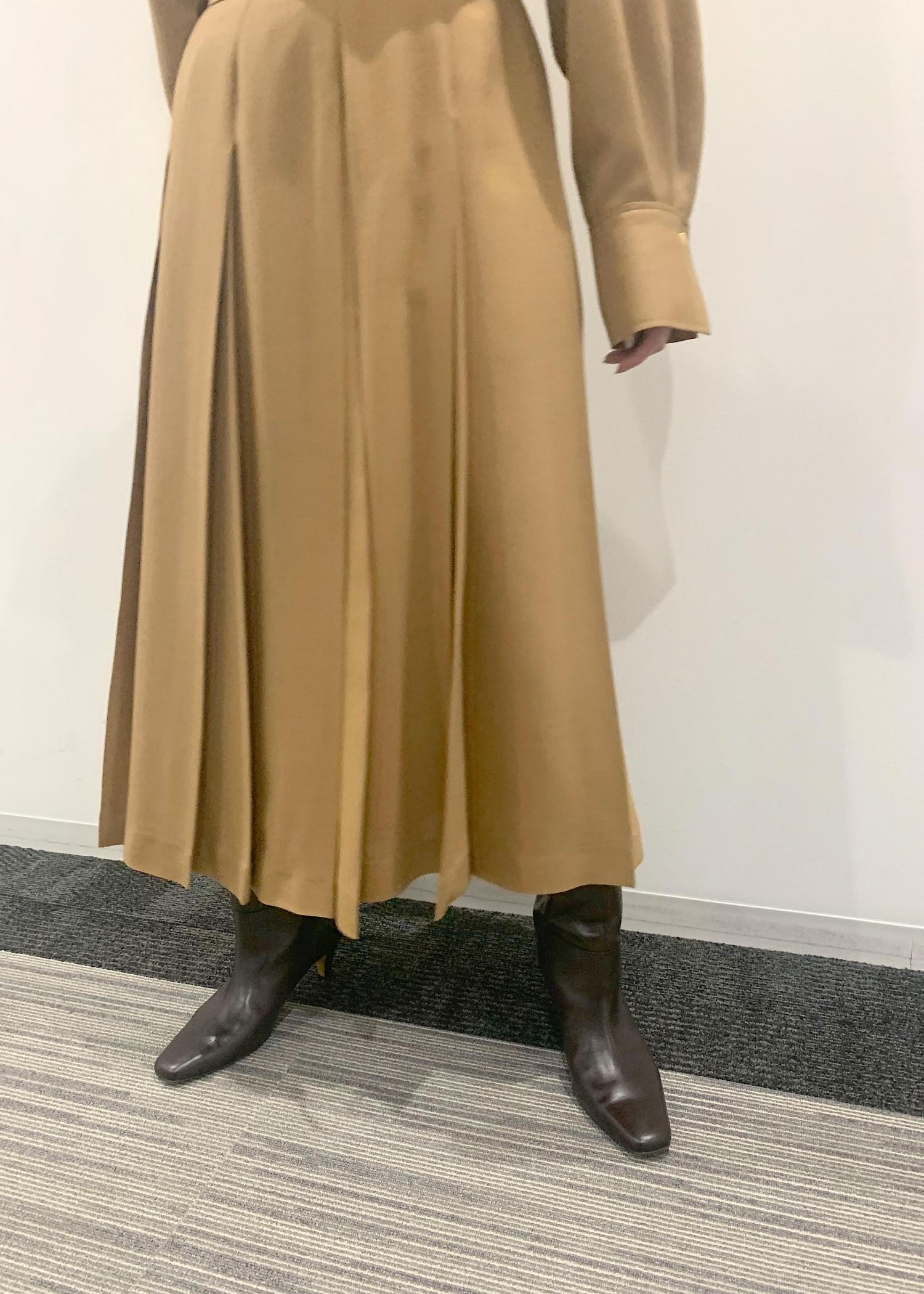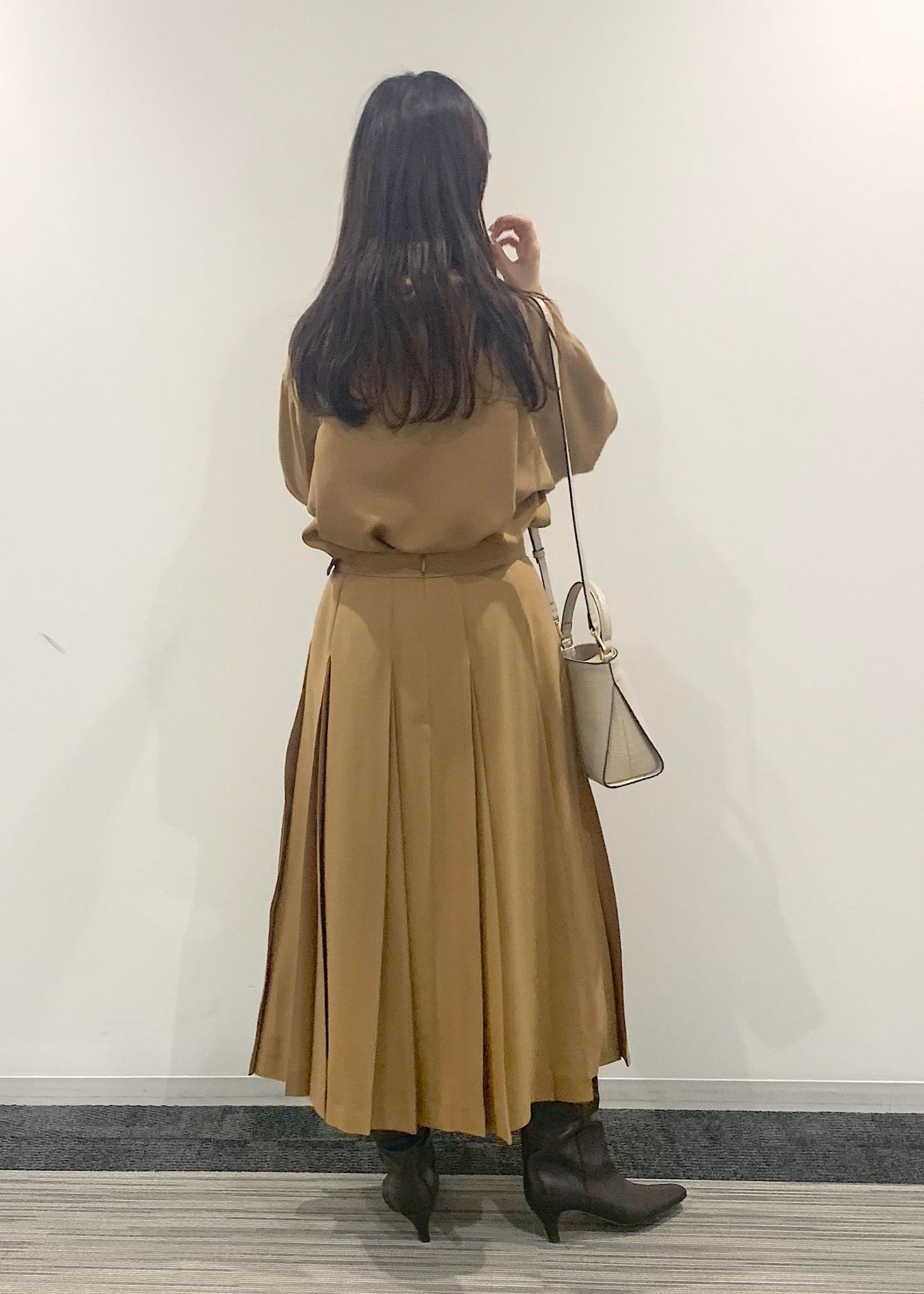 今回はなんとも秋らしい、シャツとプリーツスカートのセットアップのご紹介です。