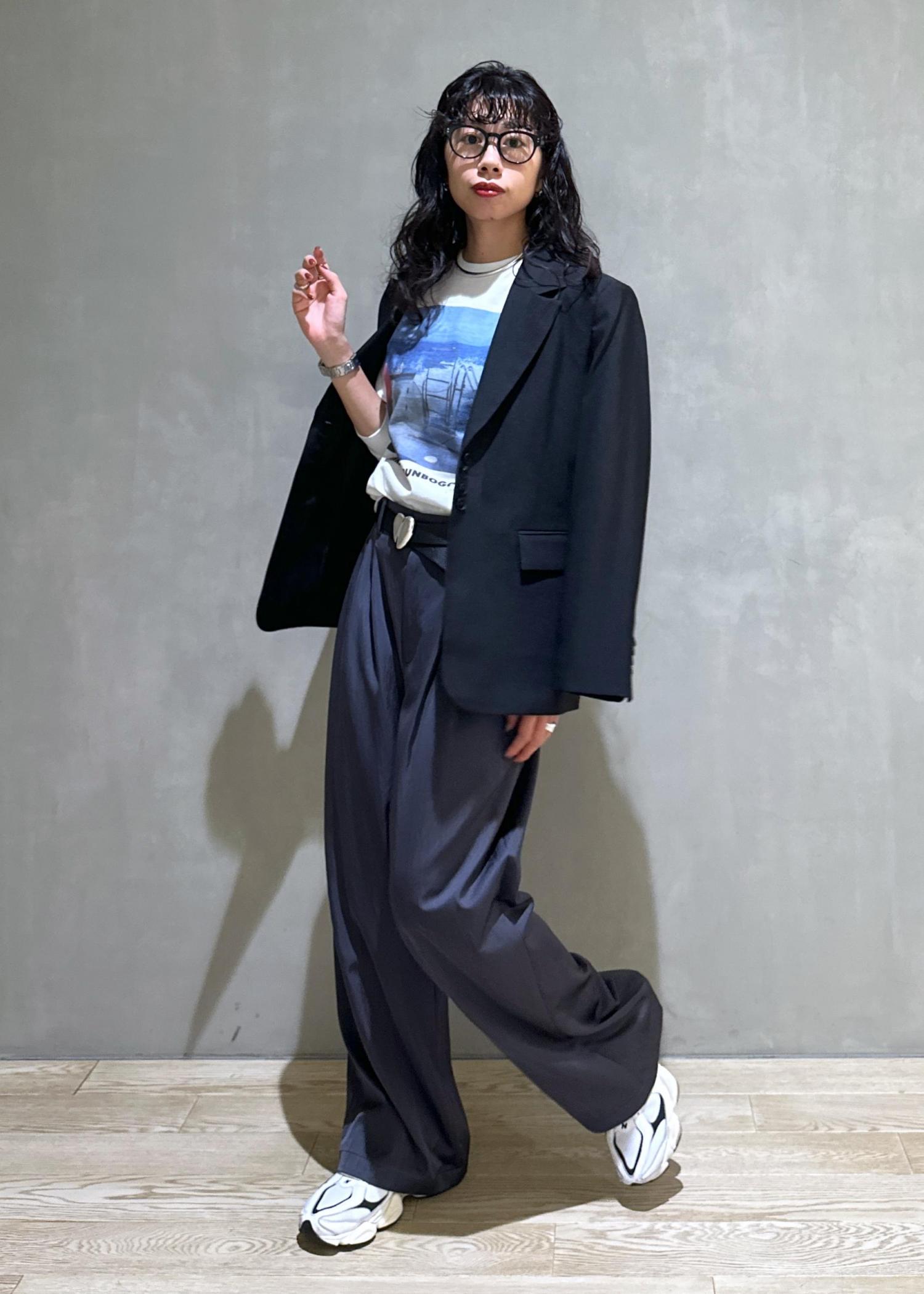 ジャケットは好きでよく着るんですが、カジュアルに合わせるのが個人的に好みです!こちらのジャケットは、オーバーサイズでカッコよく着れるイメージ。38サイズを着ています!