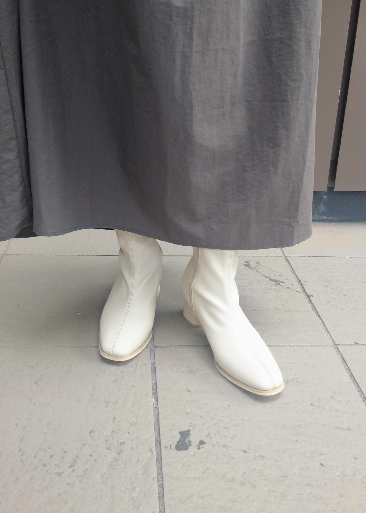 ブラウンの切り替えニットワンピースに、フェザーベスト、ブーツ、ベレー帽を合わせ、小物で秋を意識した先取りコーデに仕上げました!