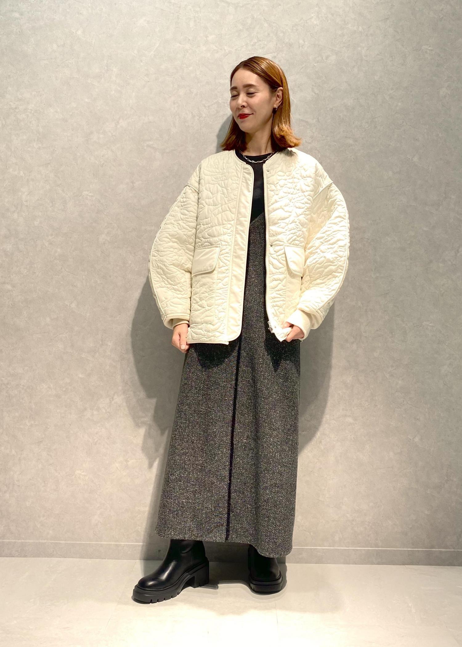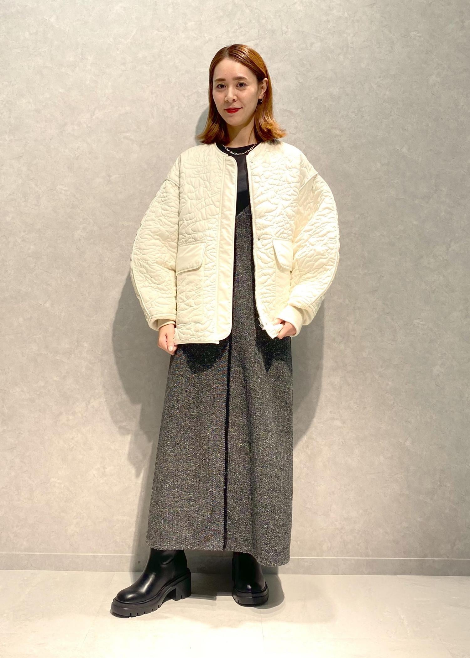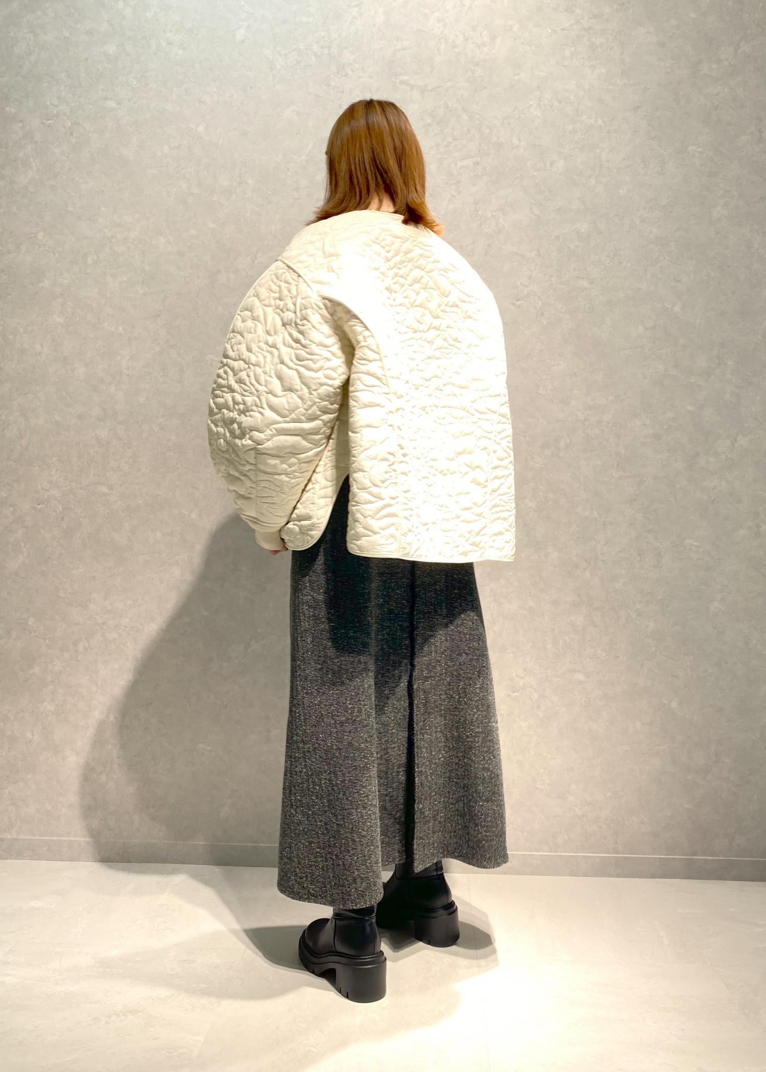 ランダムに描いたアーティステックなキルティング柄が魅力の中わたジャケット。