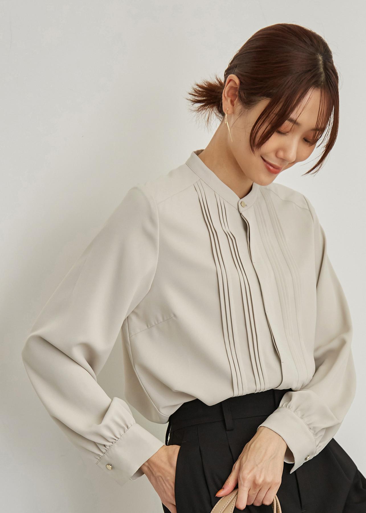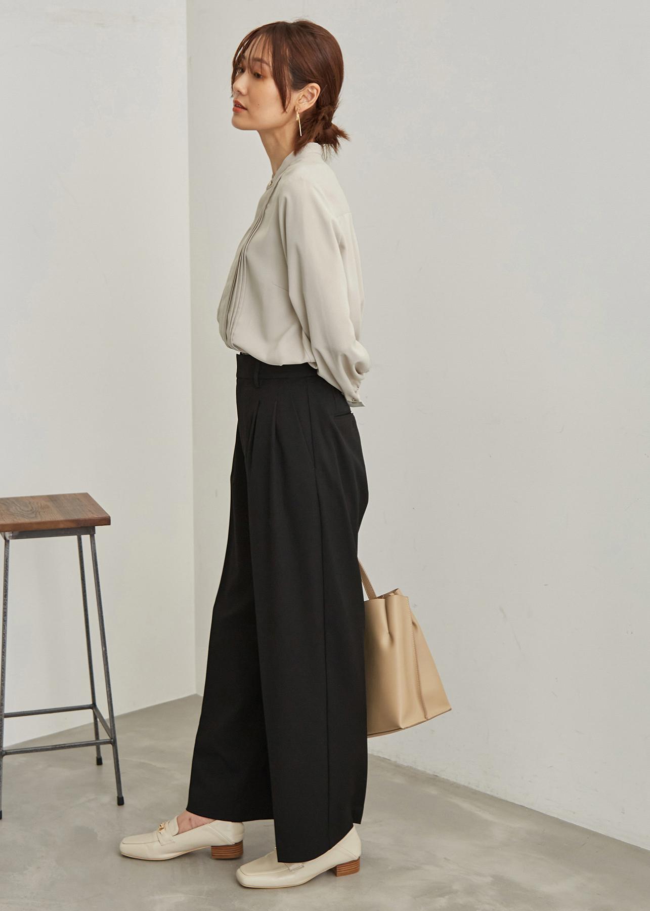 ピンタックブラウス通勤コーデ
