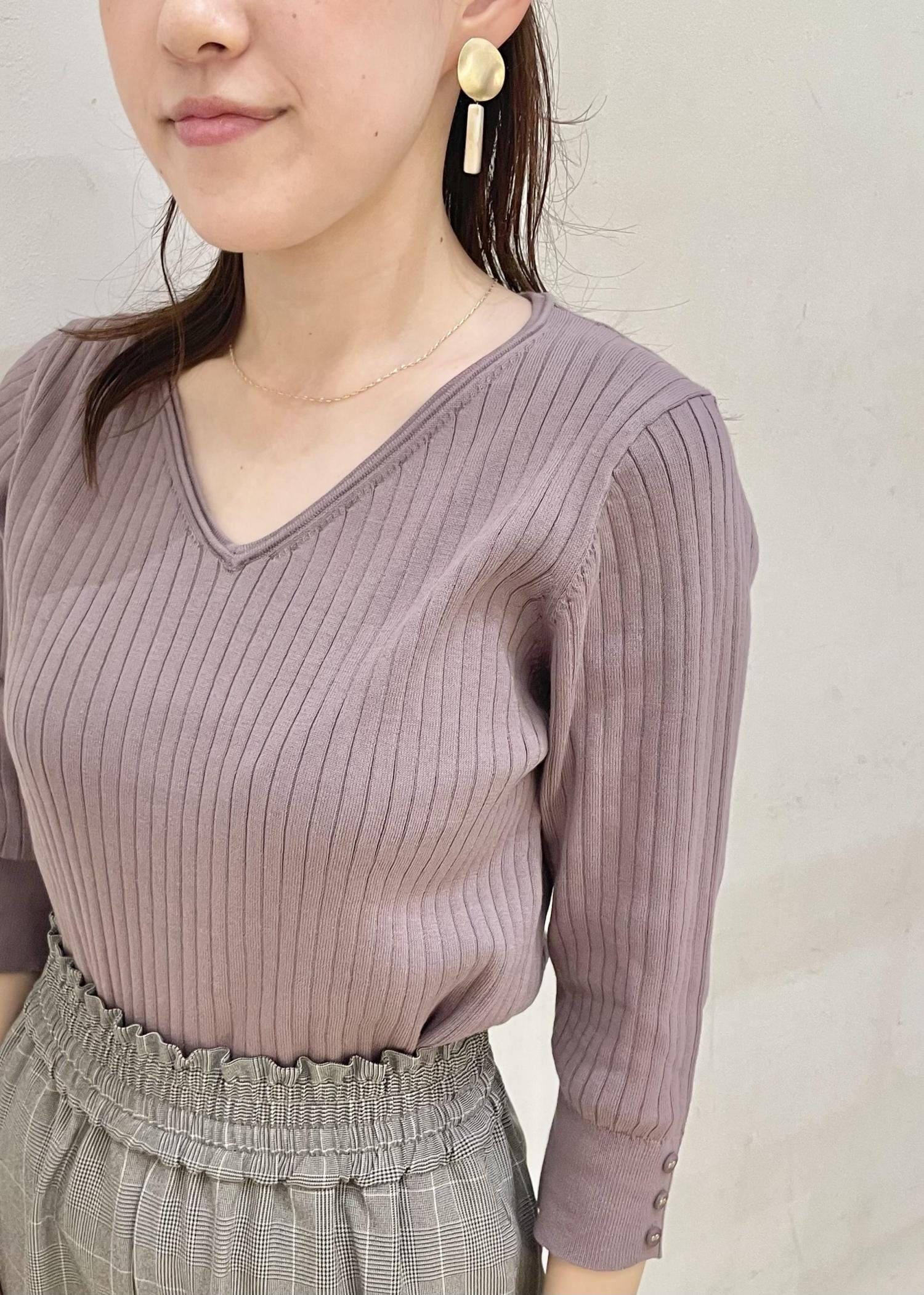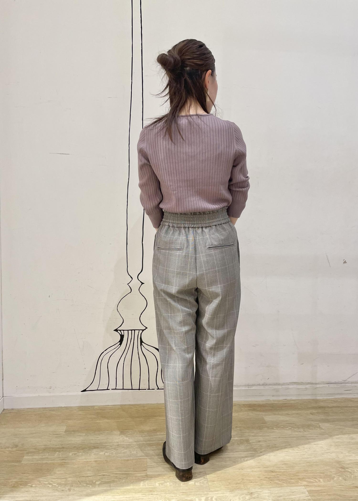 きちんと感もでるチェックワイドパンツにカラーニットを合わせてオフィスカジュアルなコーデにしました。それぞれオンオフで使えるアイテムです。