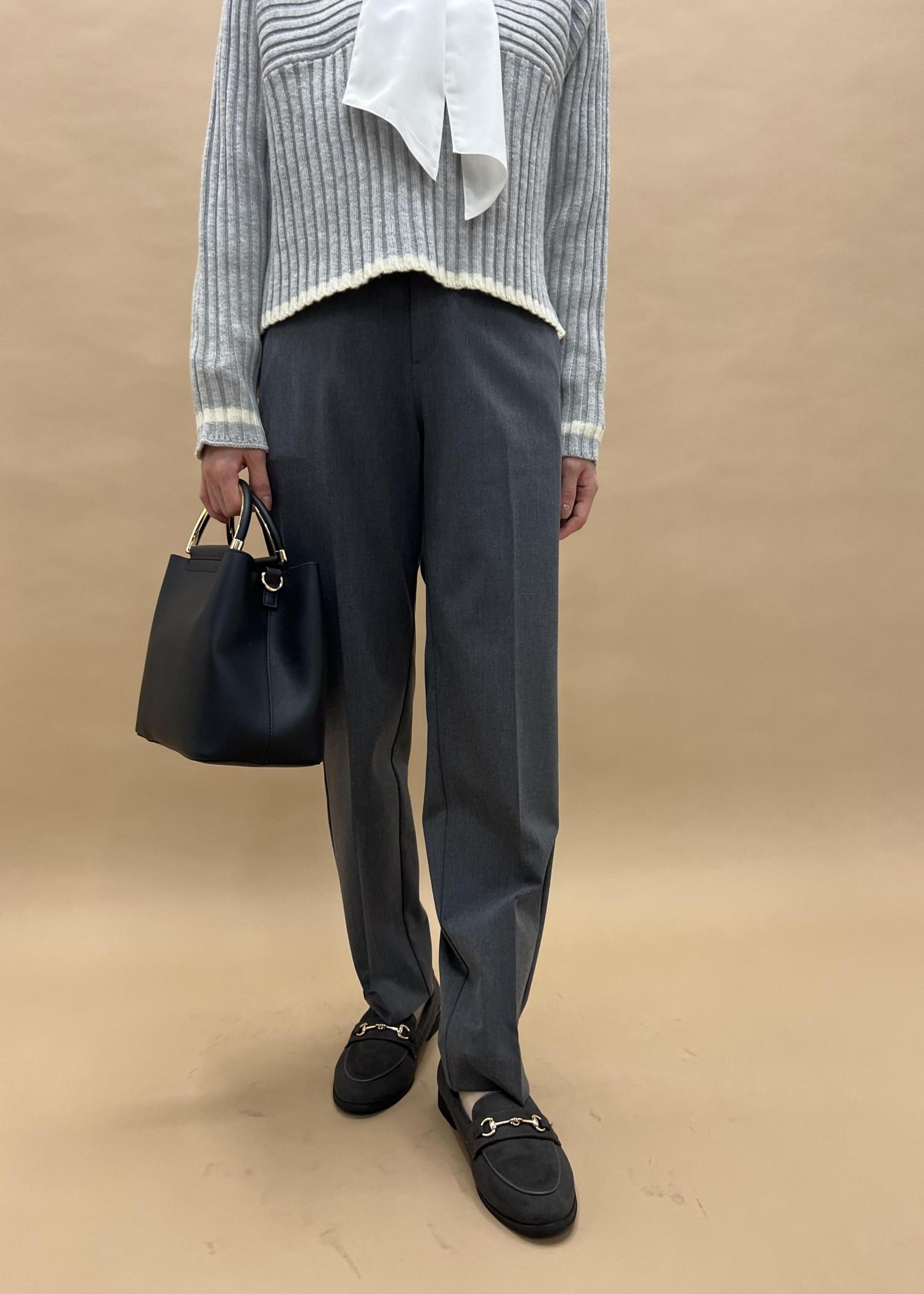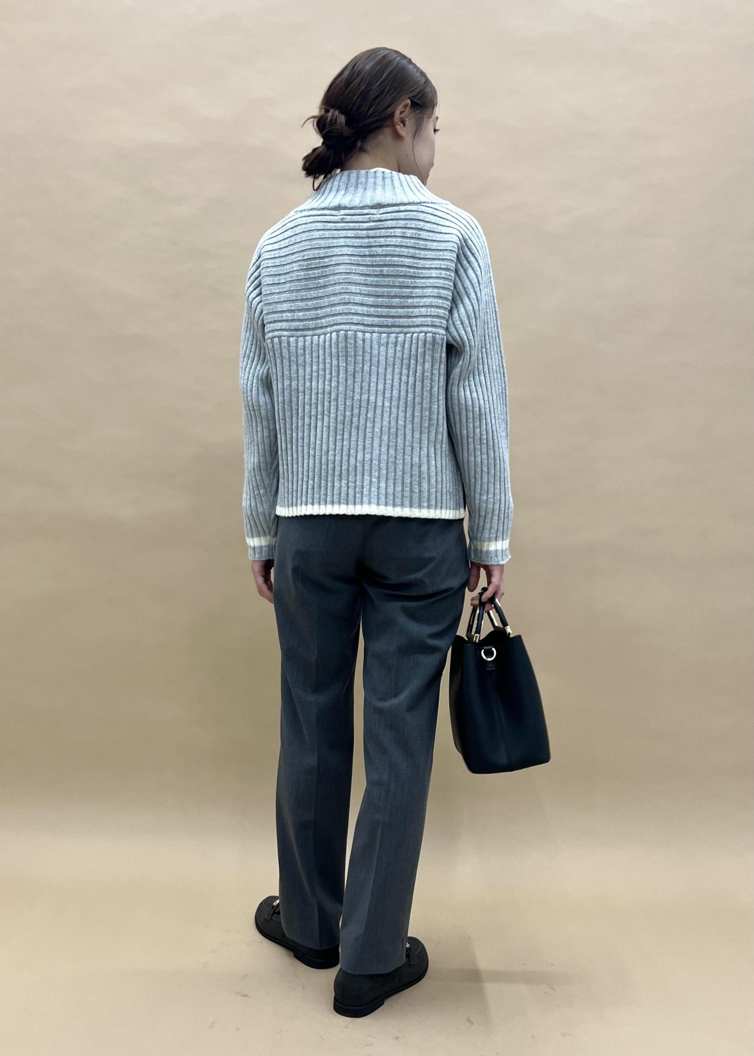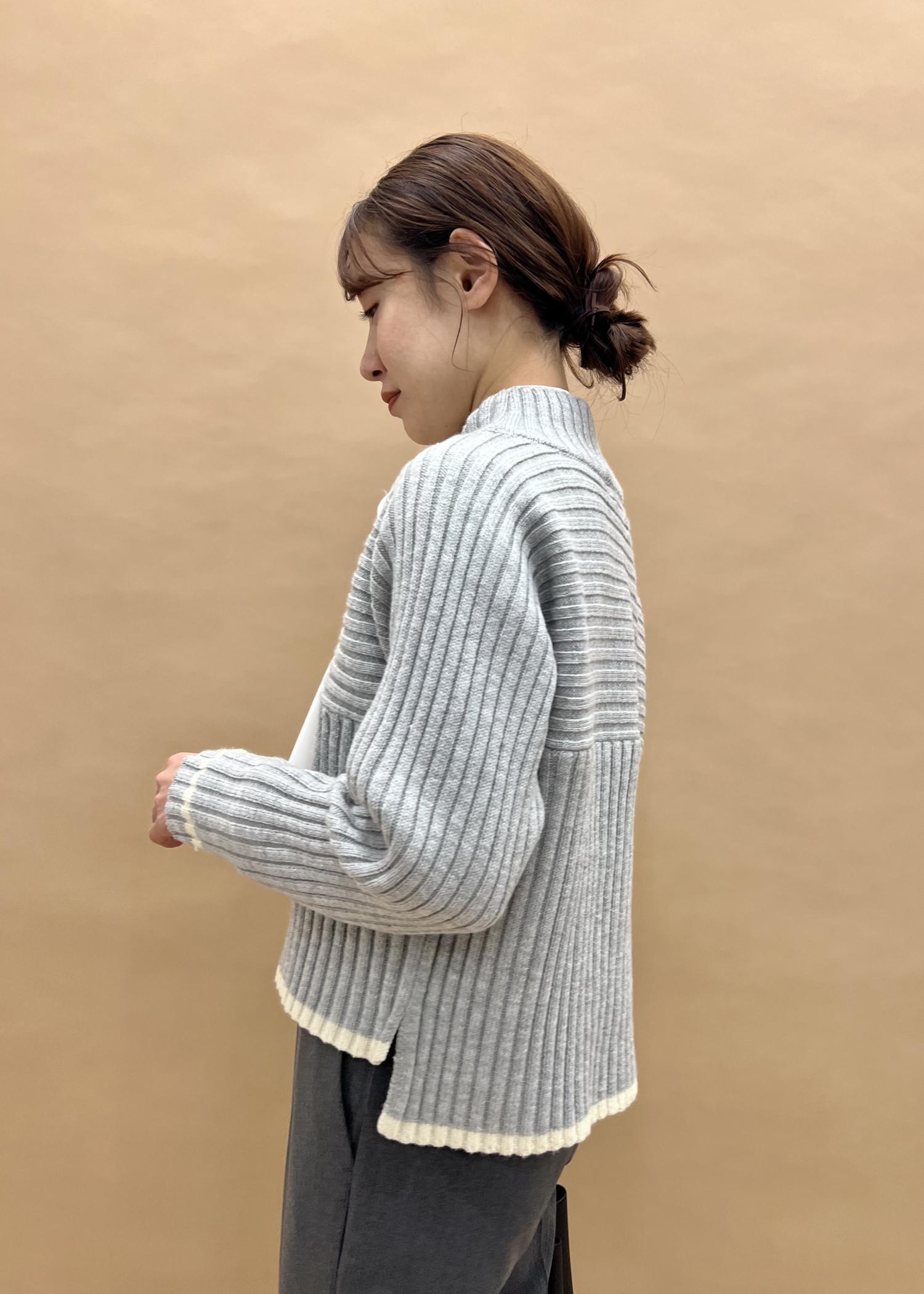 テーパードパンツと合わせても、上半身がすっきりと見える、短丈ニットです。