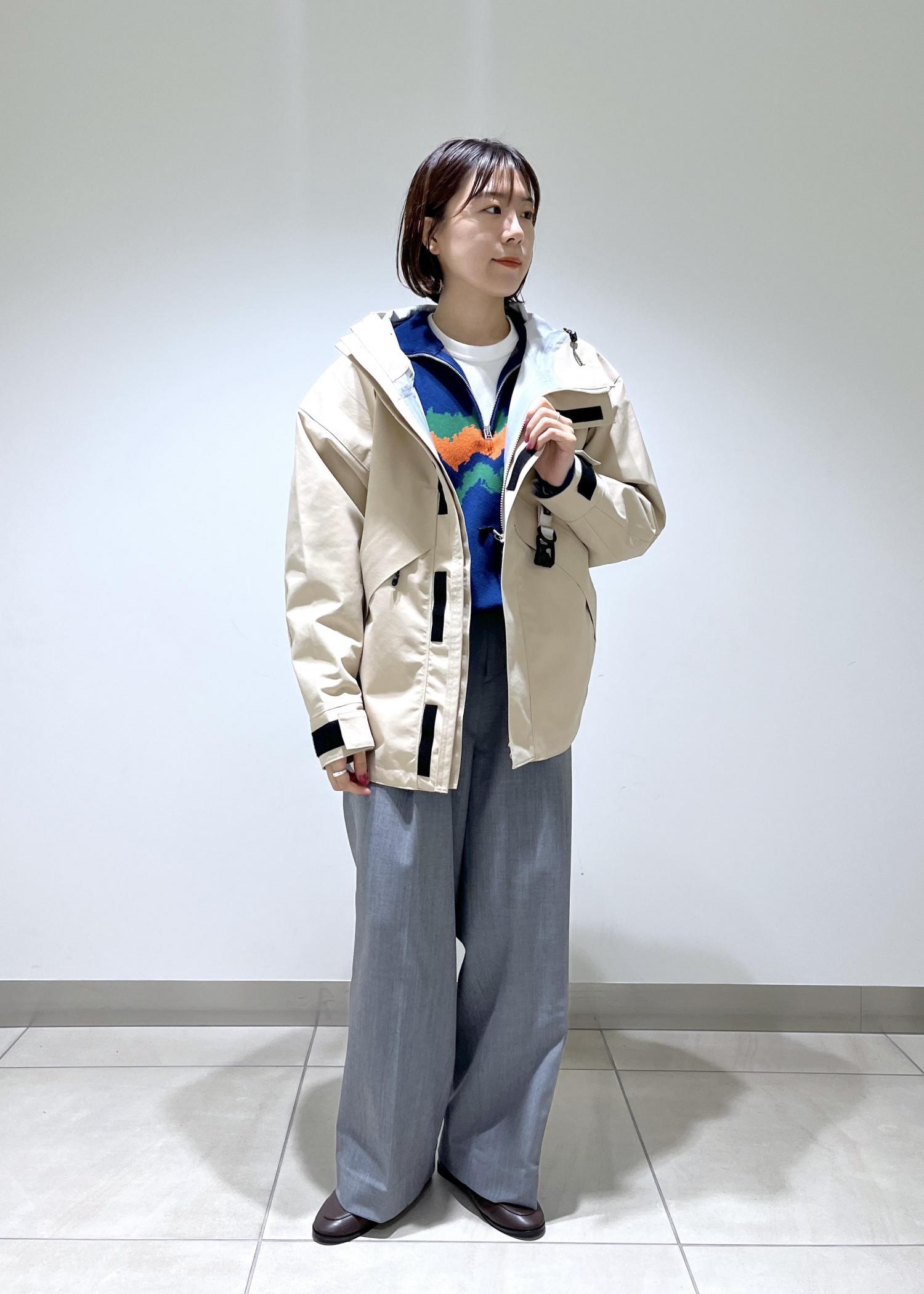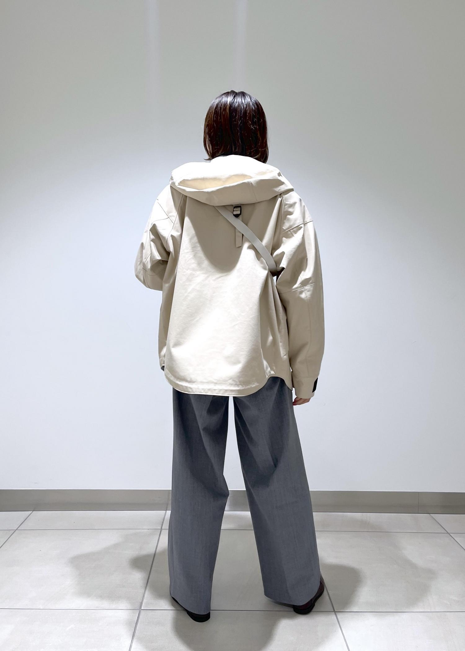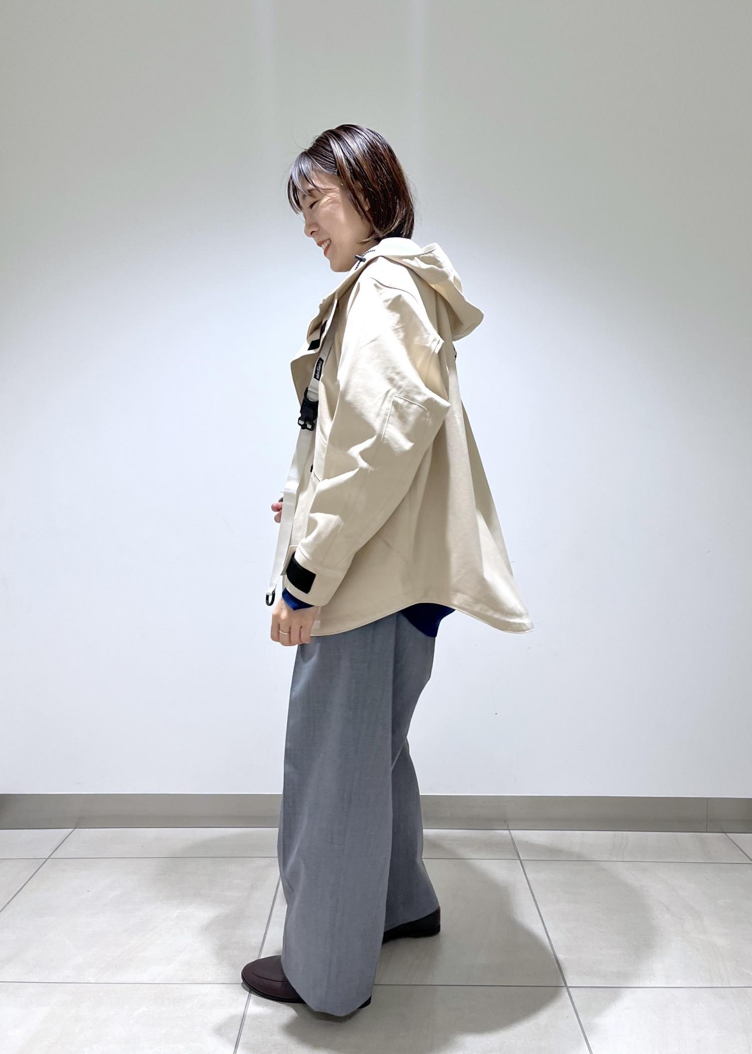 オーバーサイズでバサっとラフに羽織れるので中に厚手のトップスを着ていても程よくゆとりがあり、重さもそこまでないので着やすいです!