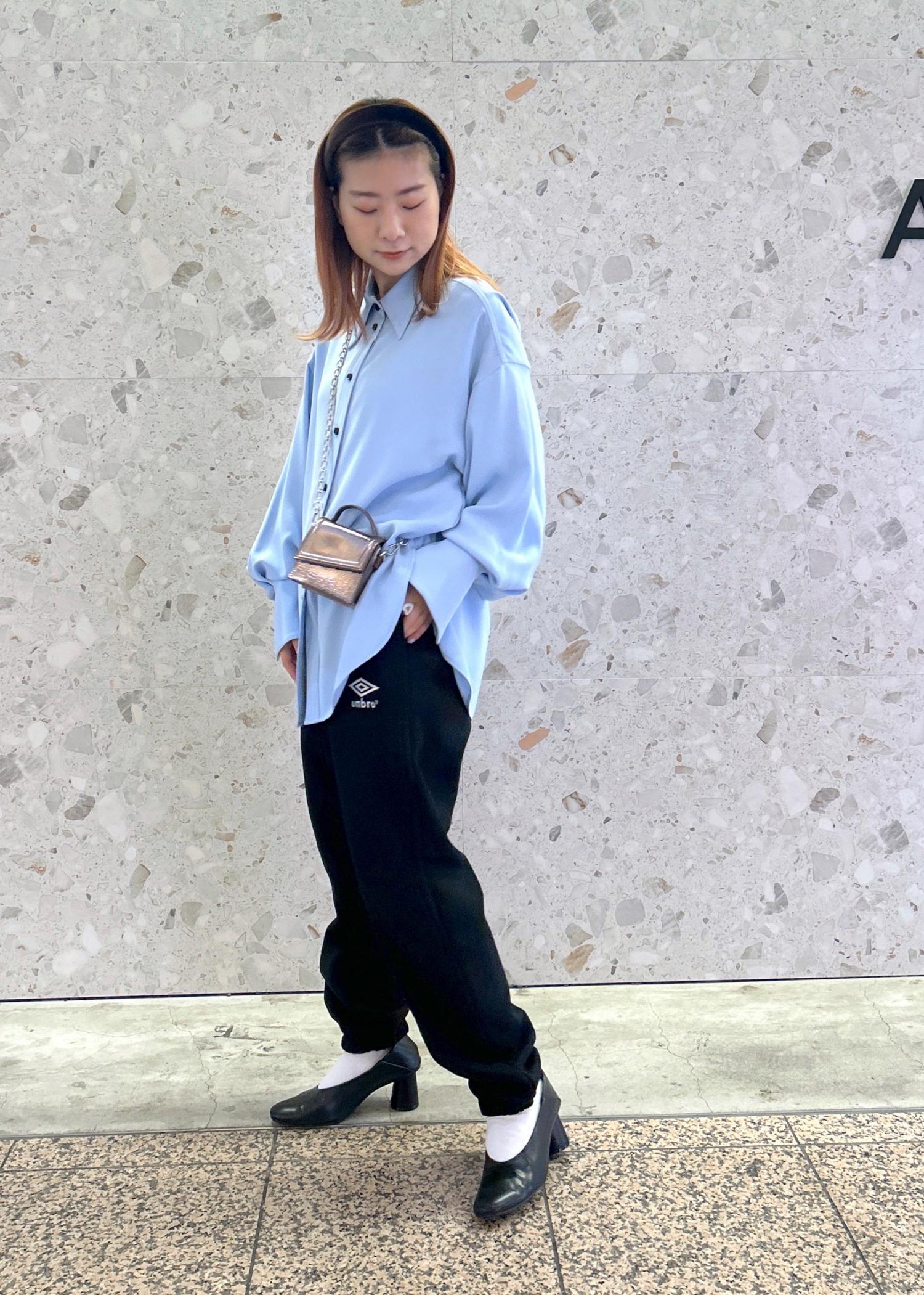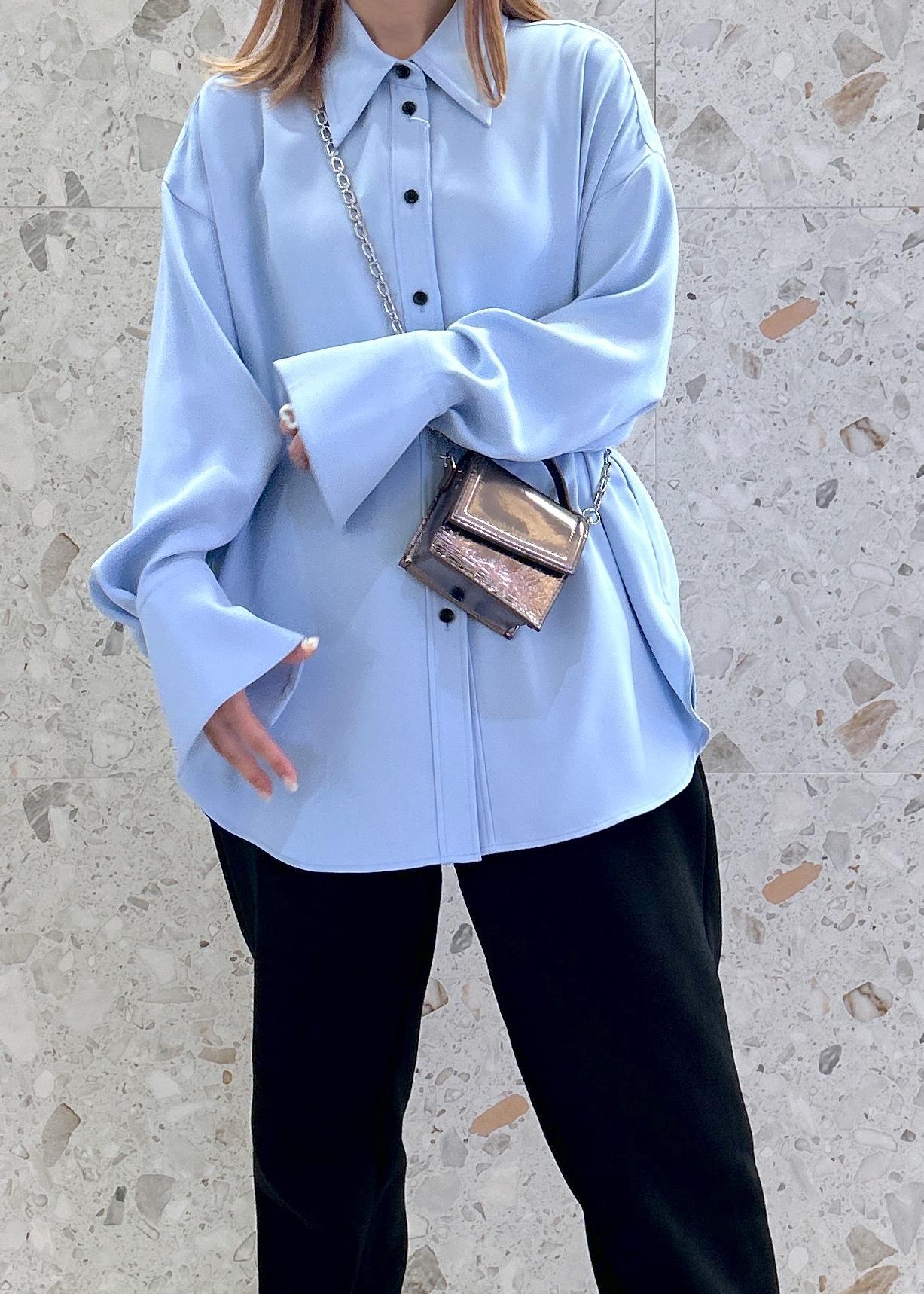 シャツは、ドレープ感のある素材でモードで大人な雰囲気のあるデザインです。