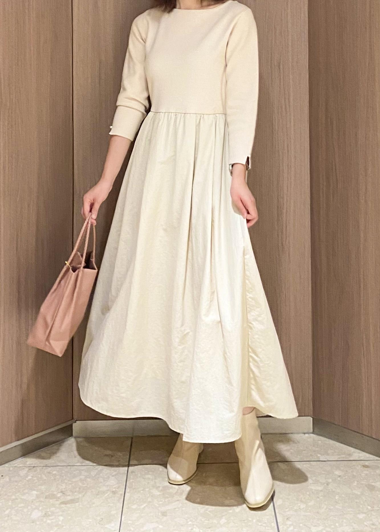 一枚で様見えする優秀ワンピース。骨ストなのでフレアシルエットは着膨れするのでは、、と思ってたのですが、