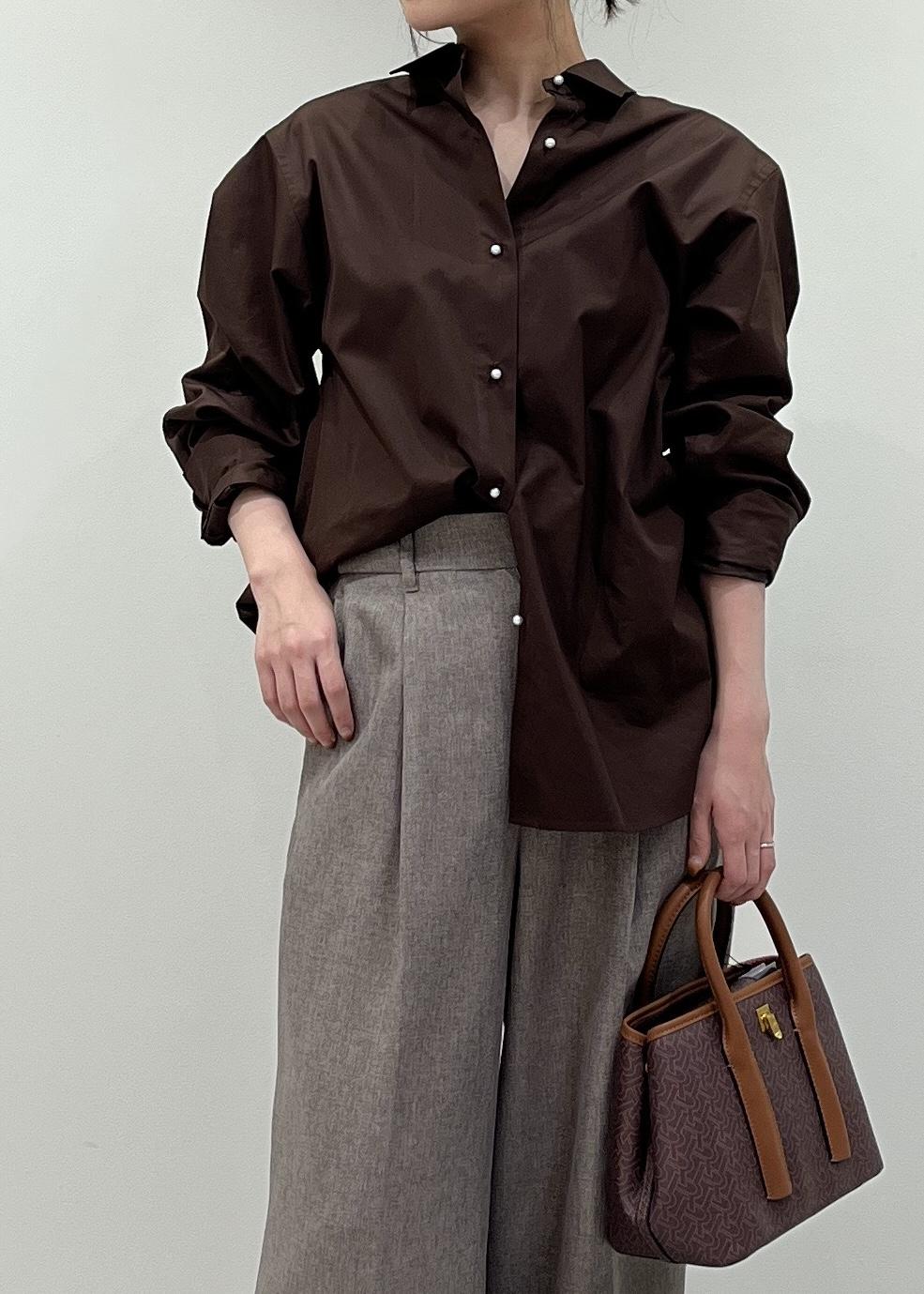 パールボタンがアクセントになりアクセサリーなしでも一枚で決まります。