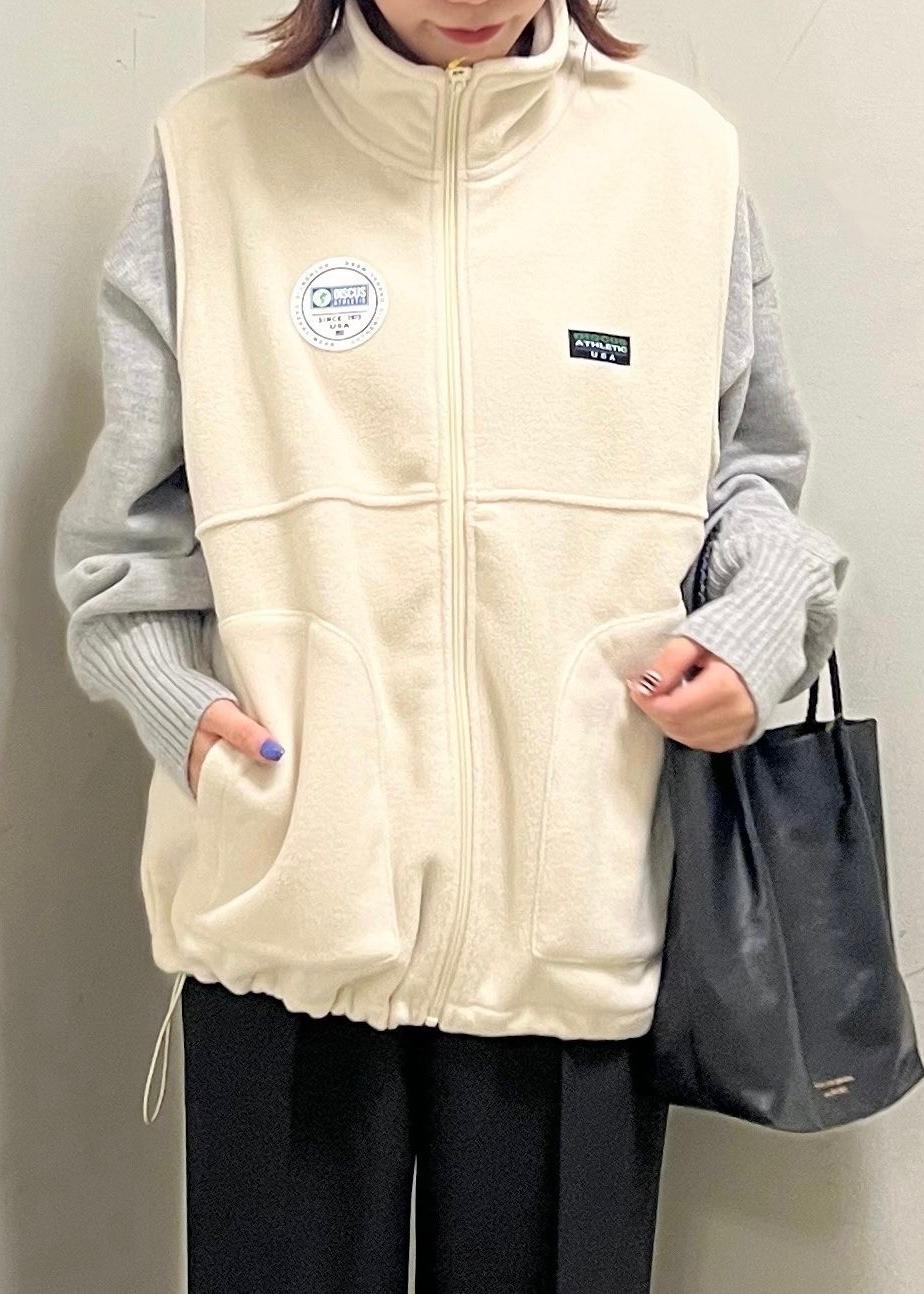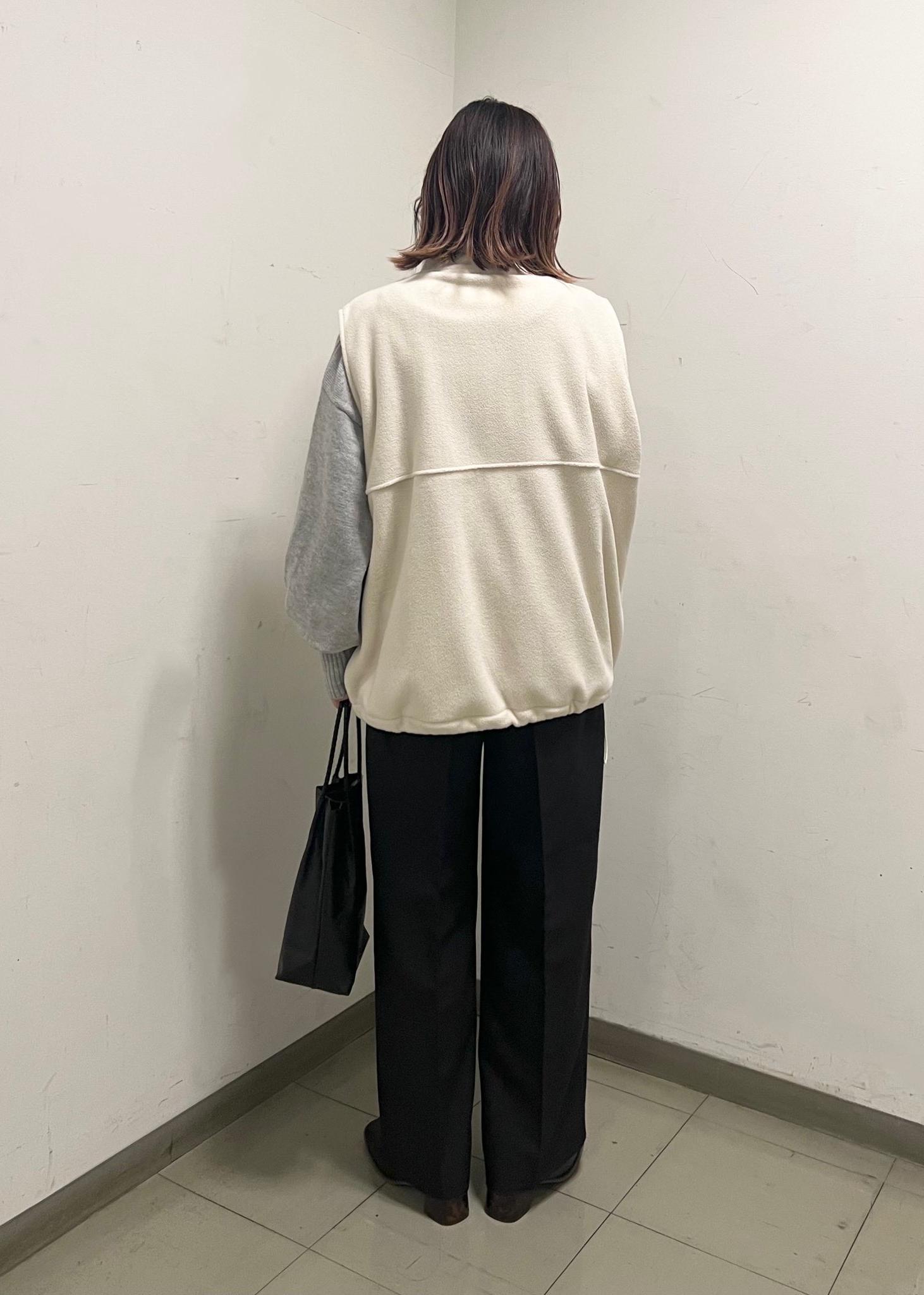 ボリューム袖がかわいいニットなのでベスト合わせで