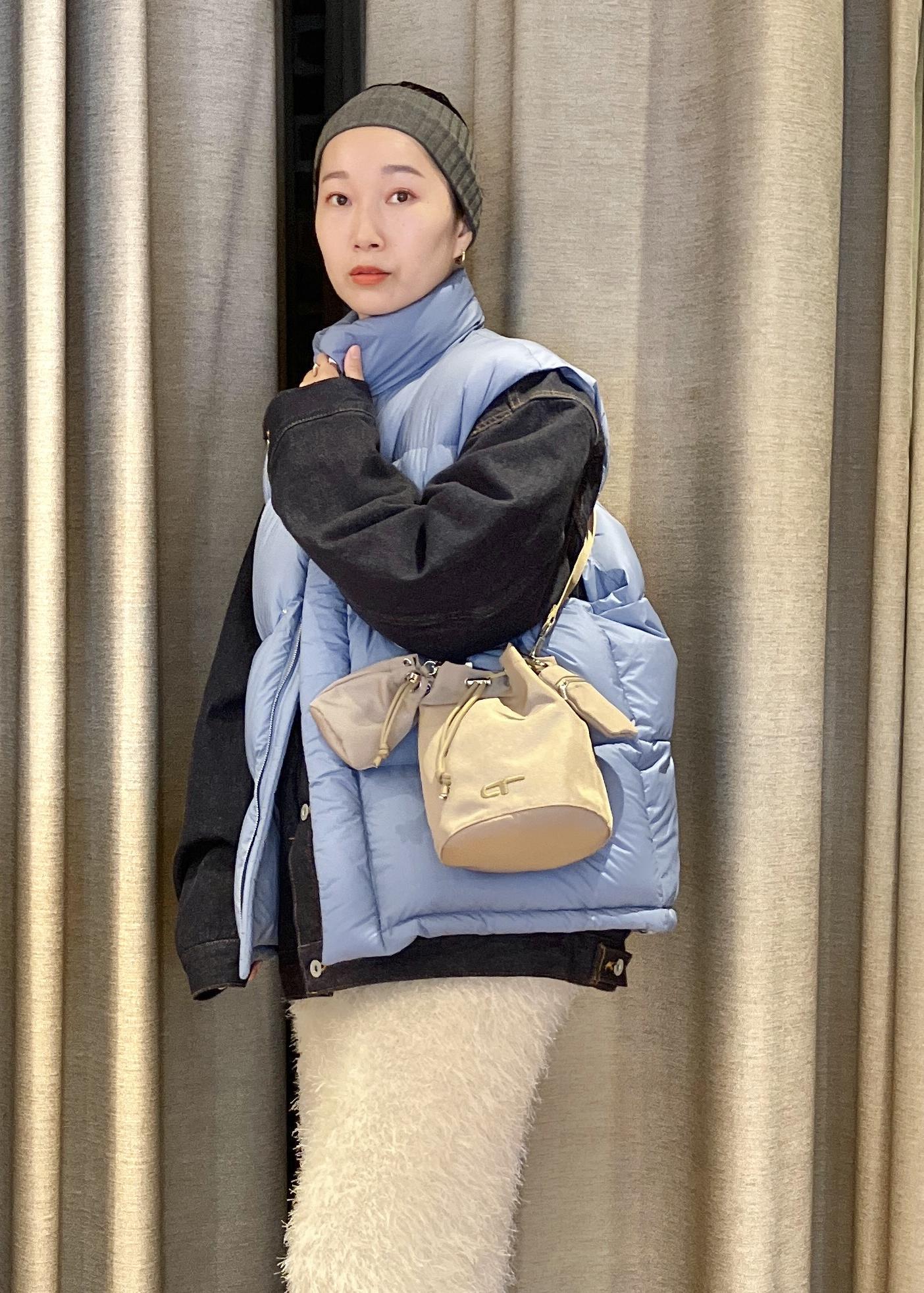 ジャケットやデニムジャケットの上、スウェットやニットの上に重ねたり、レイヤードを楽しめるアイテムです。