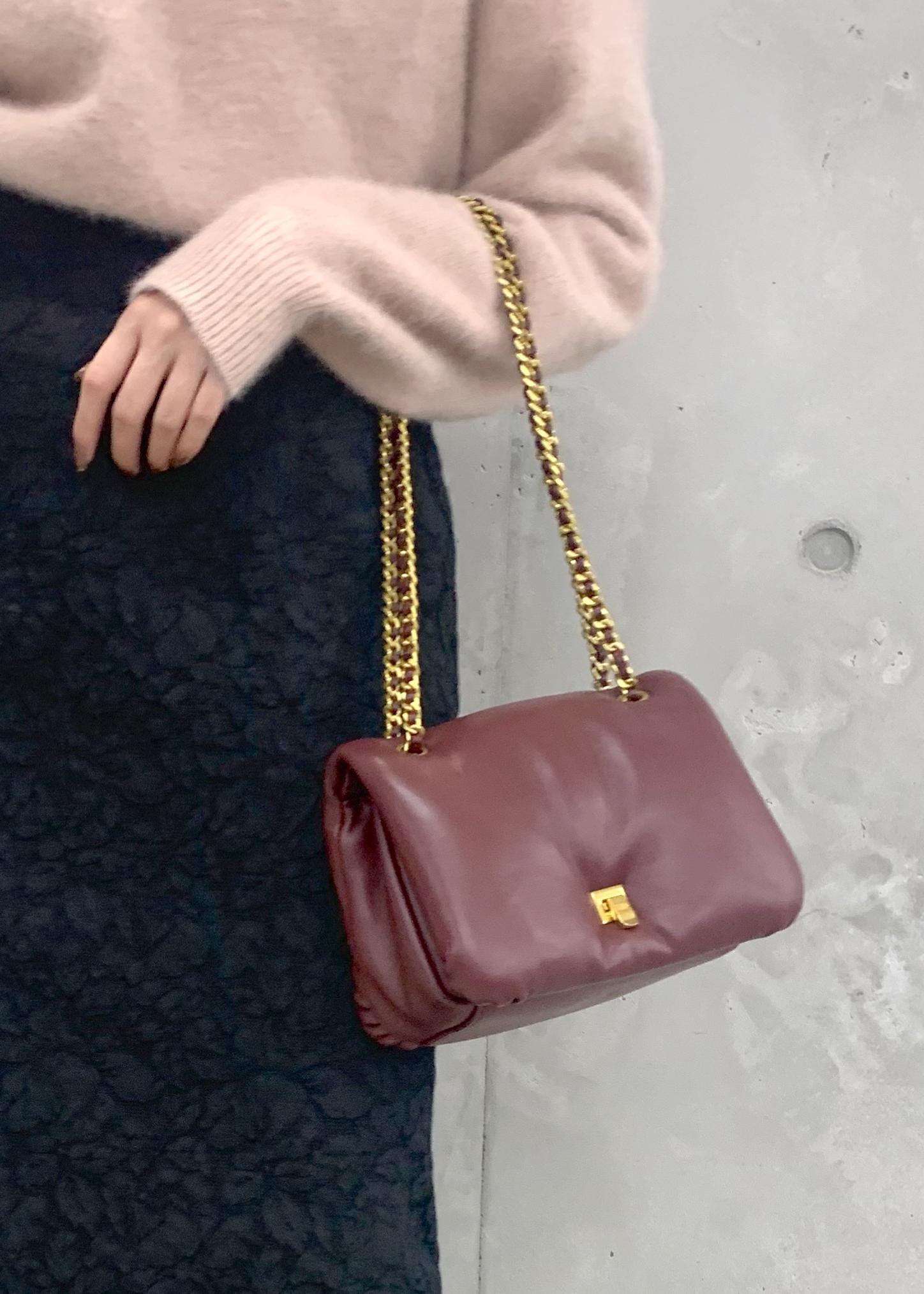 アウトレットROPÉ【雑誌掲載】リアルレザーパフィーフラップチェーンミニショルダーバッグワイン / F¥12,320レビューゴートレザーで柔らかくフワフワな質感です。