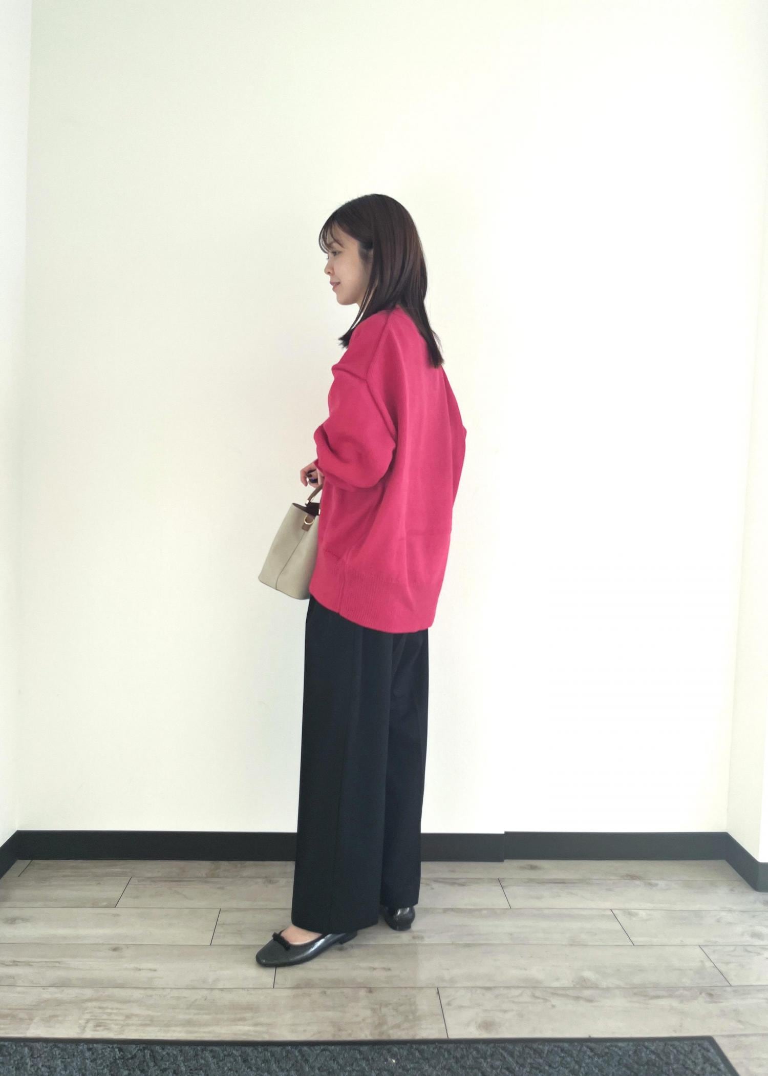 シンプルに黒のワイドパンツ合わせてサラッとした着こなしがおすすめ。