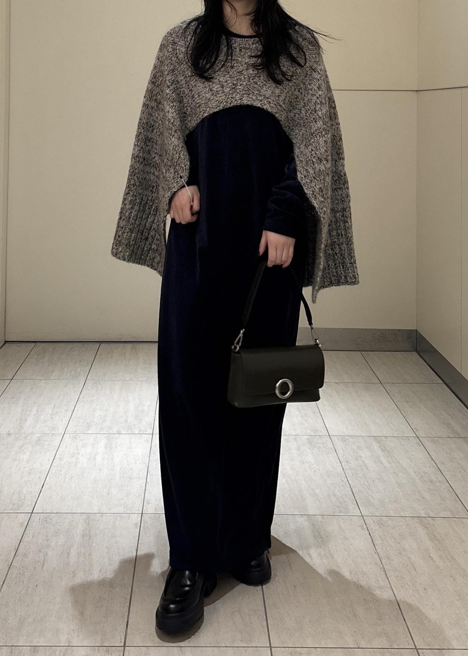 ストレートラインなので、意外とボリュームのあるもので合わせても広がりを抑え込んでくれて、スッキリ見えします!ワンピースでも、ワイドパンツでも合わせられます。