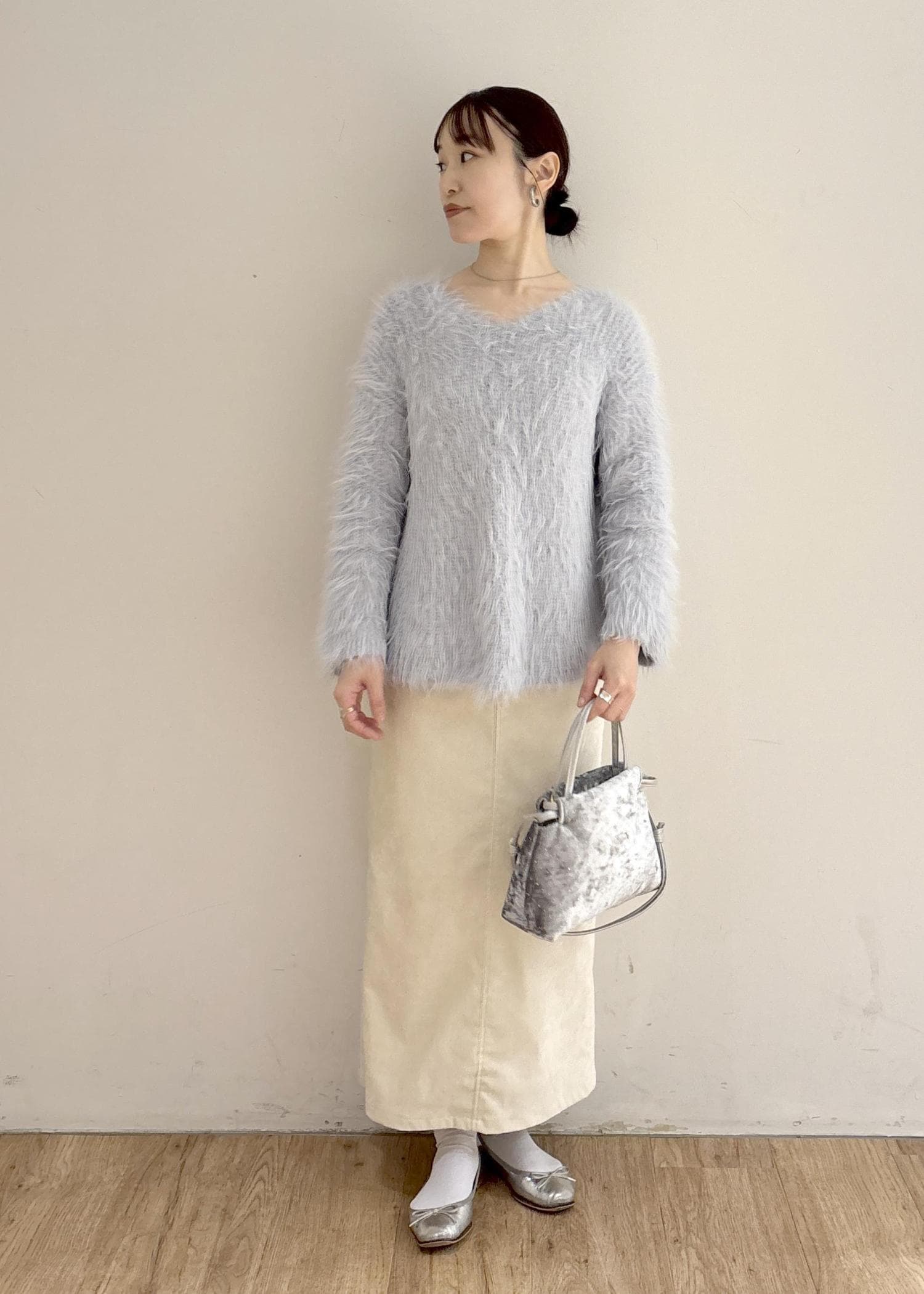 女の子らしさのあるワンピースに、かっちりめのバッグとショートブーツを合わせて大人スタイルに。