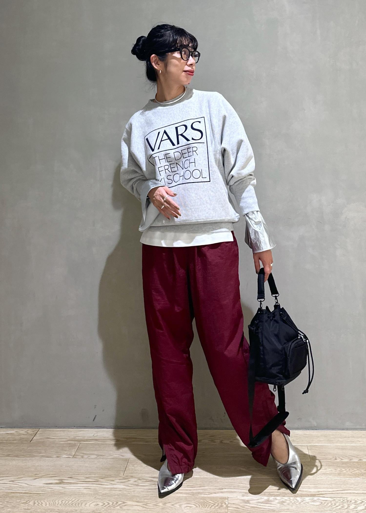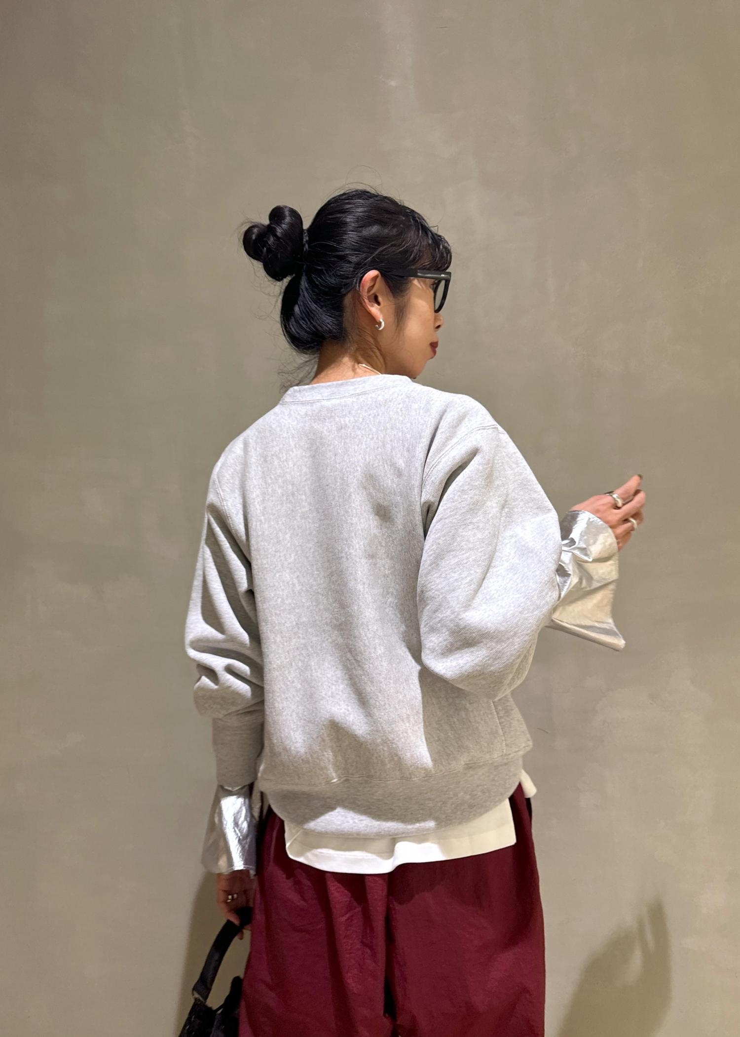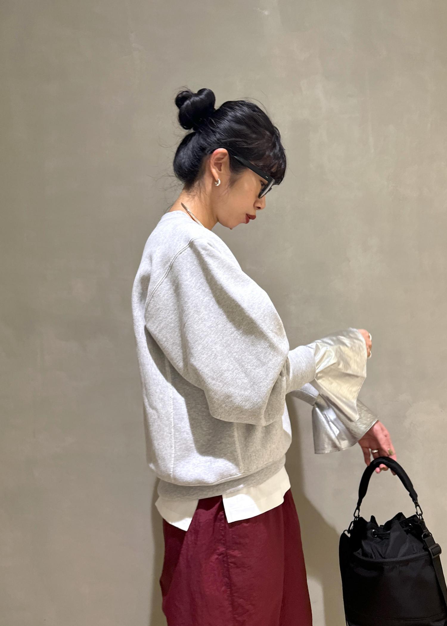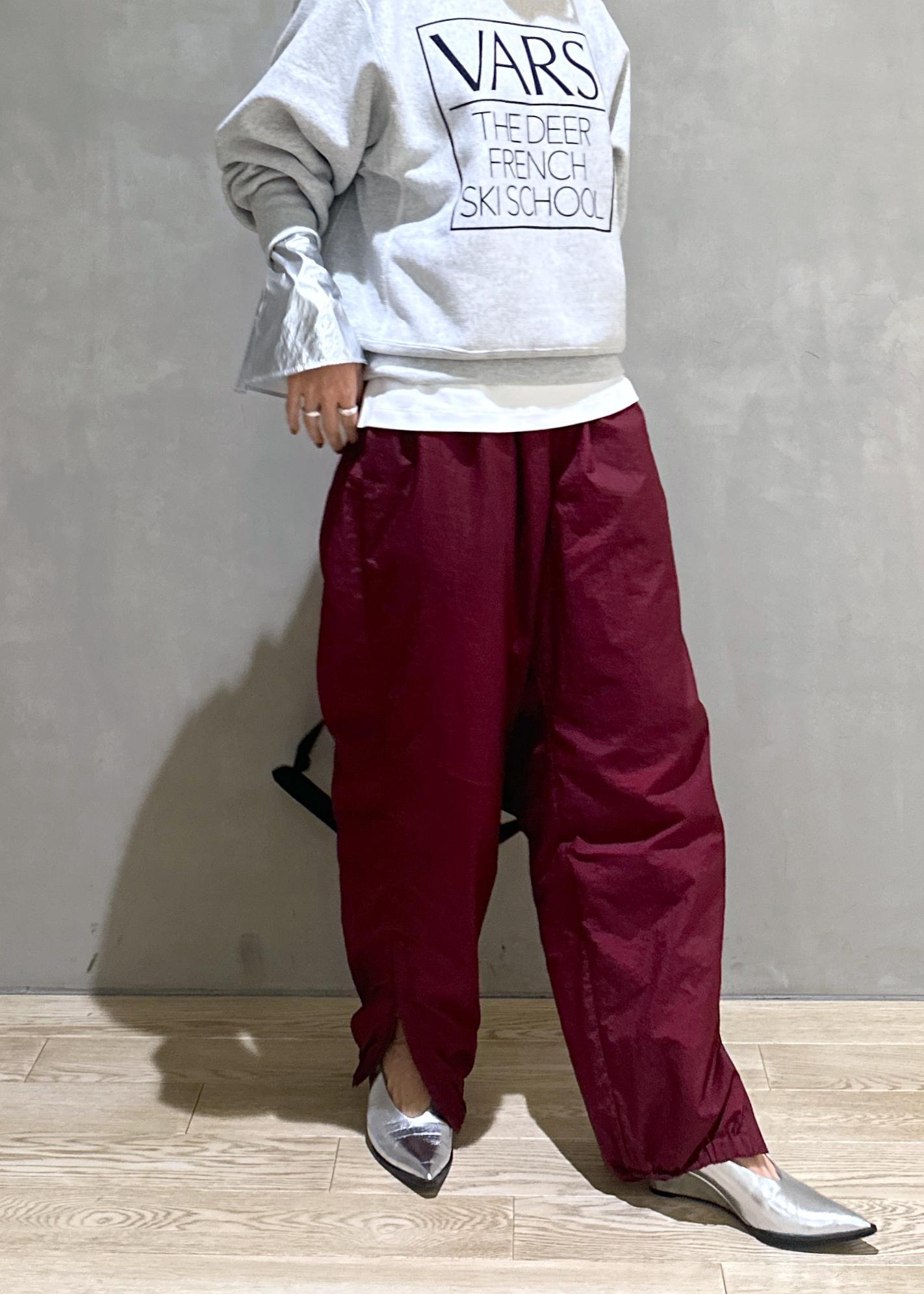 大体スエットのボトムはスカートを合わせてカジュアルすぎないスタイリングにするんですが、今回はナイロンパンツと合わせて結構カジュアルにスタイリングしました!!^_^