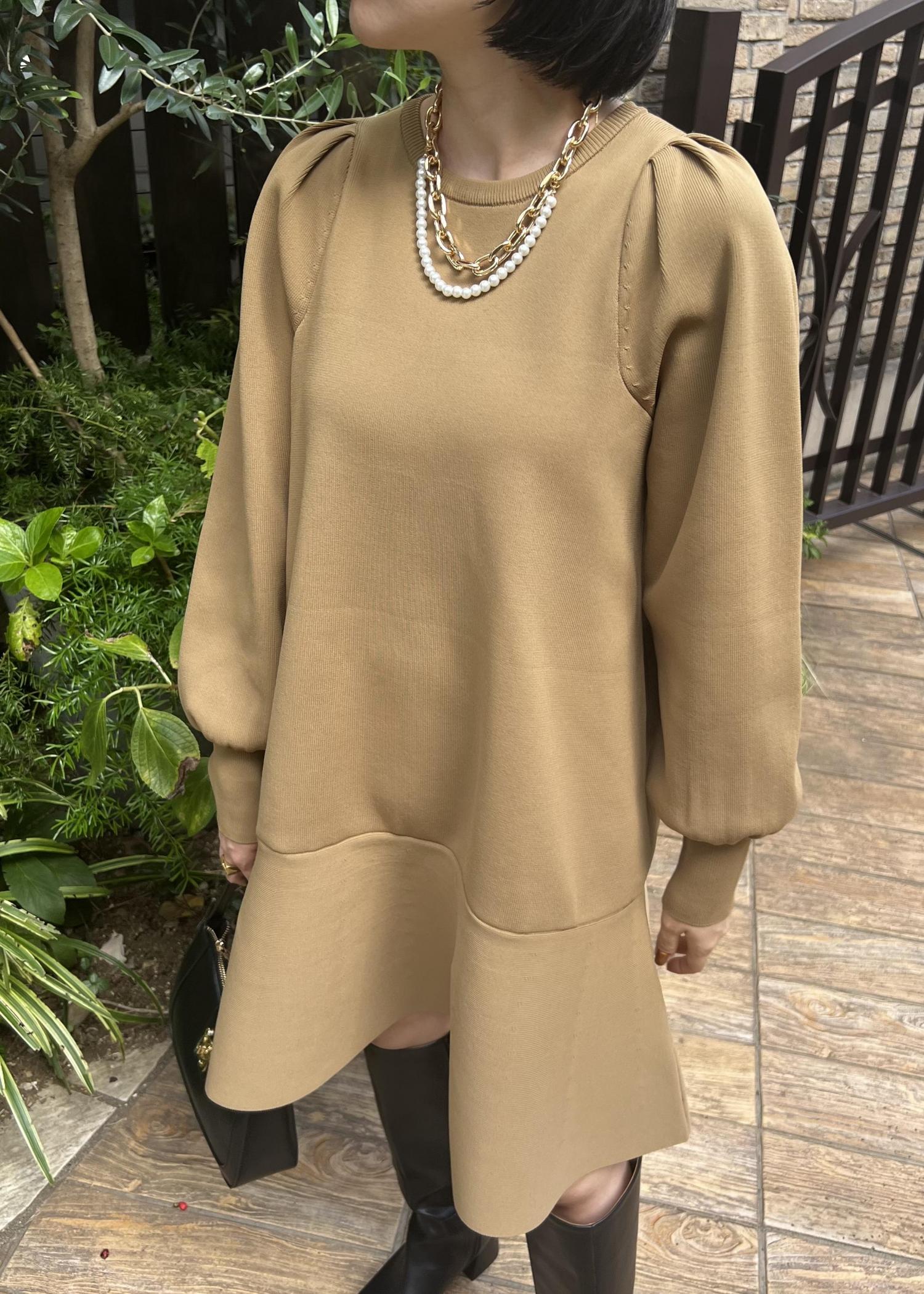 アウトレットVISパフスリーブ切り替えミニフレアワンピースキャメル系 / F¥3,164レビュー155cmで膝が少し見える丈です。