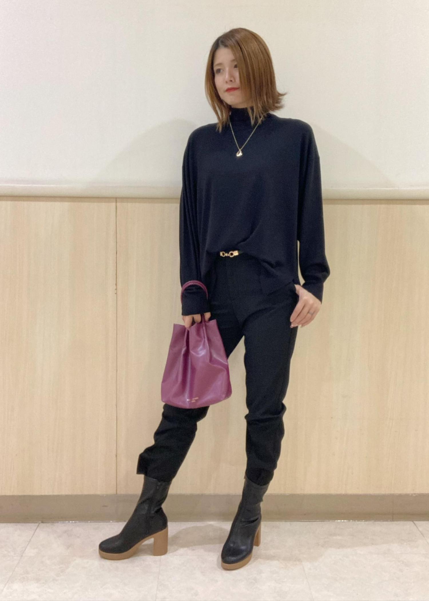 バッグは秋らしいワインカラーを差し色に使いました♪