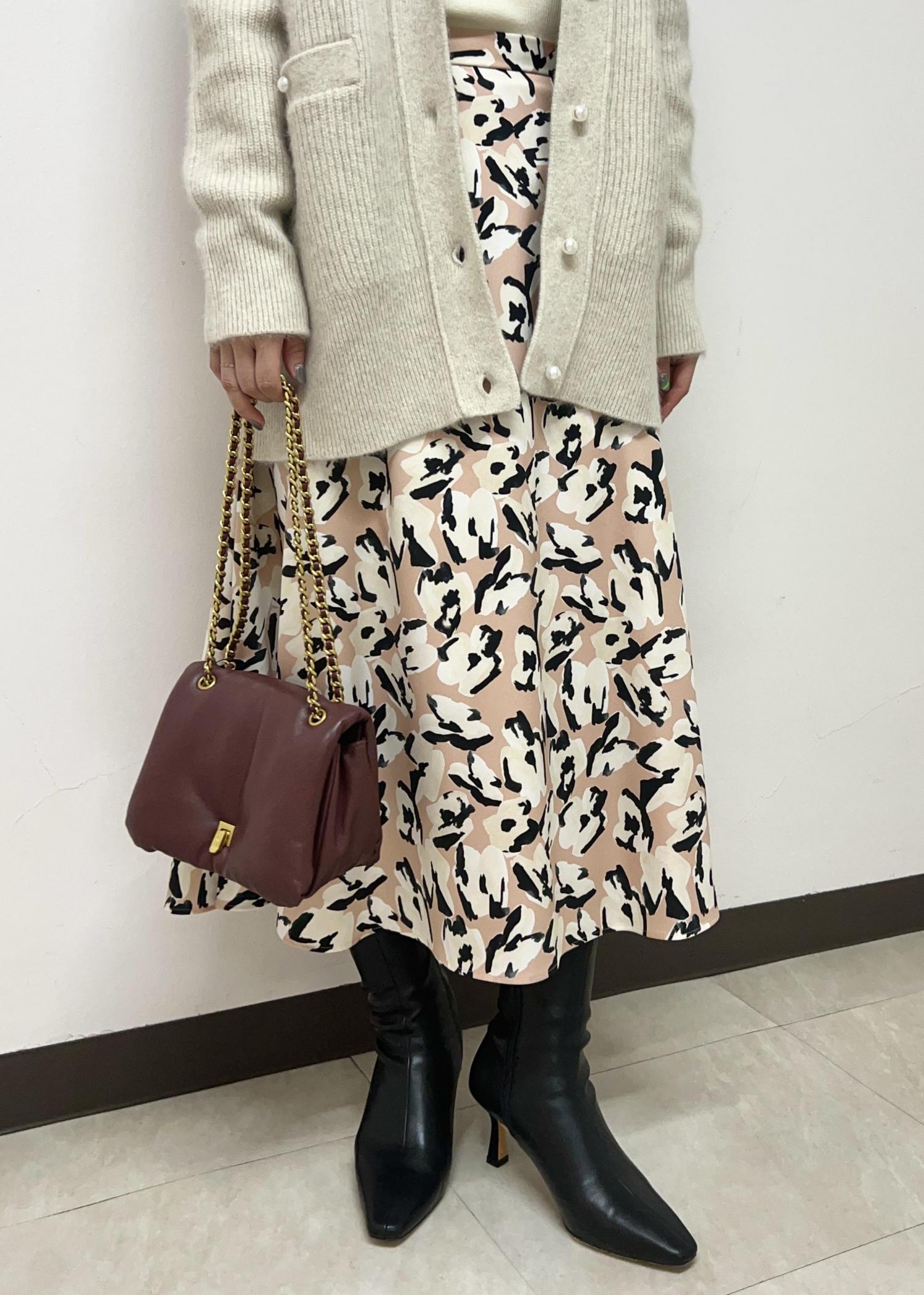 1枚で女性らしい華やかな印象になるので、この時期タートルやカットソーの上に合わせるだけでもコーディネートが完成します◎