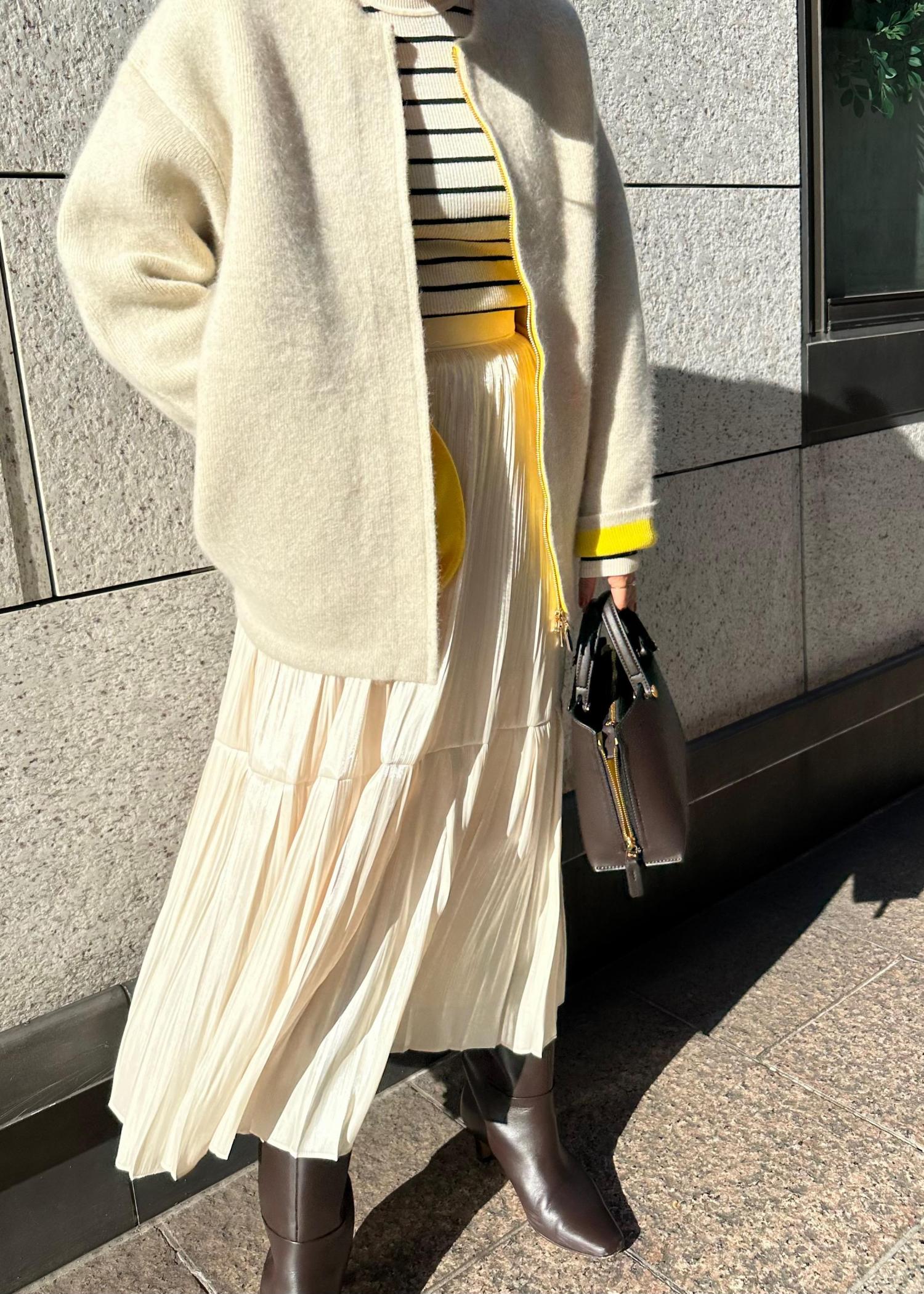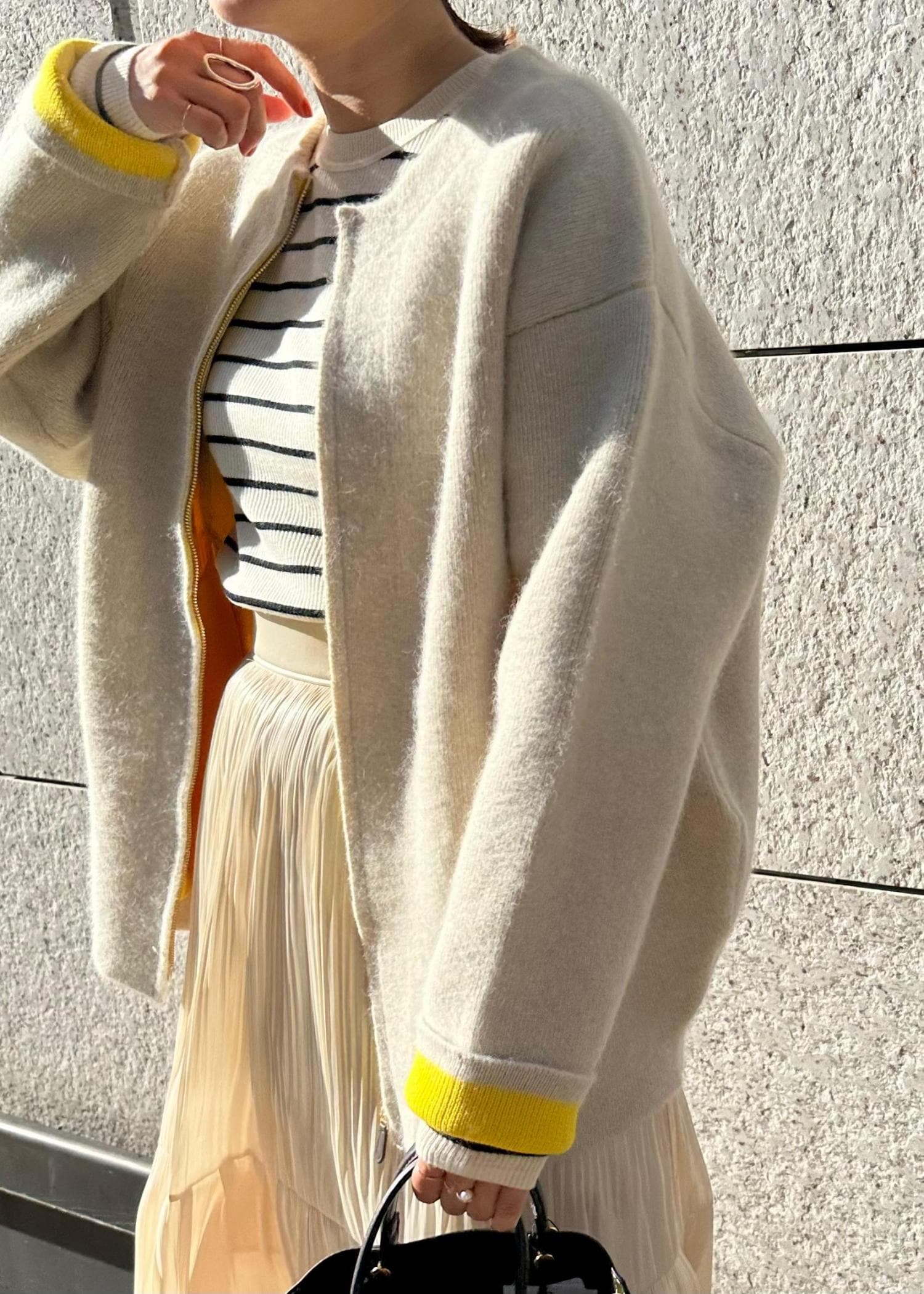 袖からチラッと見えるイエローが可愛いニットブルゾン