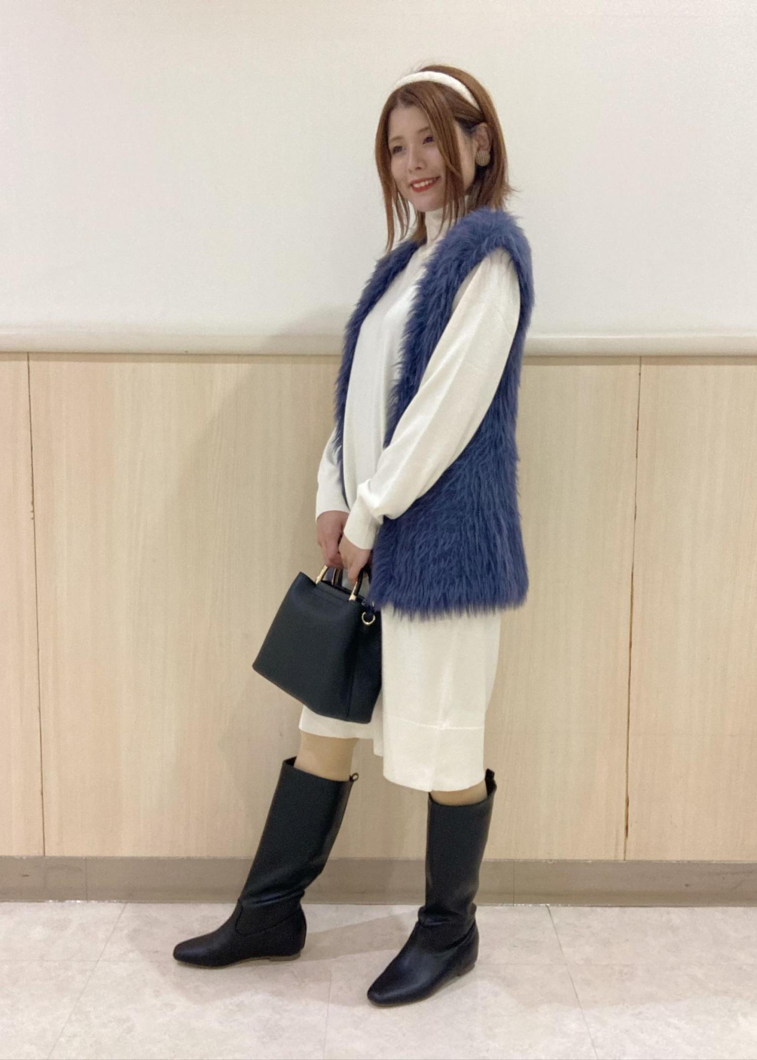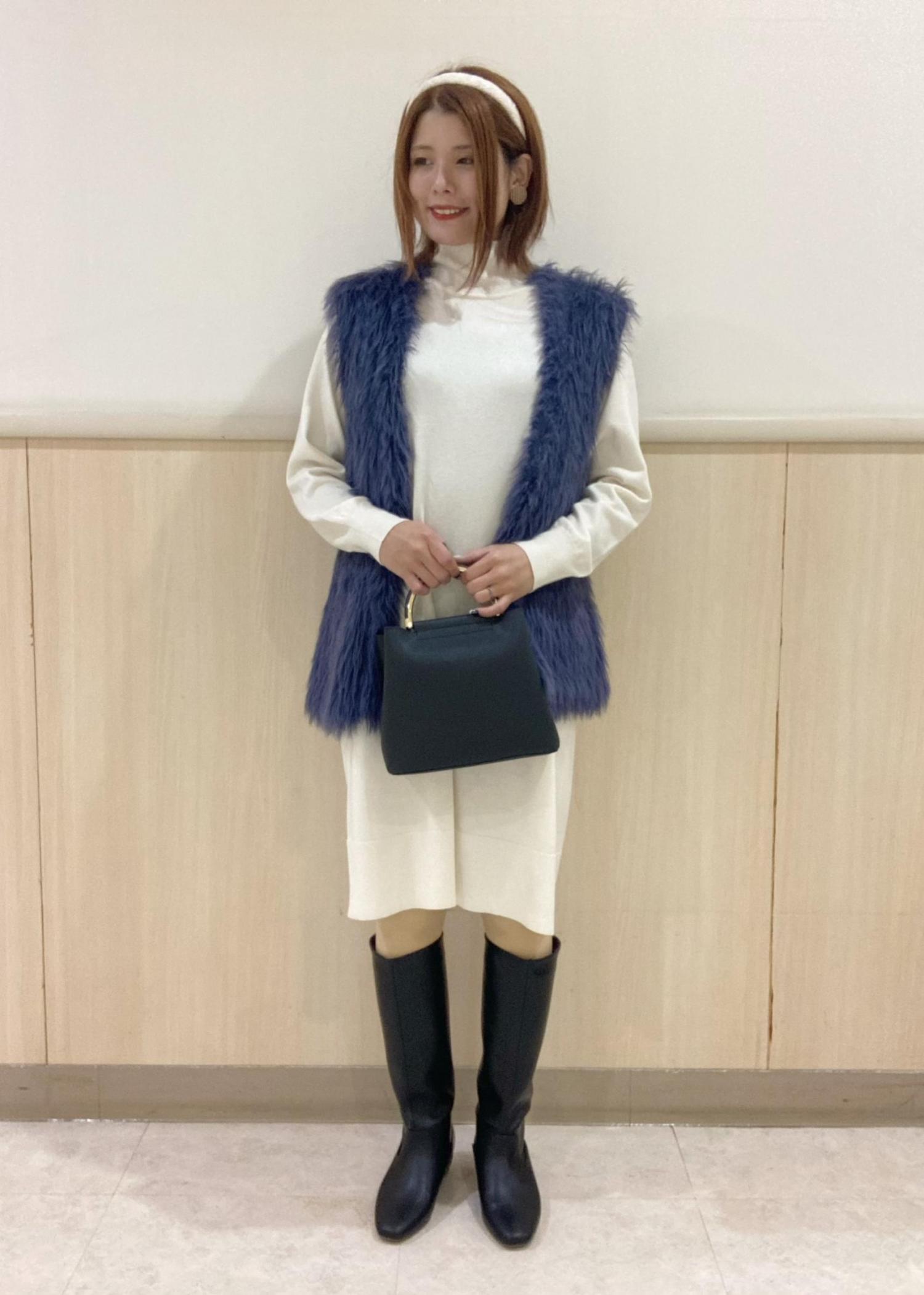 1枚でサラッと着れるニットワンピースにファーベストを合わせた季節感のあるコーディネートのご紹介です♡