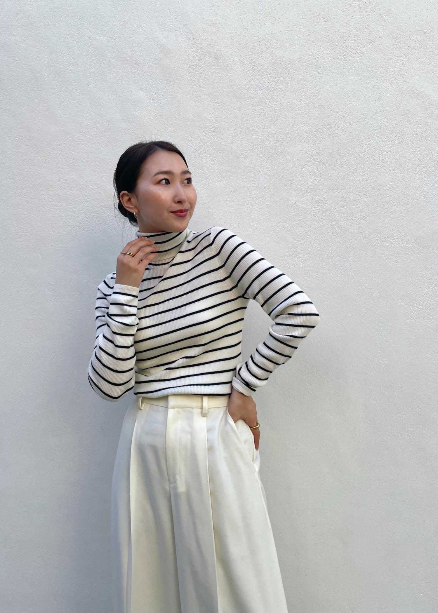 ボーダー合わせでラフな印象ですが、ホワイトベースでまとめたので大人っぽく。