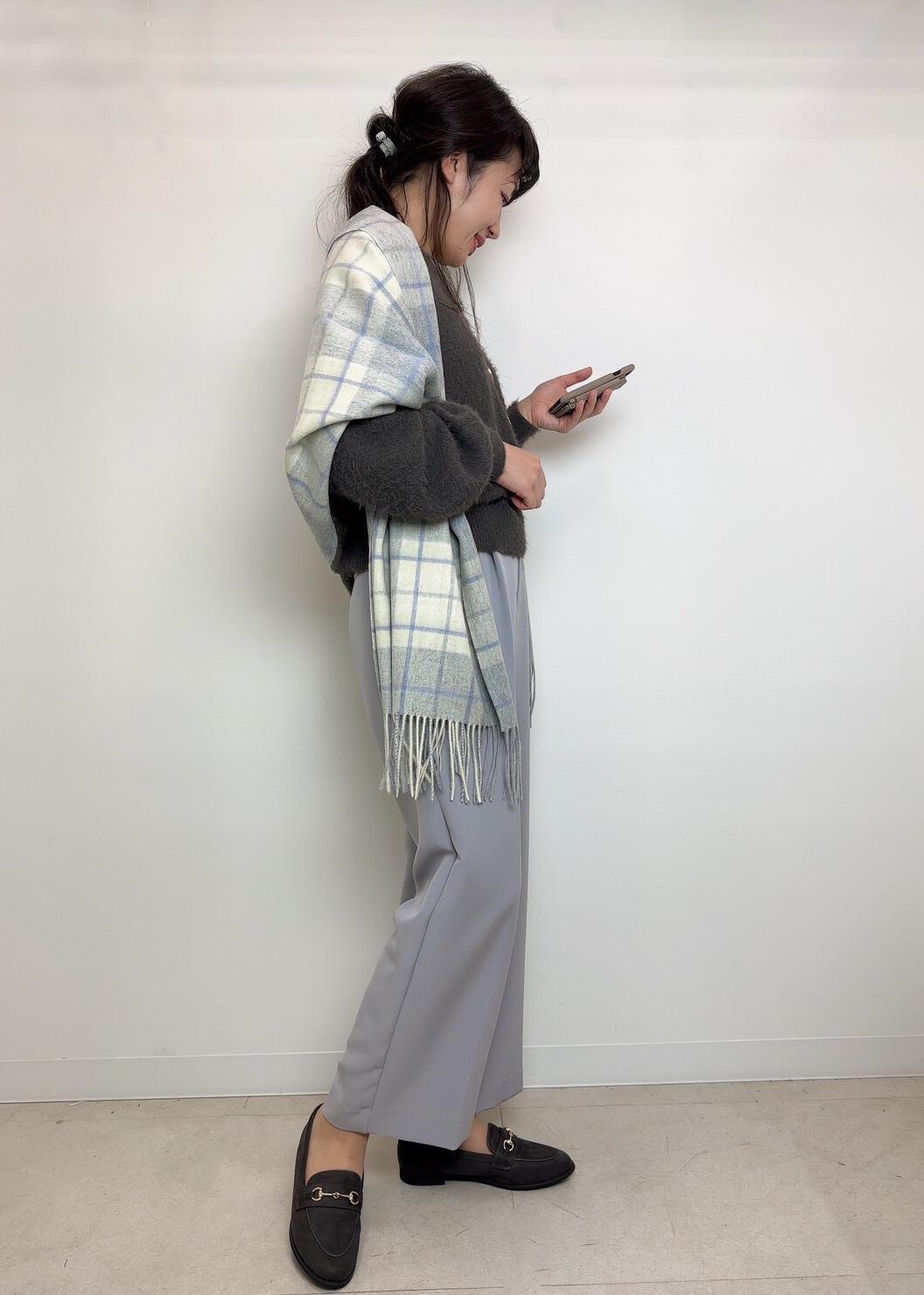 肌触り抜群なニットにワイドパンツで着心地は楽ちん、印象はきちんとしたオフィスコーデです!