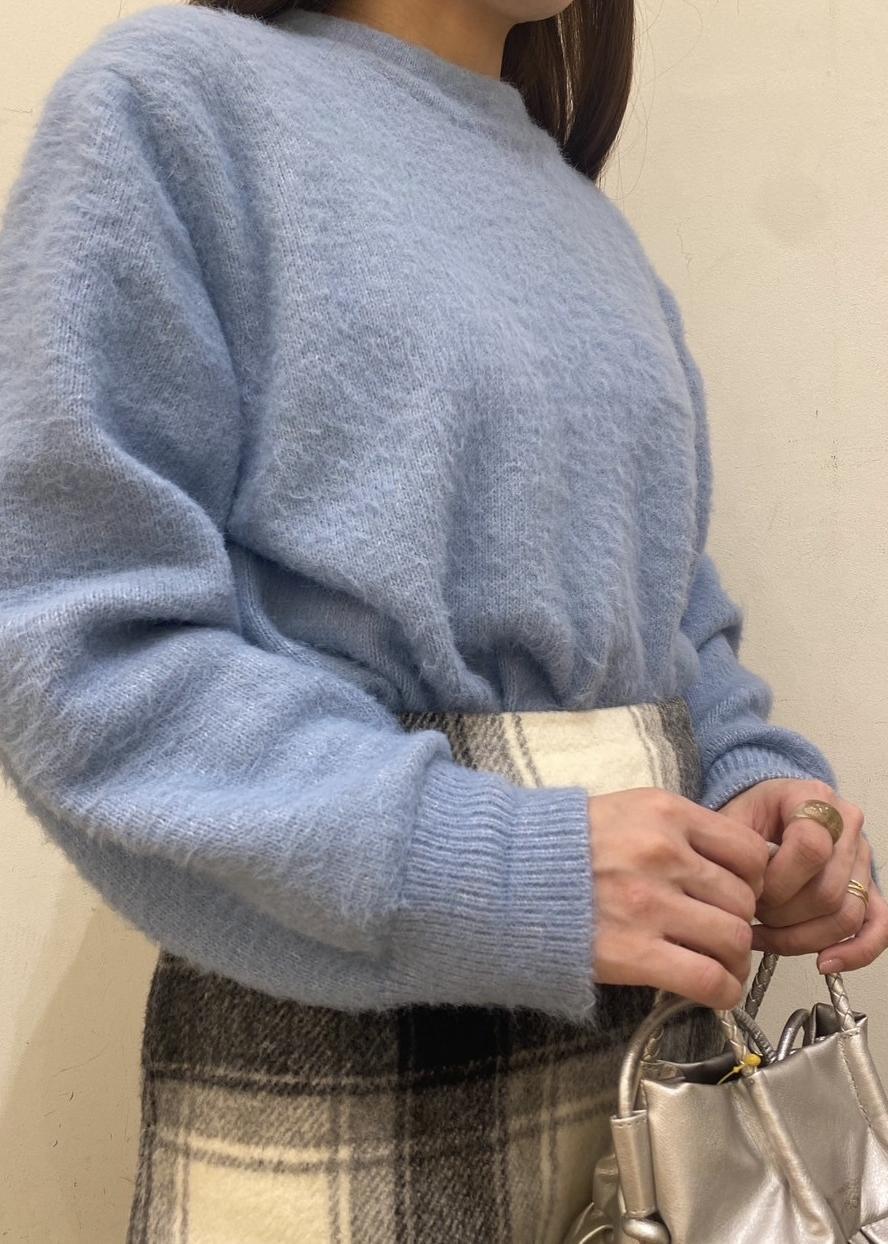 柔らかいブルーのニットは挑戦しやすいカラーなのでぜひ一度お試し頂きたいです︎☺︎