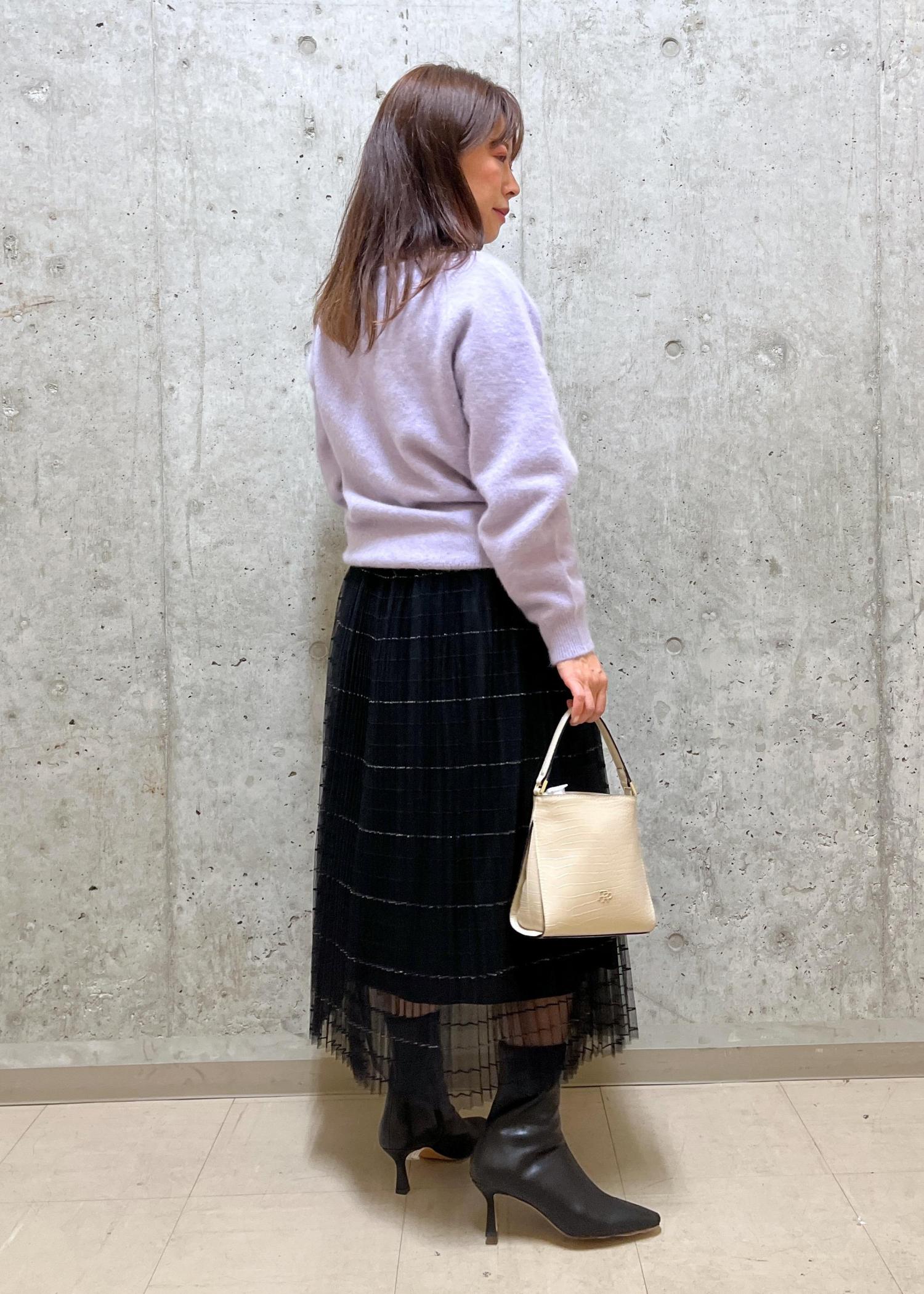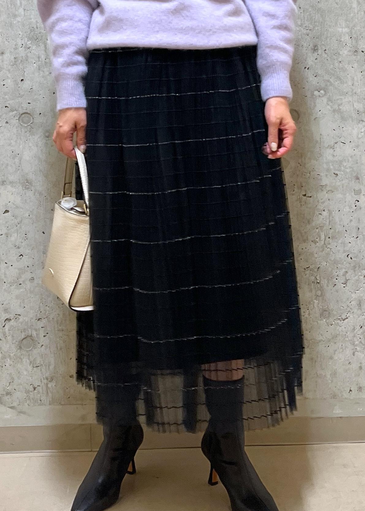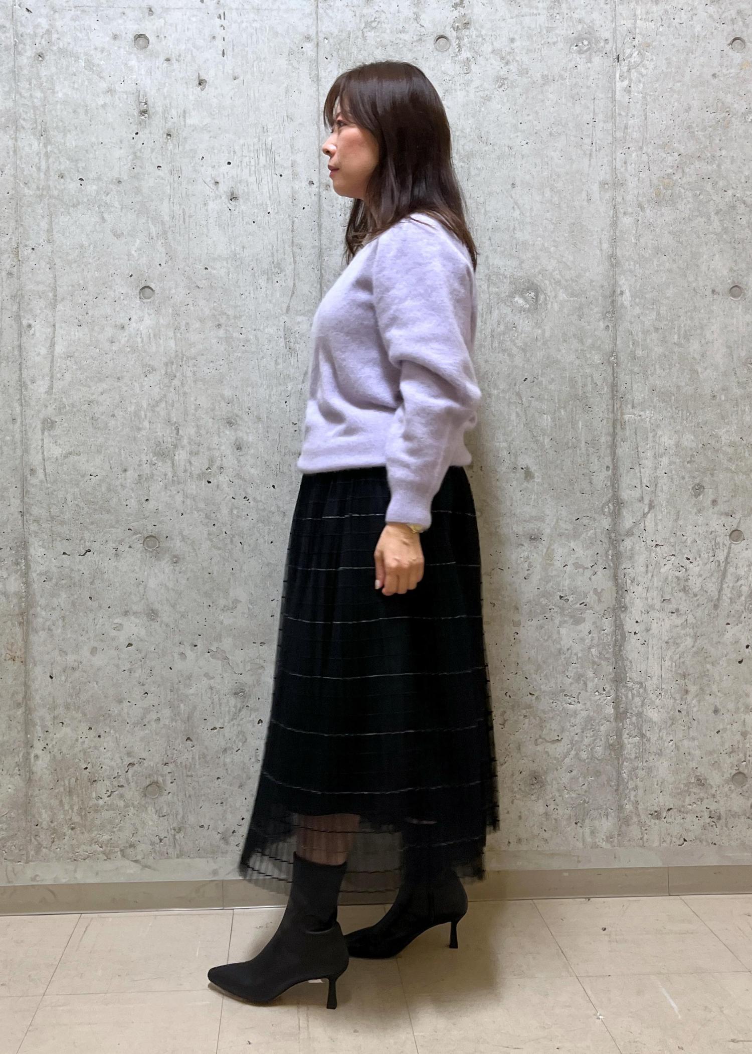 ふわっとしたニットとチュールのスカートで可愛い雰囲気にしました。