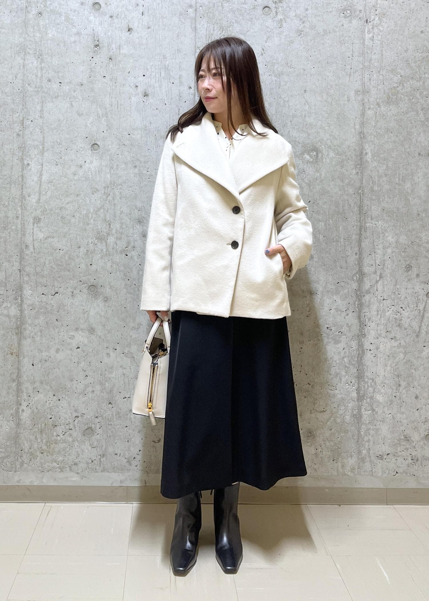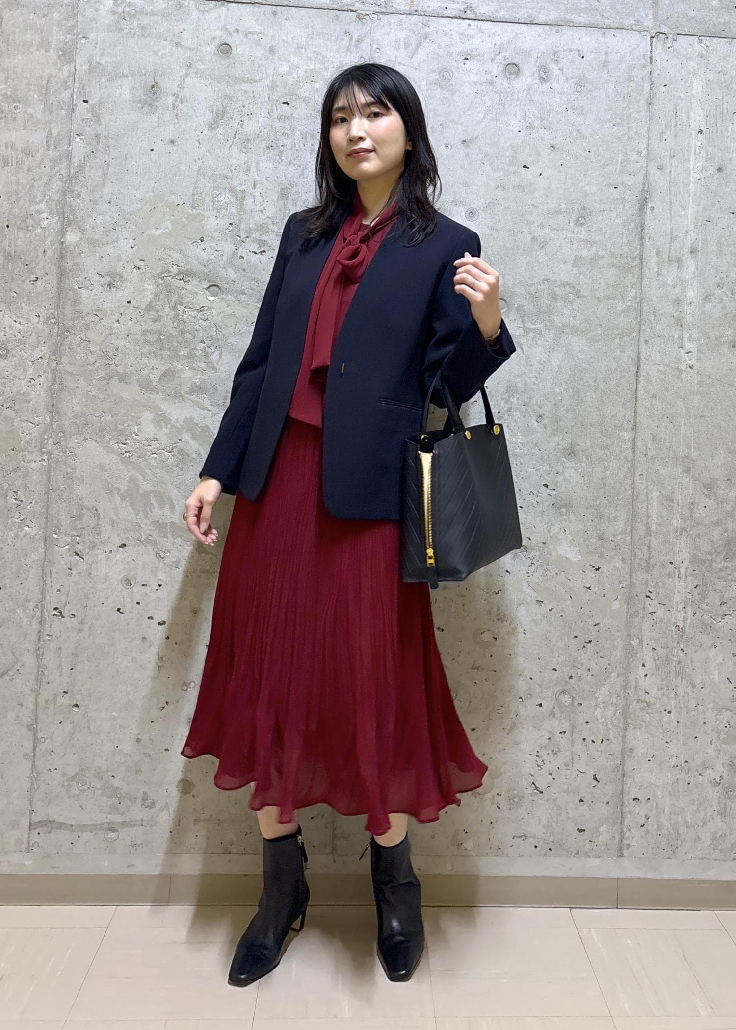 ちょっとしたお出かけに着ていけるコーディネートで、落ち着いた色合いの合わせで、幅広い年齢層の方に着用していただけます。
