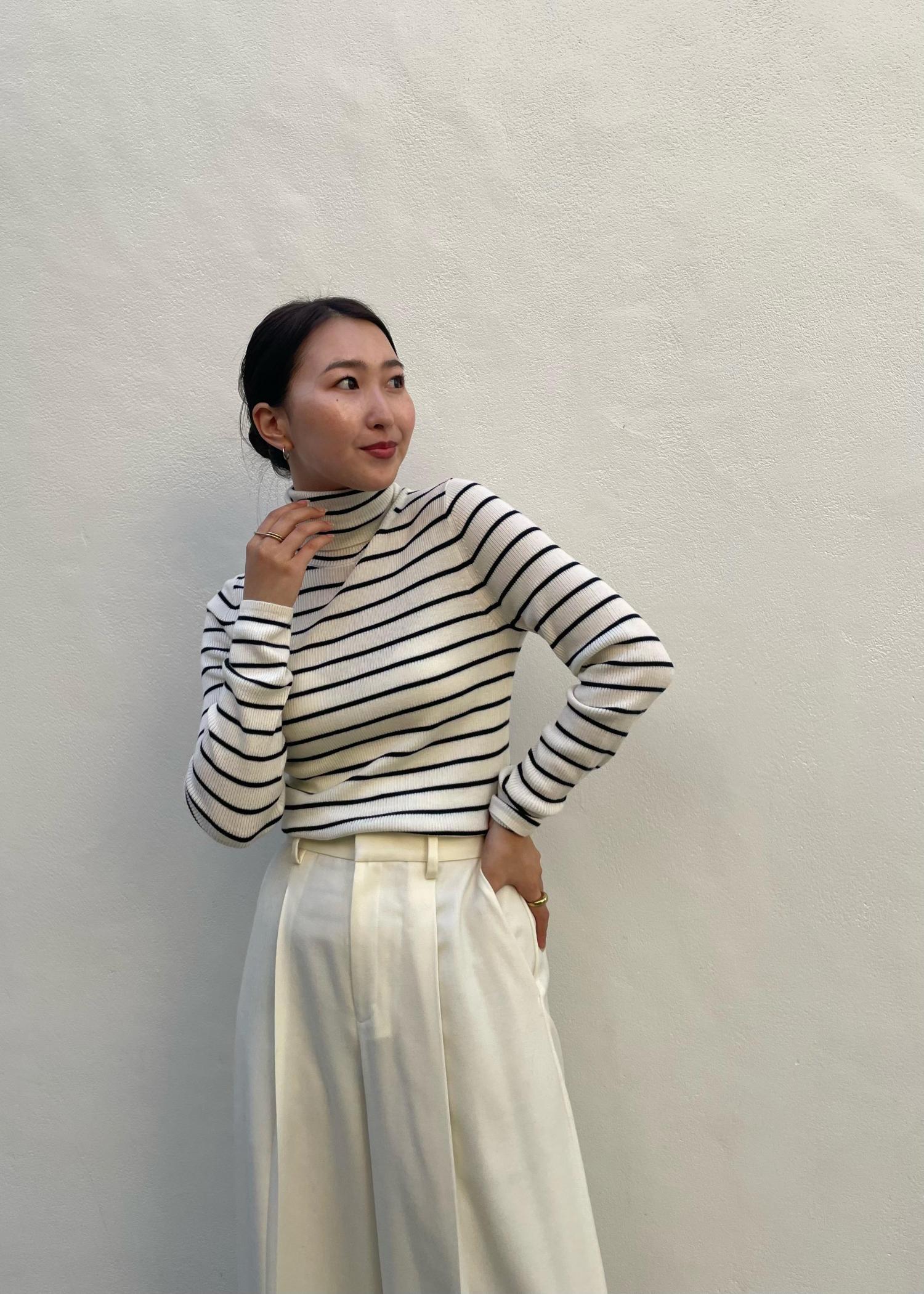 インナーはタートルネックを合わせることで首周りまでしっかり保温されるのでおすすめです◎