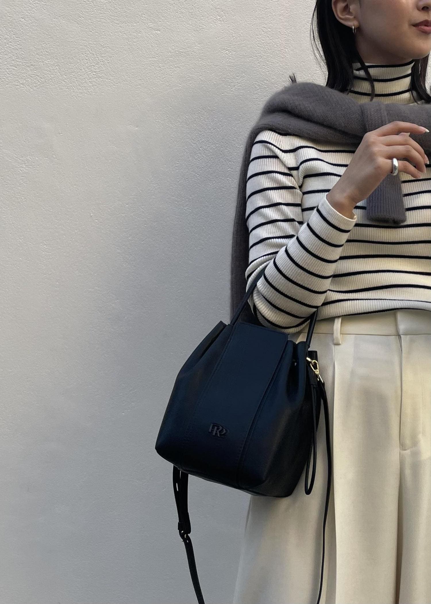 ROPÉスプリットレザー RPロゴドロストミニバッグブラック / F¥14,300レビュー500mlのペットボトルが少し蓋が出てしまいますが入る高さです。