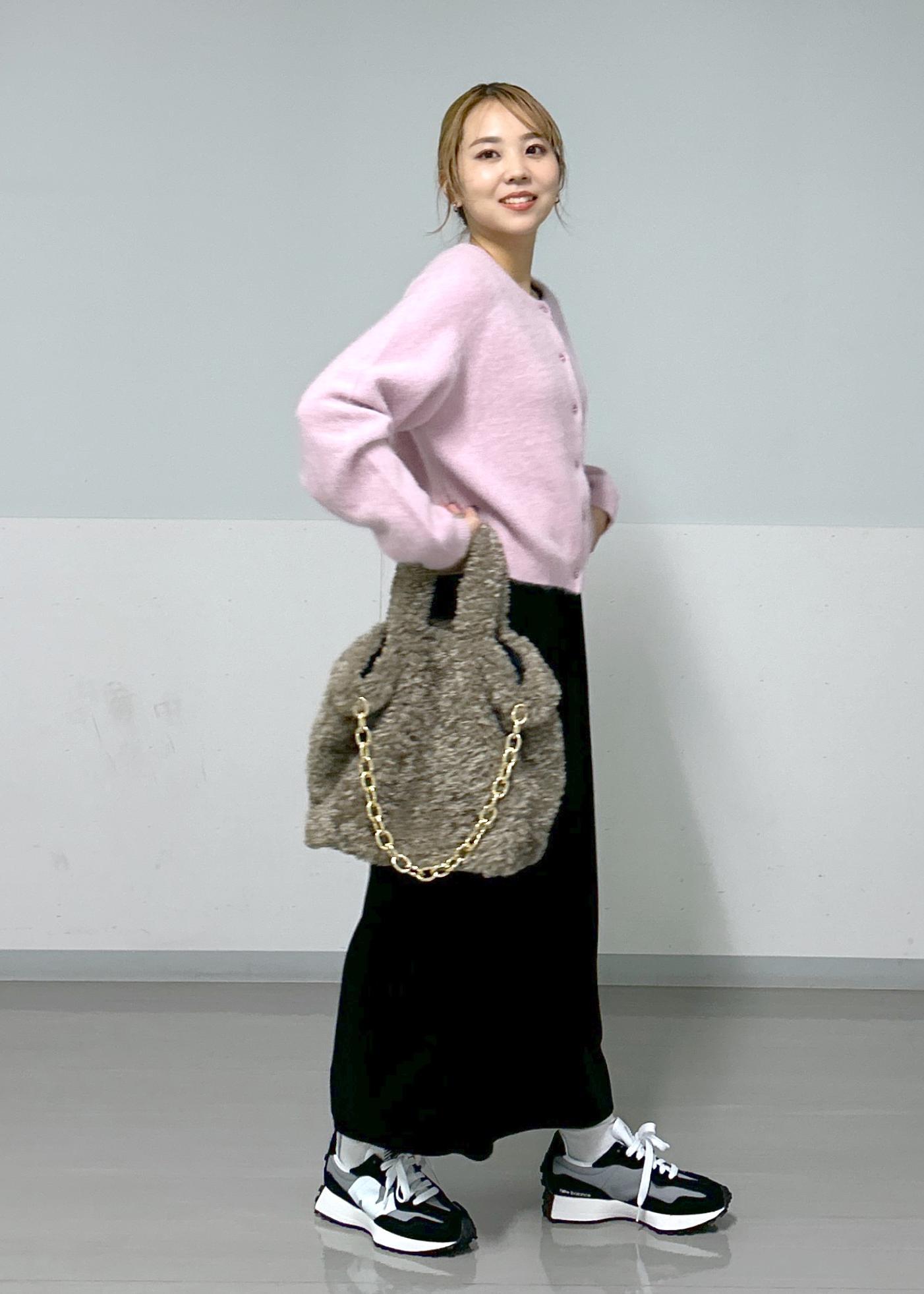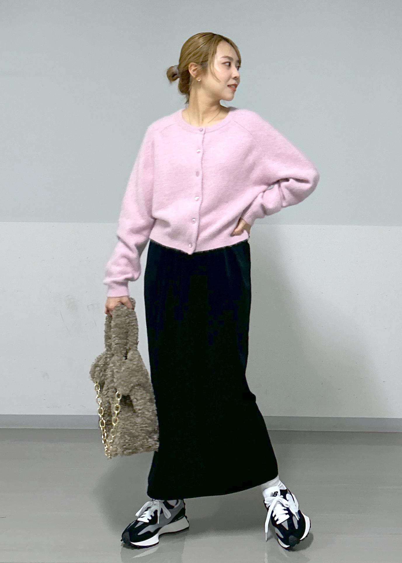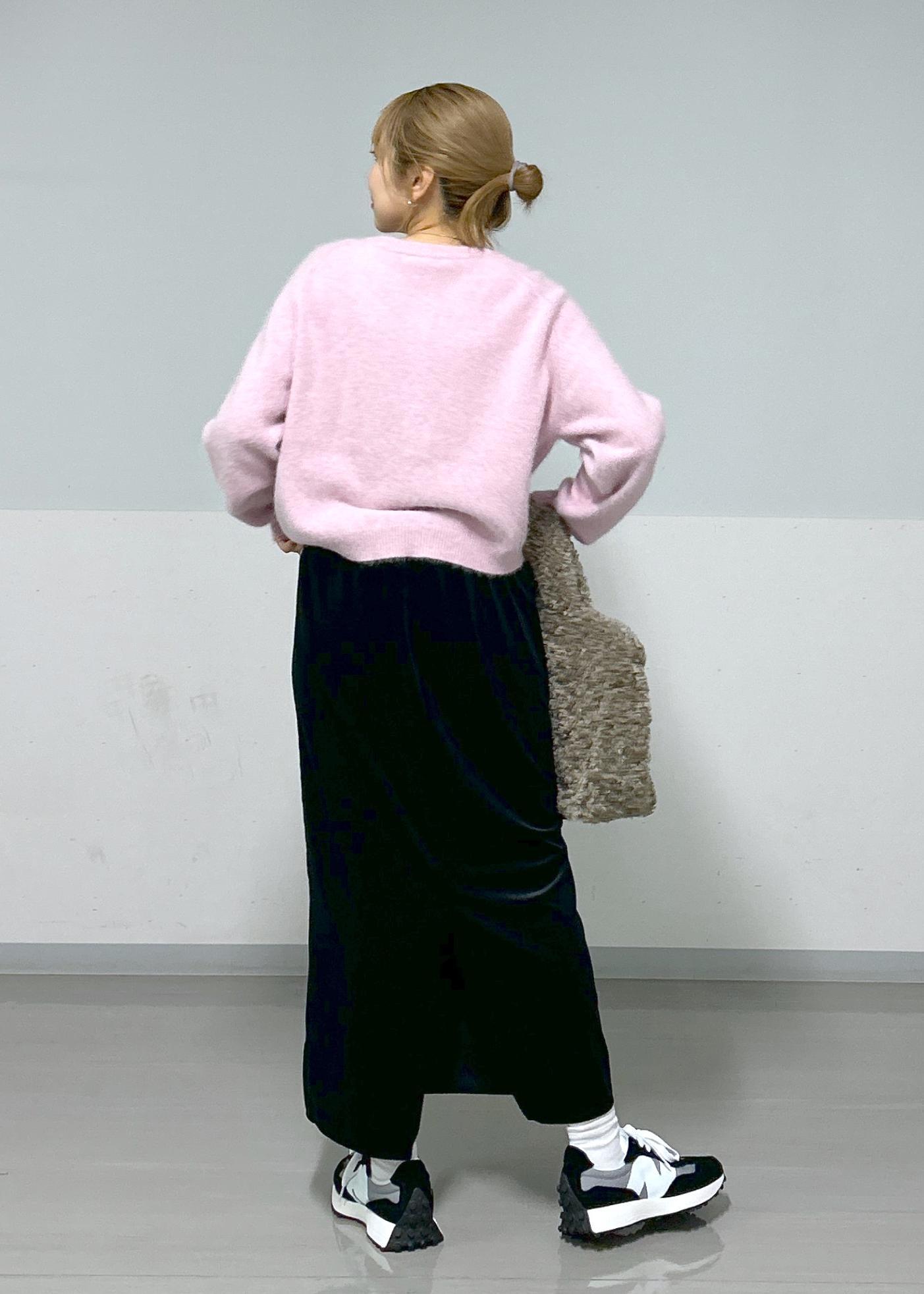 ベロア素材で光沢感があり、内側はサラサラとした素材です。柔らかいので動きがあり、カジュアルにもキレイめにも◎