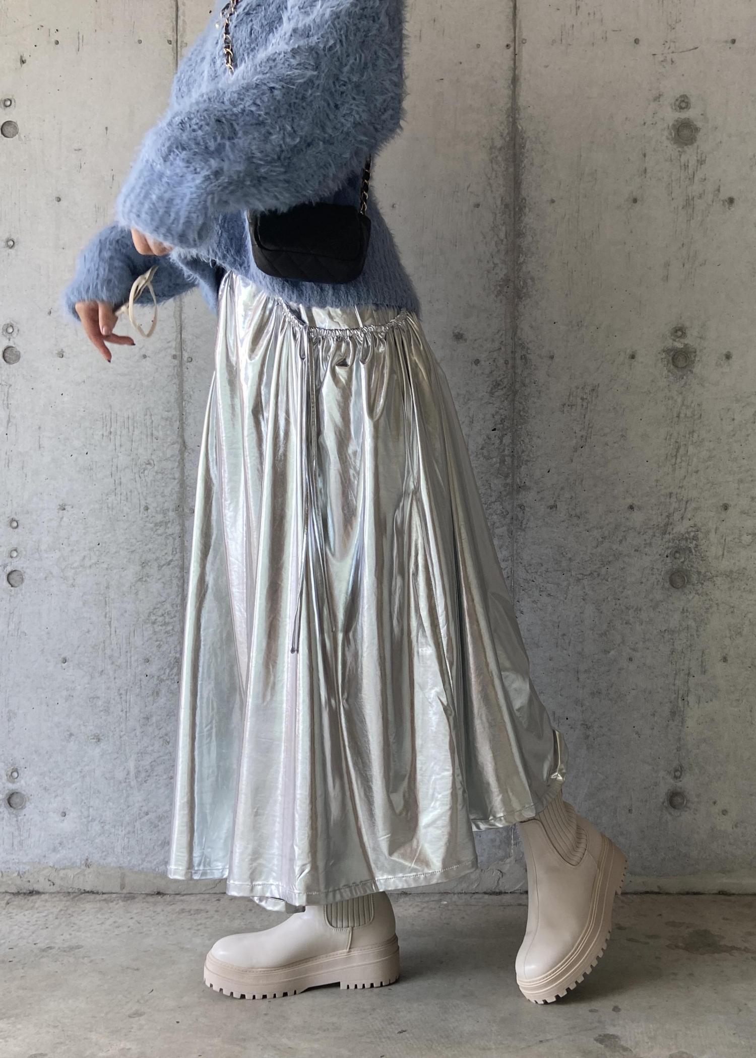 アウトレットVISメタリックギャザースカートシルバー系 / F¥1,670レビュートレンドのメタリックなスカートで長めですが162cmの私にはちょうど良かったです!ウエスト部分がゴムのためラクに履けるスカートになっています◎