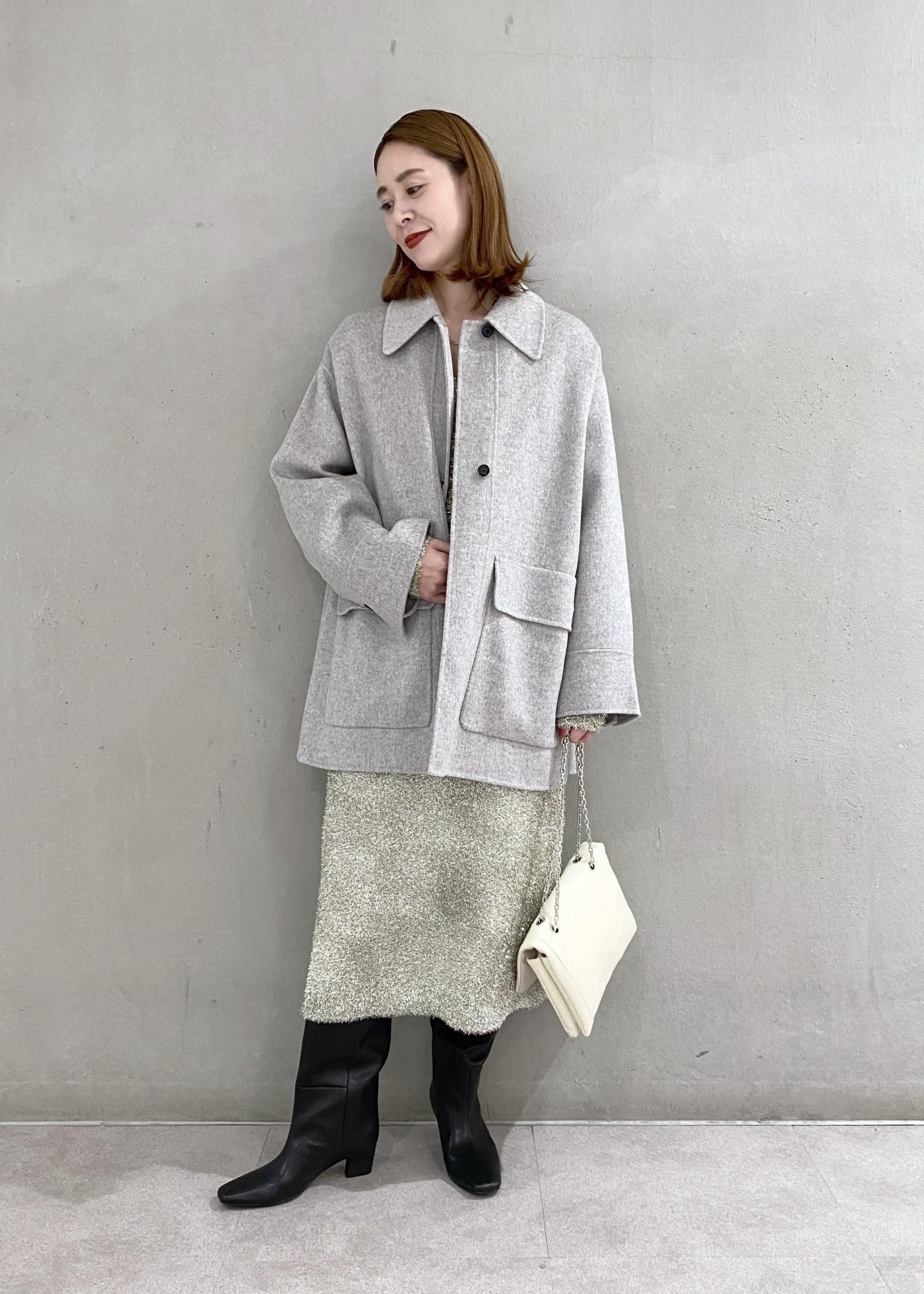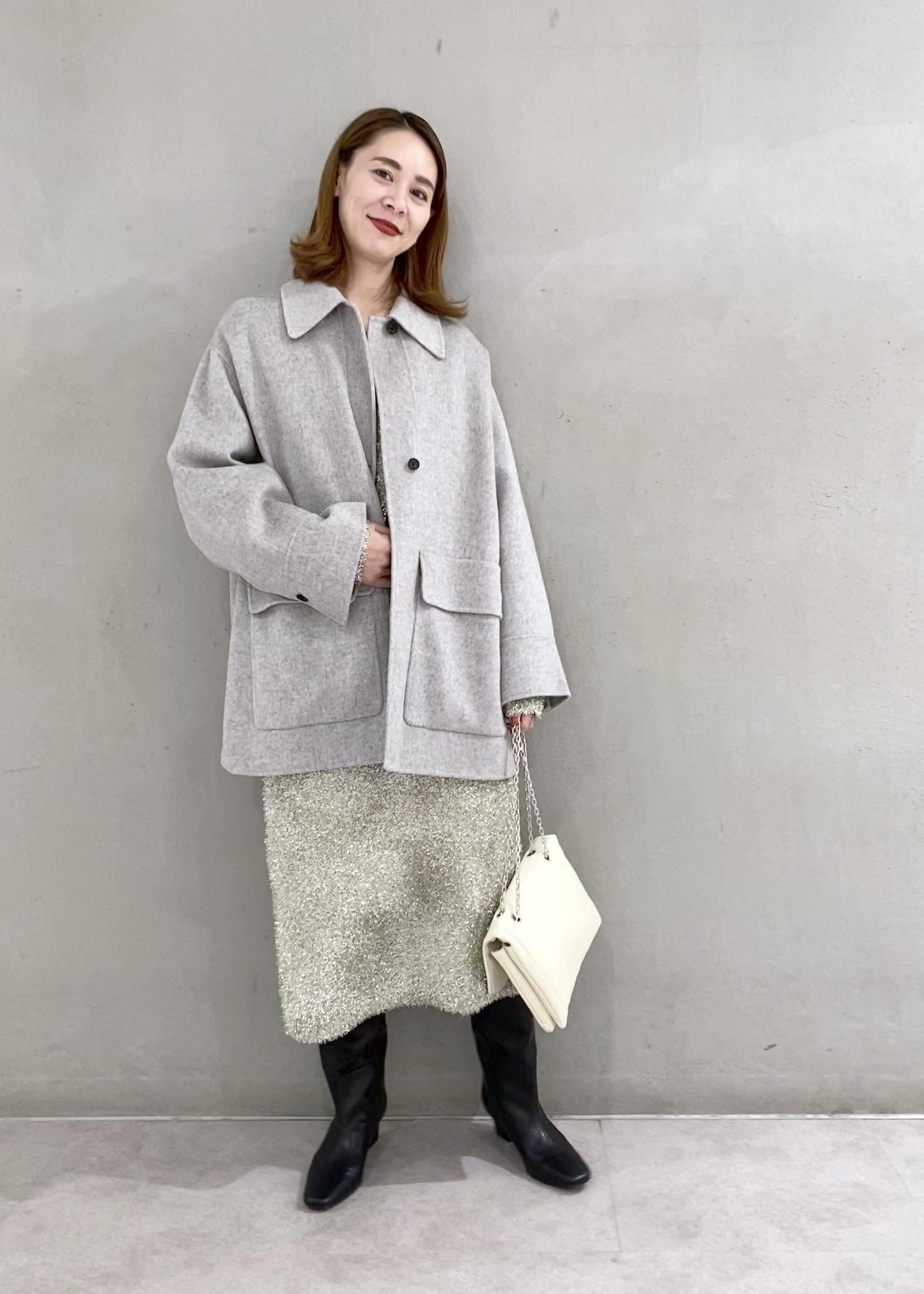 シャツ型コートでゆったりオーバーサイズなので羽織るだけで決まるコートとなっております!