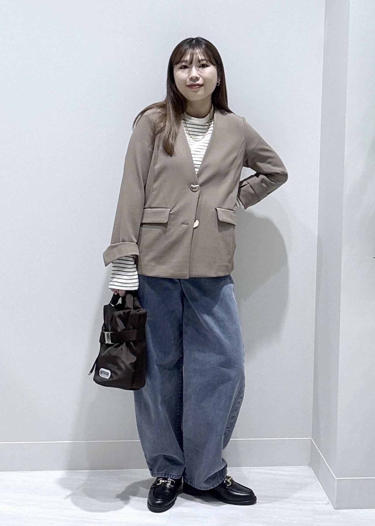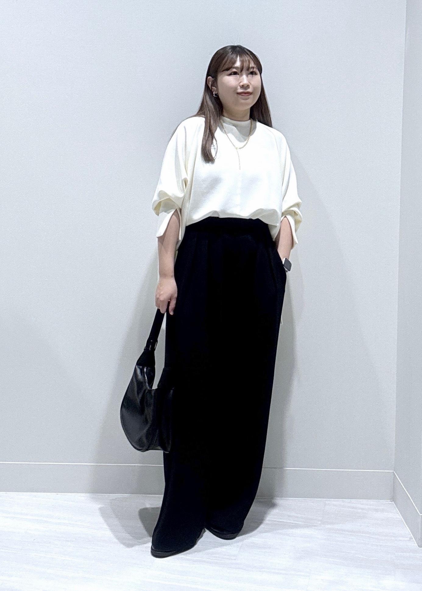 ワイドパンツやスリムパンツとも相性バツグンですが、ビッグサイズなのでワンピースのように履いてブーツと合わせるとトレンドライクに着こなせます。