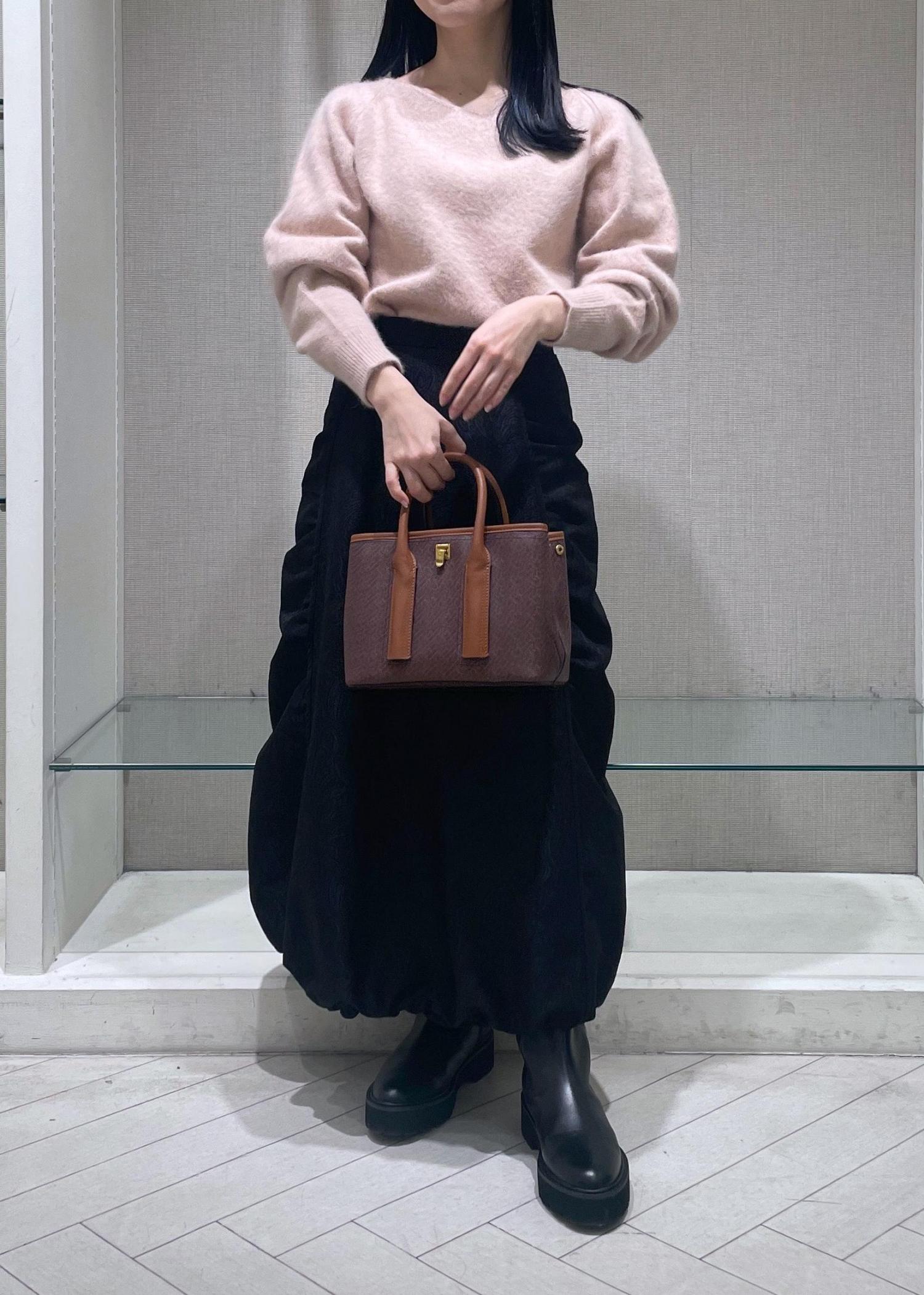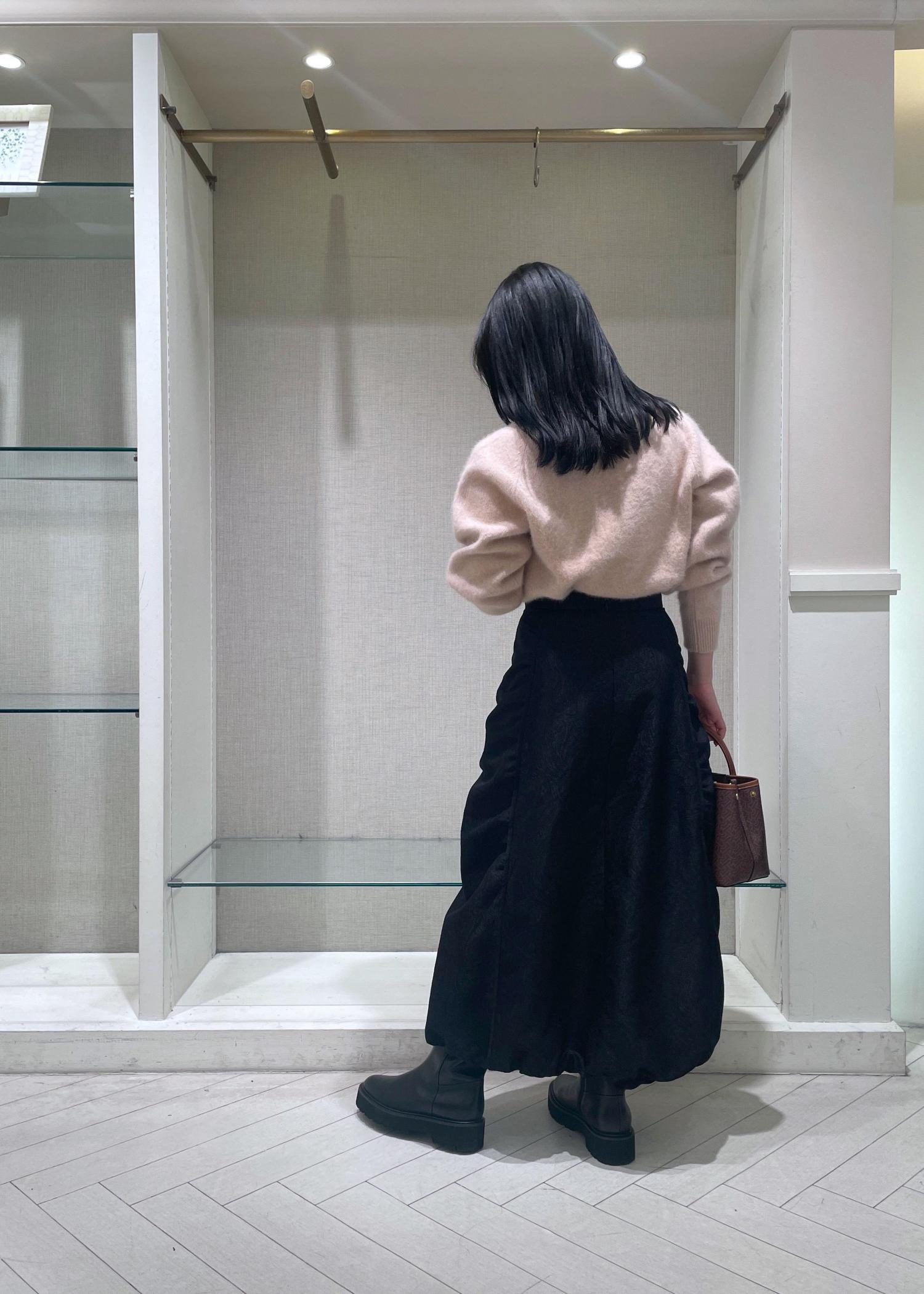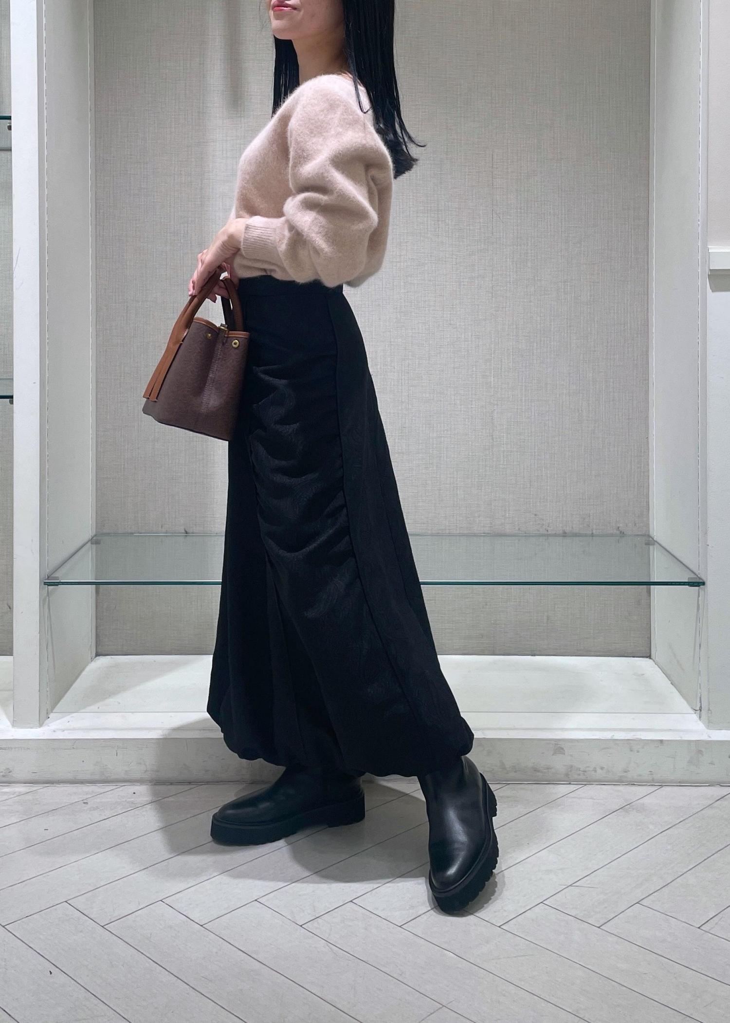 ジャガードと裾のバルーンが目をひく個性派スカートを