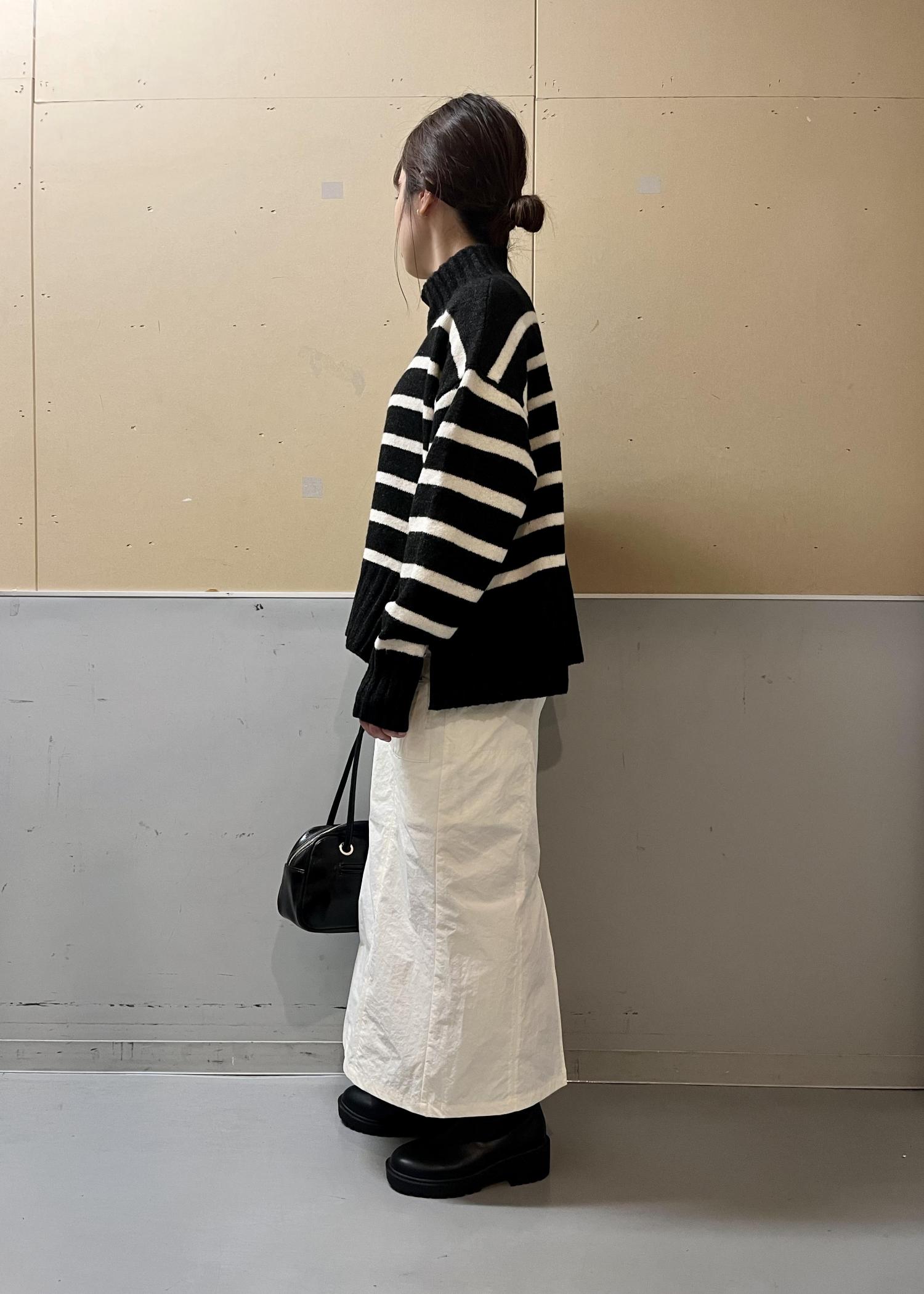 裏地が膝上丈の裏起毛タイプなので、ナイロン生地のスカートですが、履いてて暖かいです。